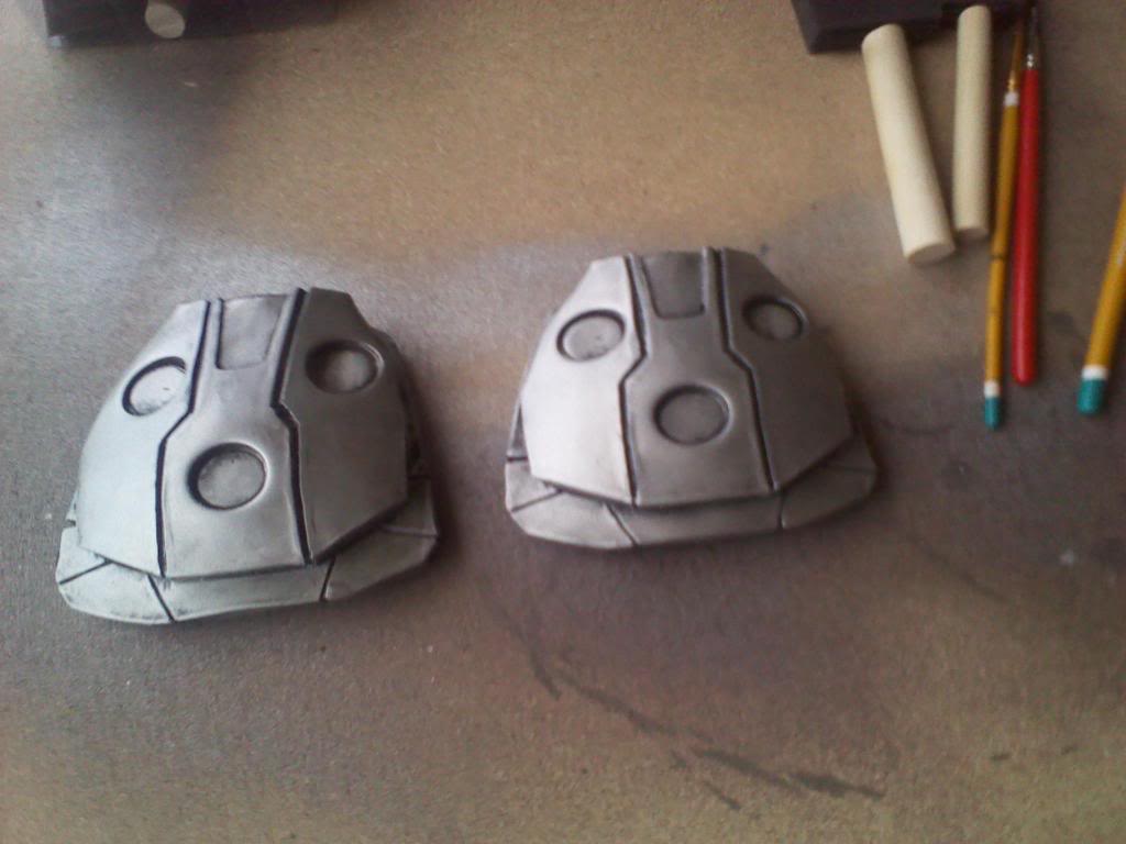Well I spent my morning painting the new arm parts as well as the new hand guards. I also experimented with stencils.