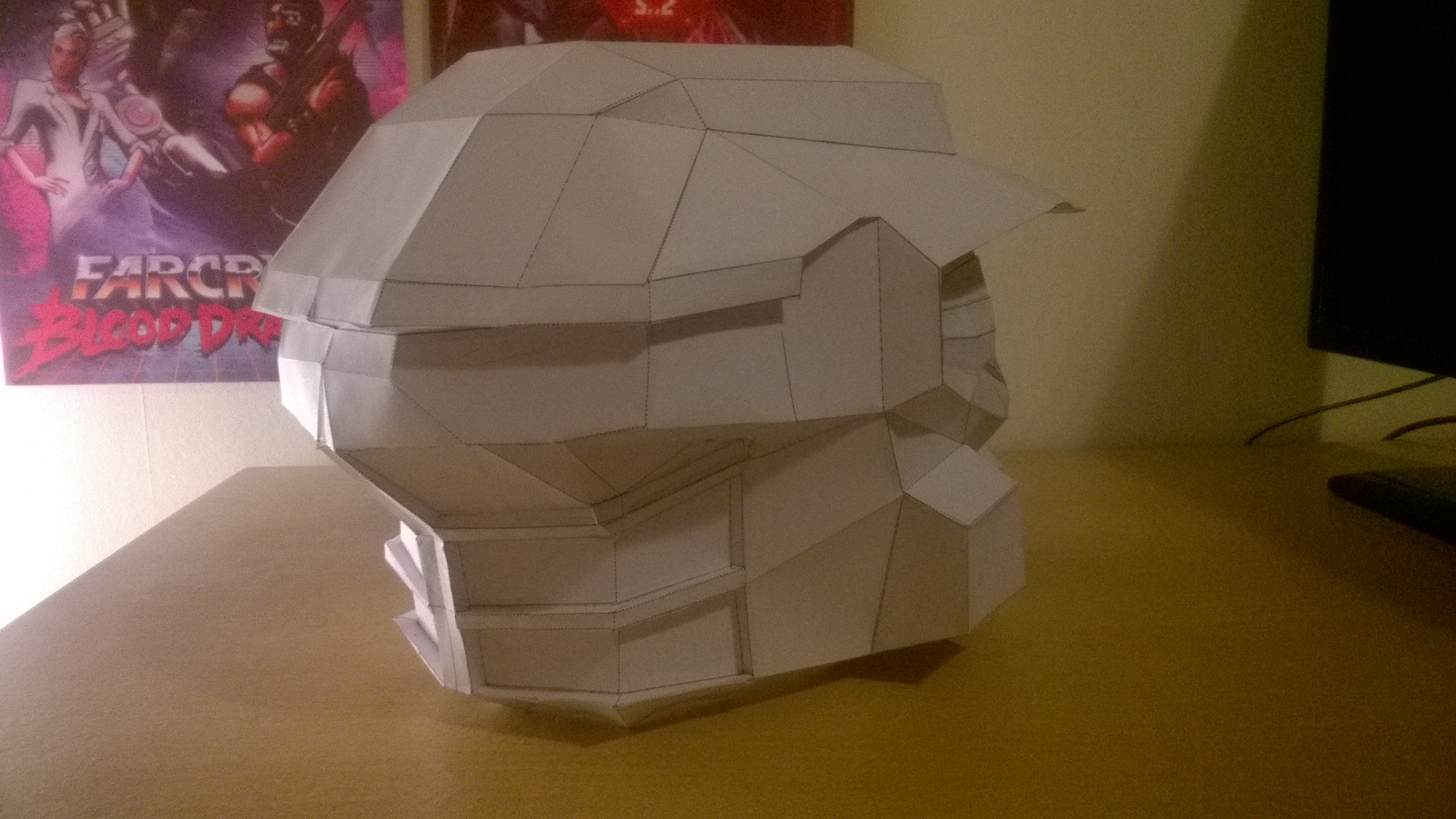 It turned out to be fairly reasonable, took about four days in total, and it's surprisingly strong considering it's just made of paper! There were a couple of parts that were annoying, namely the back where it has 'cliffhanger' edges, and attaching the visor just did not want to happen lol...