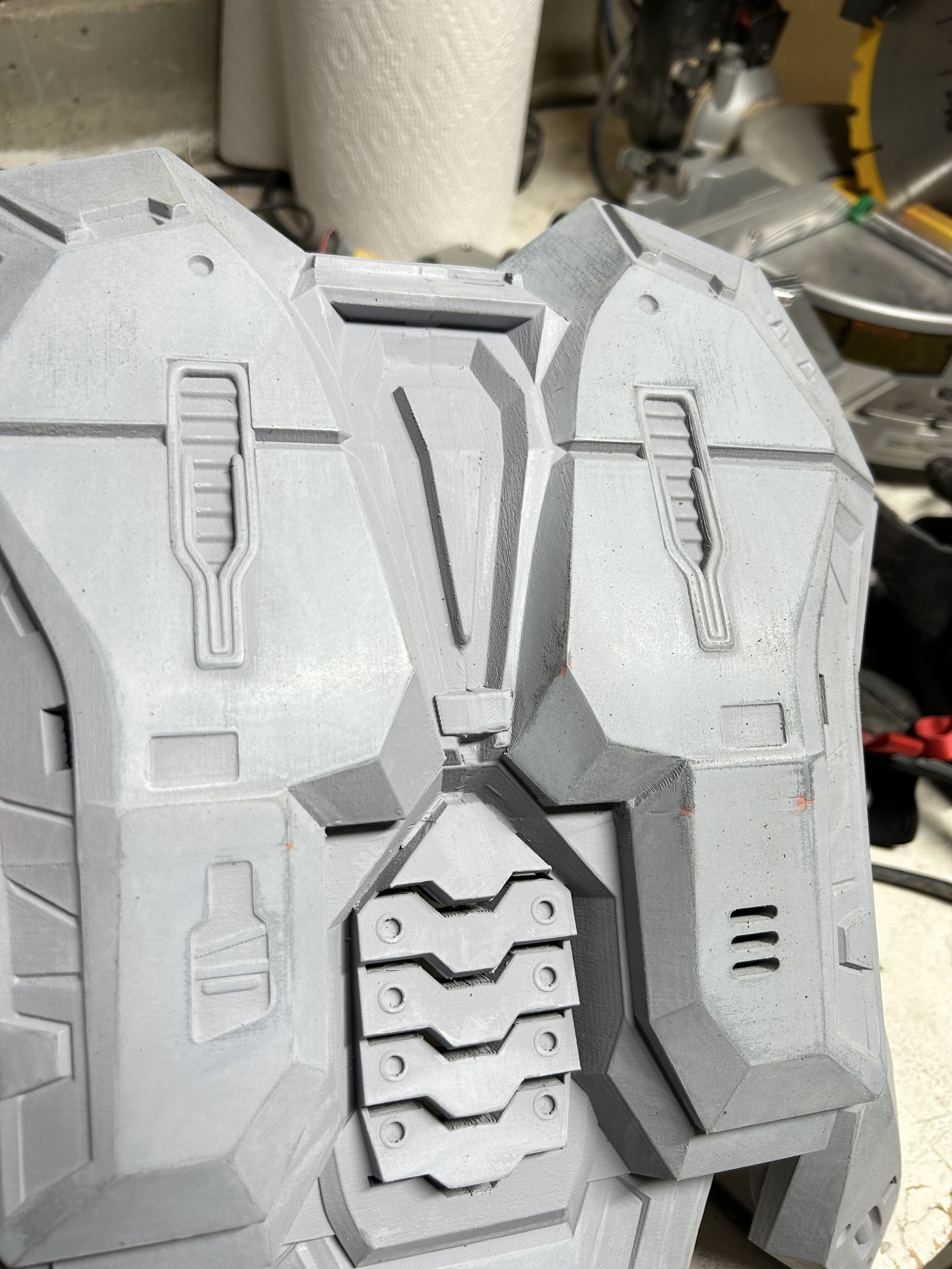 Weather is getting better here in the PNW so I’m painting my life away. Five cans of filler primer gone and sanding the back of the torso is going incredibly. Looking forward to the first coat of paint to see how it turns out. I don’t think I’ll have any part of the undersuit done for Gaming Expo, but hopefully I’ll have a full suit of wearable and maybe painted armor.
