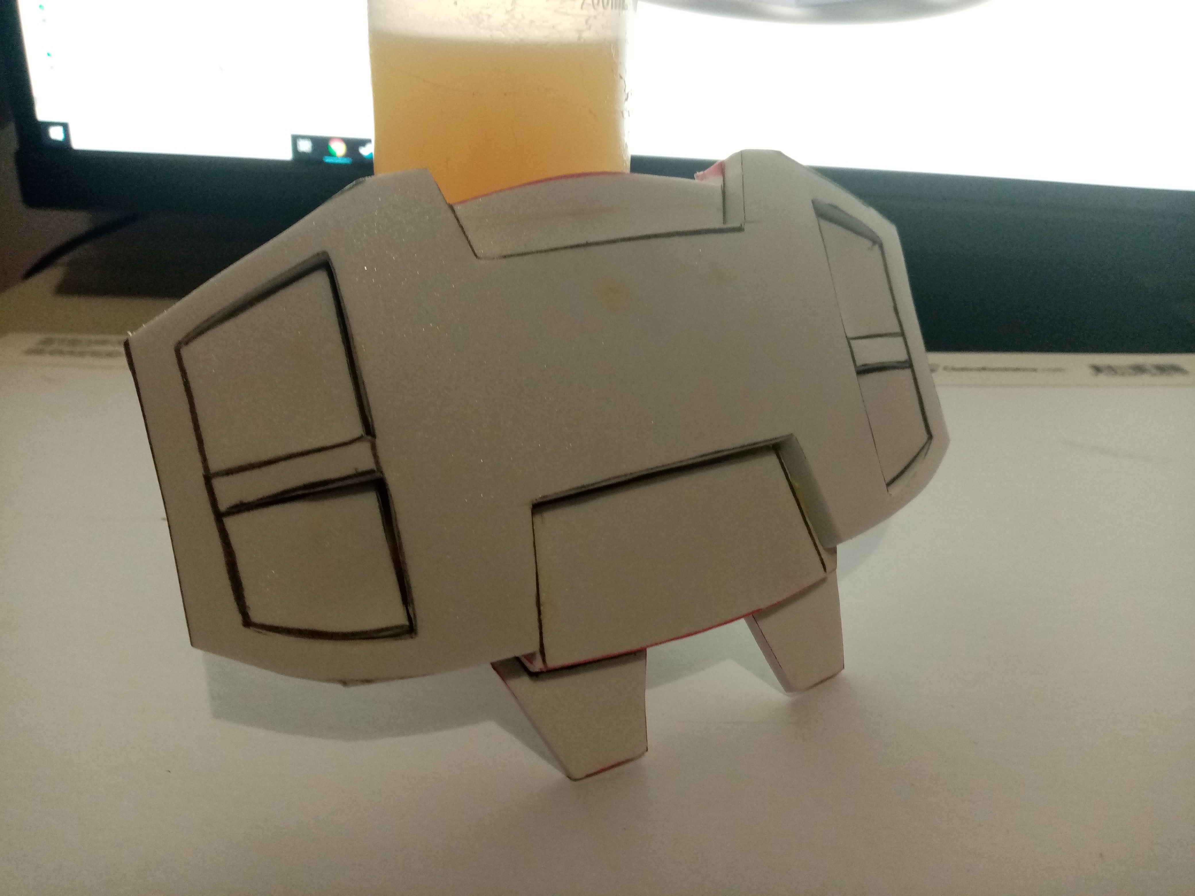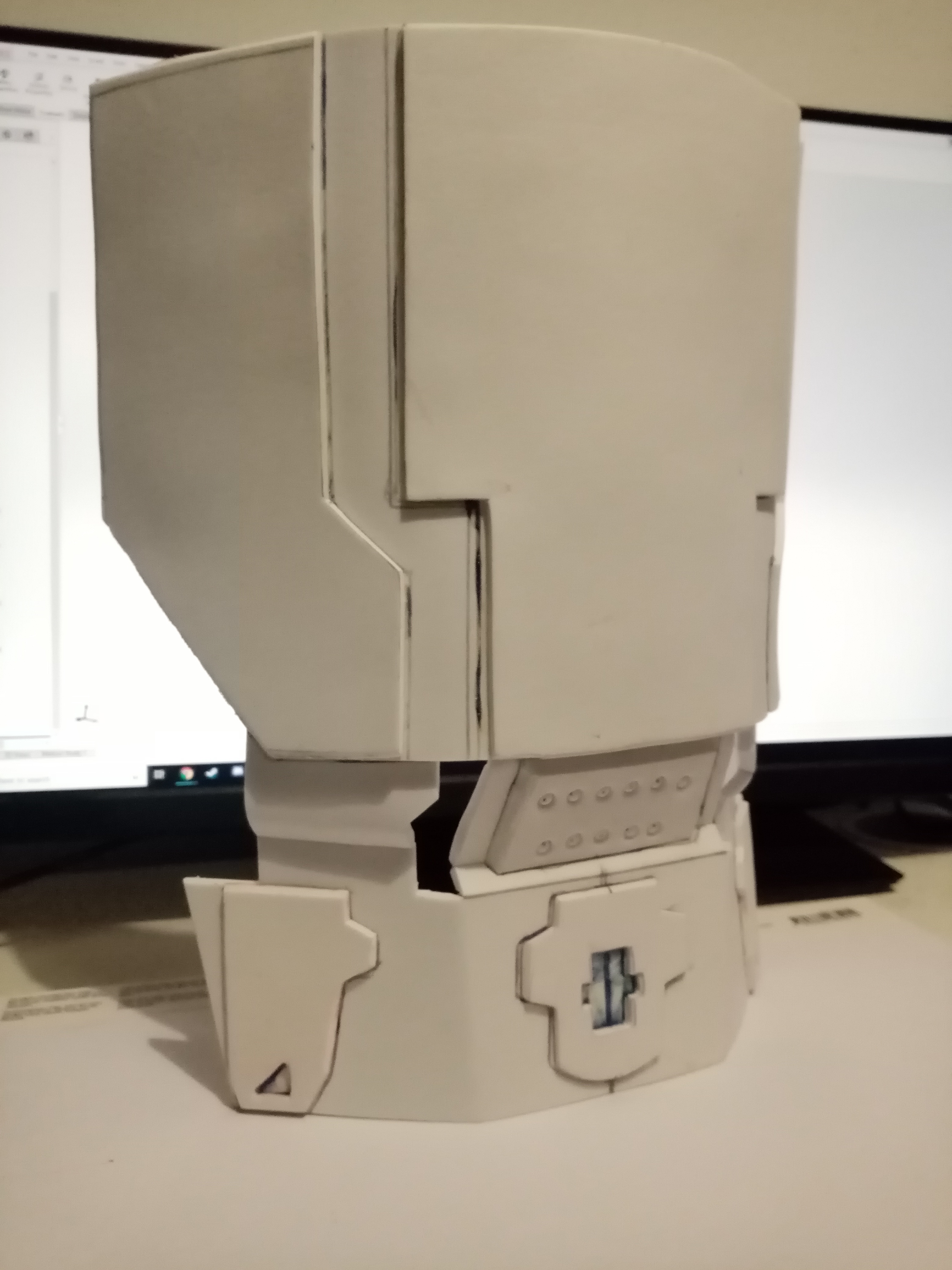 I has some issues with cutting angles (I think the stuff I bought was quite low density), but apart from that I got the pieces built in an hour or 2. The pices were bent around a tube wrapped in towls to add thickness and everything was glued with contact cement (you can still see some of the mess). Need to find my dremel to sand the edges down then onto finishing.