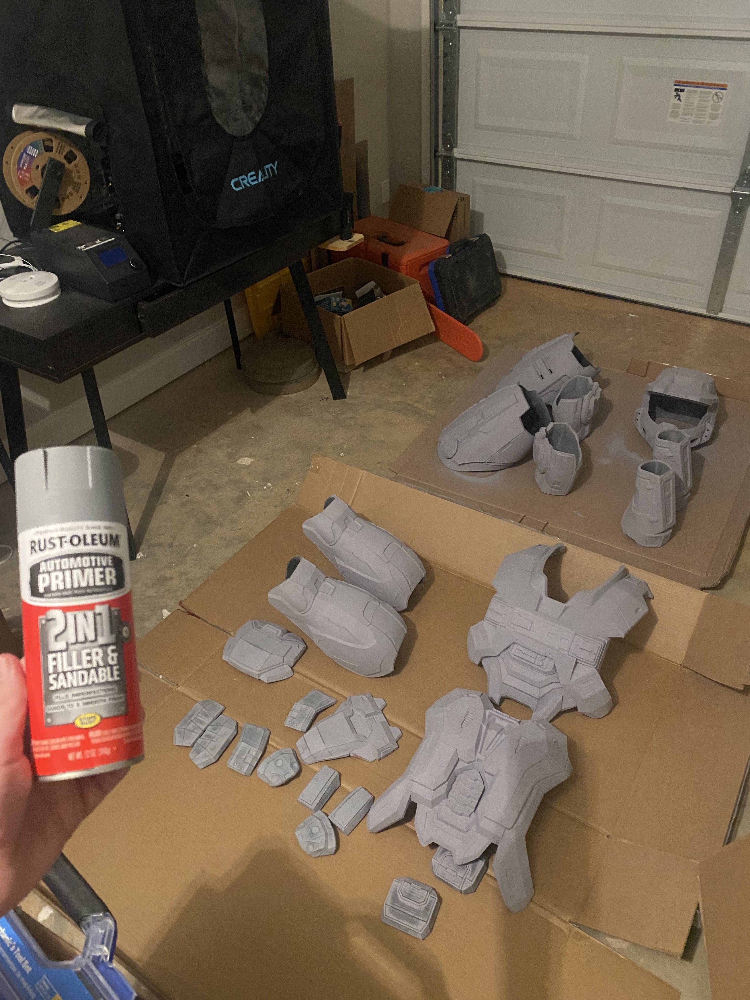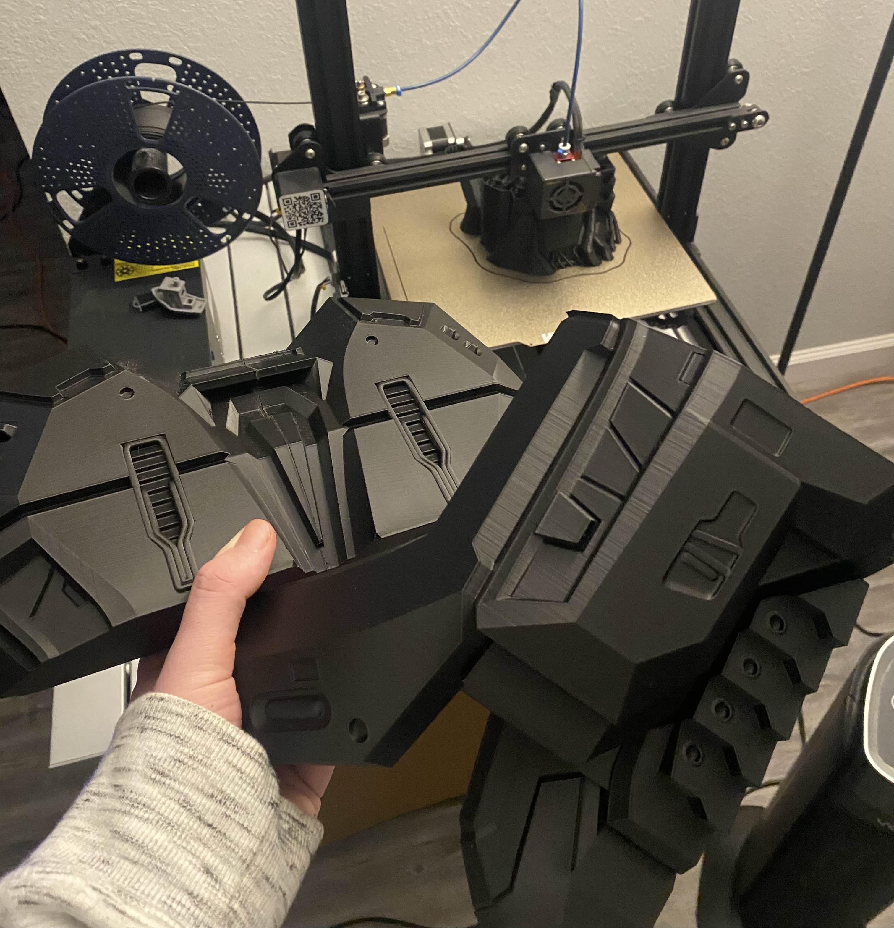 I just graduated and moved for my job so its been slow. It also doesn't help that is cold and I cant spray any primers or paints on the pieces. I have printed out the helmet and glued it together but I'm having trouble with the small details not fitting. I am experimenting with different scales since they only take a few grams of filament. My printer has also been banished to the garage so I had to get this enclosure for the cold and dust.
