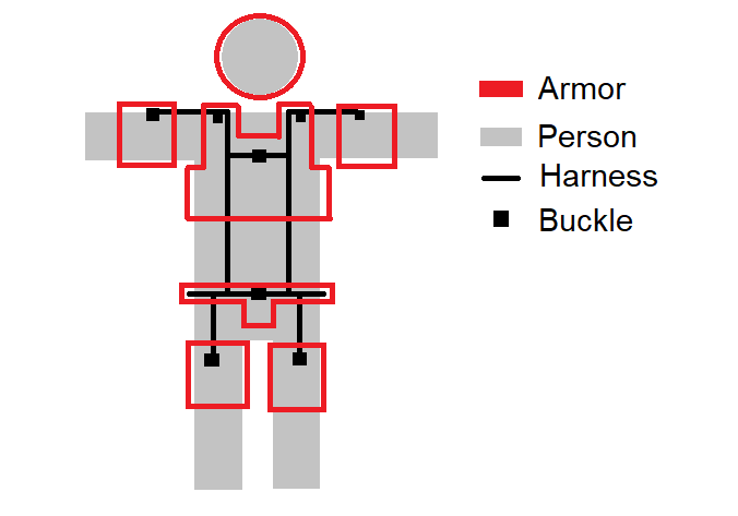As for the belt, I'm currently working on this as well. I've got slots in my pieces to run a 1inch nylon strap through them to essentially wear it like an actual belt. Then I'll be holding it up via the chest harness. This also gives me a point to attach the thigh pieces. This VERY rudimentary sketch may help:
