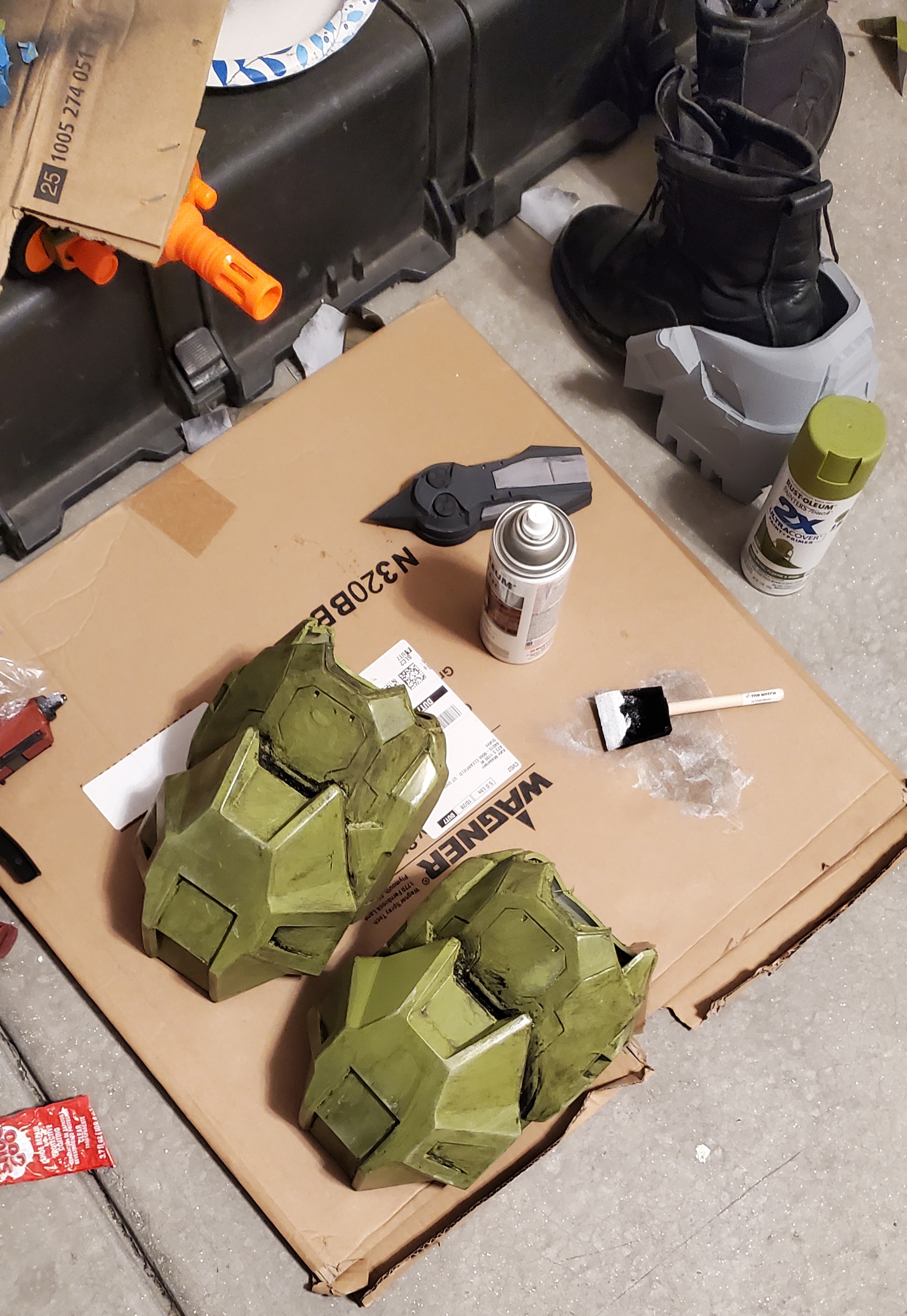 got the shoulders padded and i need to re-print the right vambrace, but other than that i just need to strap and paint the shoulders while i sand the vambraces and wait for the boot parts to print. might post pics tomorrow if i remember