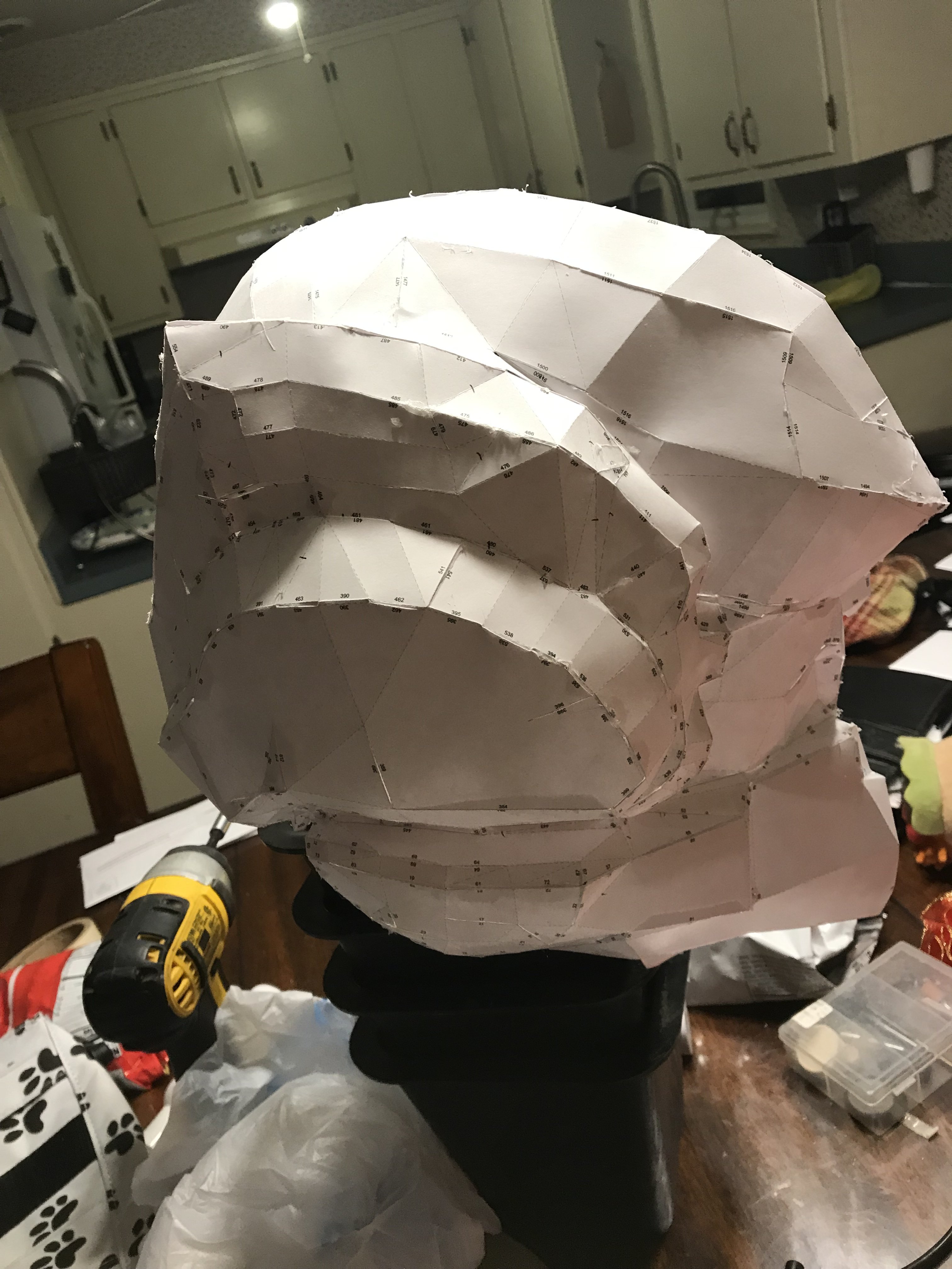 So here’s the semi-final product. I still have to paint it the final colors tomorrow. I’m thinking about going back later and adding more details after I get more experience but I think that might mess it up. Either way I’m pretty happy with the results and I’d like to thank everyone on here that helped out. I probably would’ve gave up after I cut the paper out on the forearm if it weren’t for you guys’ help