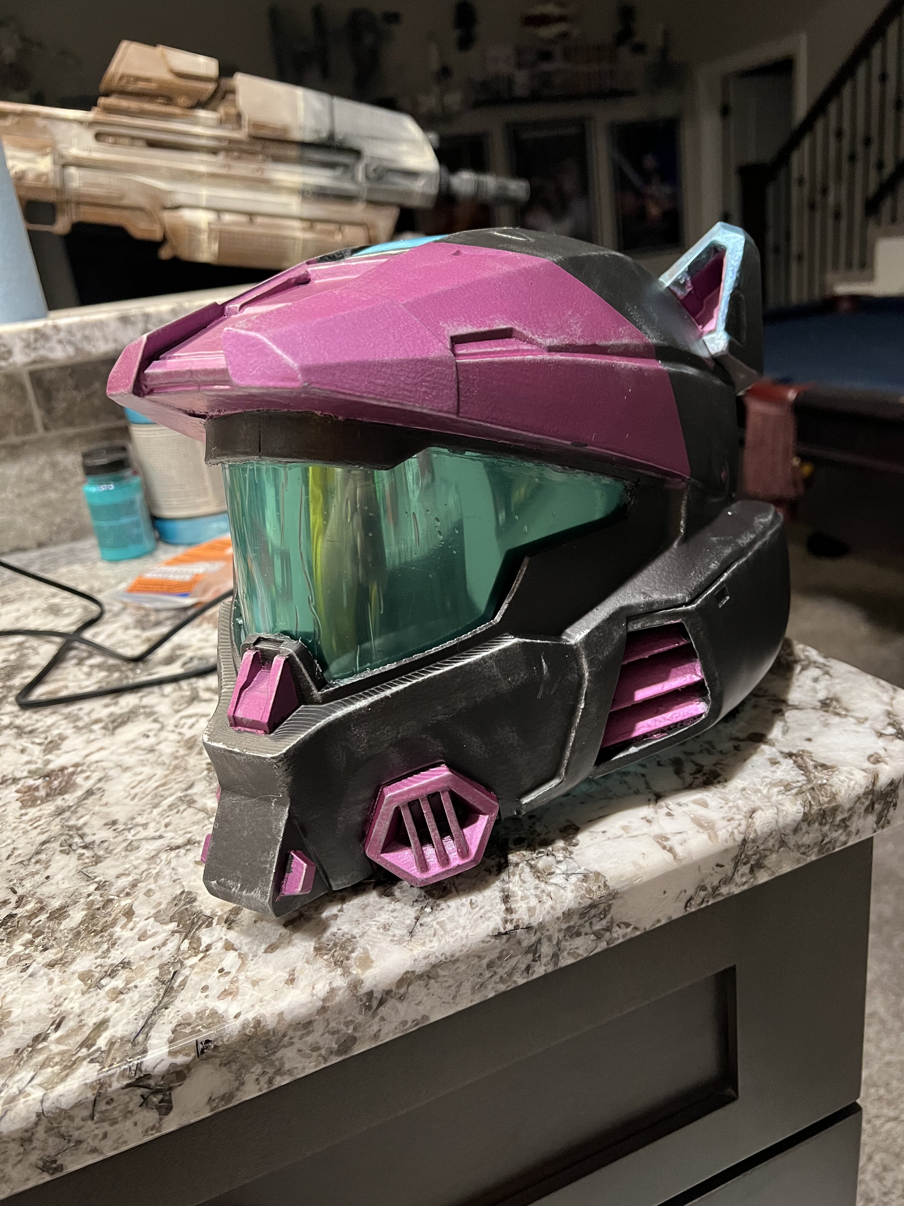 Looks great and all we're doing to the inside is adding some foam for comfortability and so it sits straight and everything. I've thought about spray painting it black but my helmet was printed with black filament so I probably won't