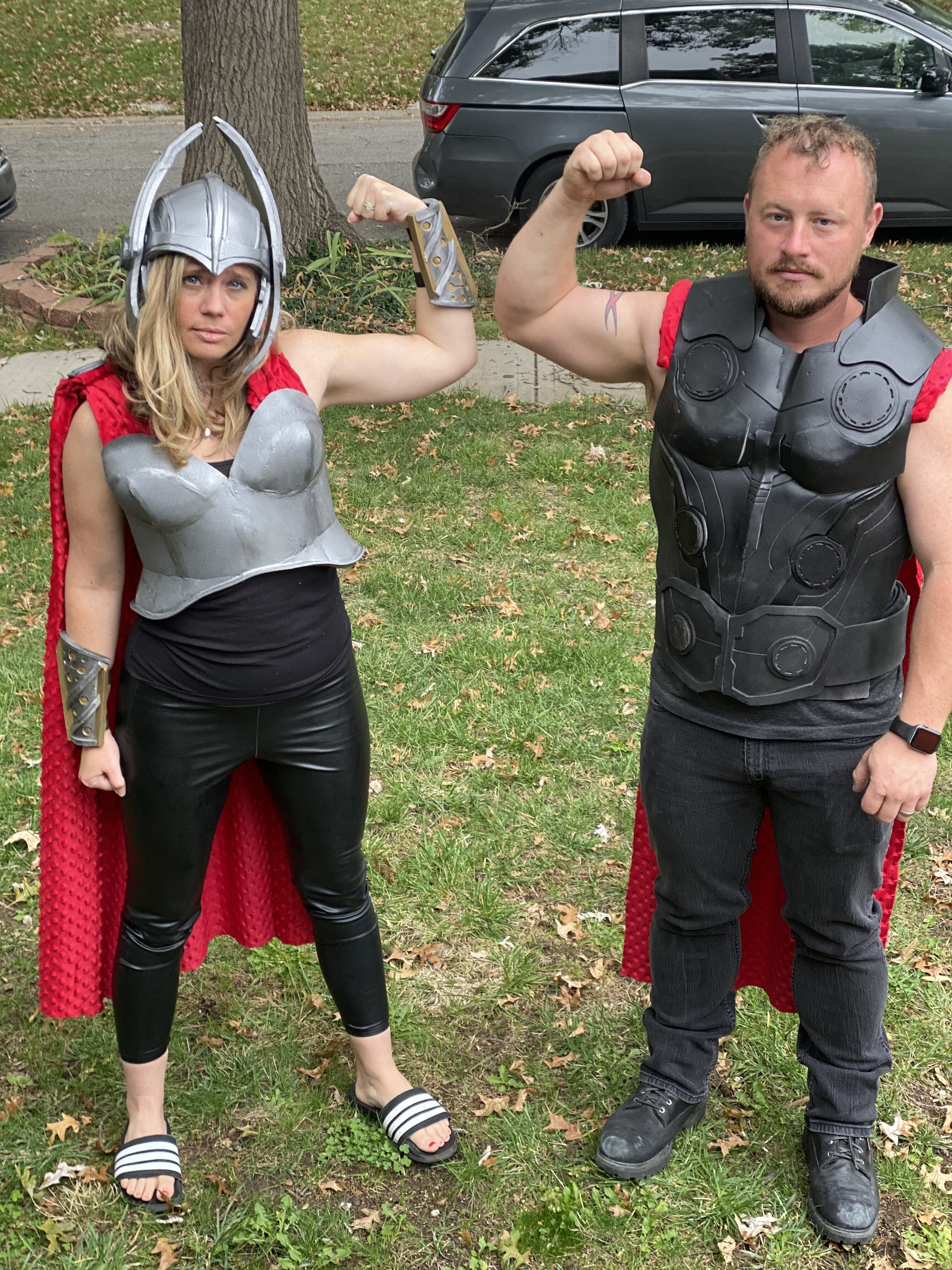 My issue is if you look at the calf it looks substantial and the thigh while fits better doesn’t look as impressive. What thickness of foam should I use for these parts. Or do different parts need different thickness? Especially the helmet. Would a thick foam helmet work? I’d love some feedback on these and any of the helmets in the beginning below are a few additional props and costumes I’ve made