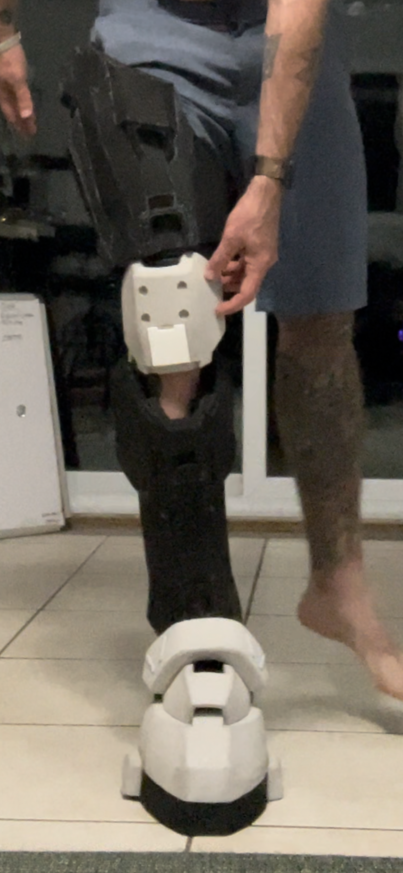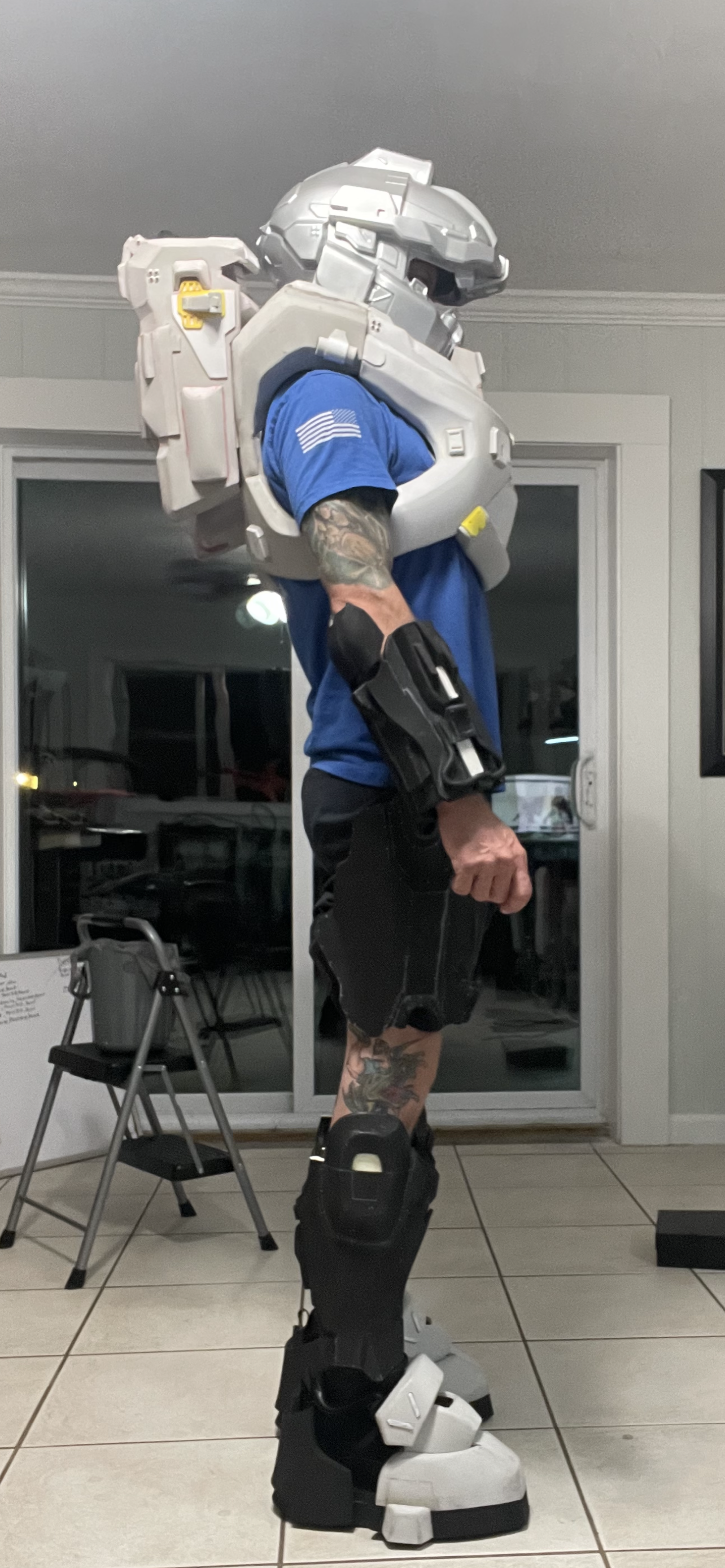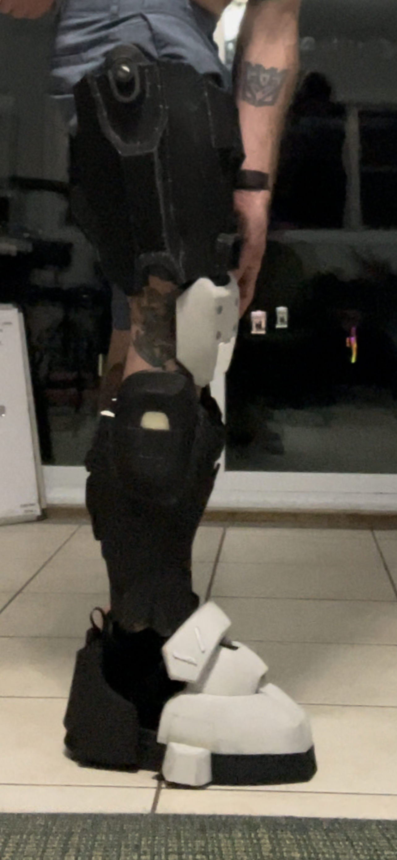 New thigh is done, size seems good. I also recently finished adjusting the height of the boots and added Velcro to connect them to my lifters. Excited that one whole leg is done now. One more thigh and the arms left to build