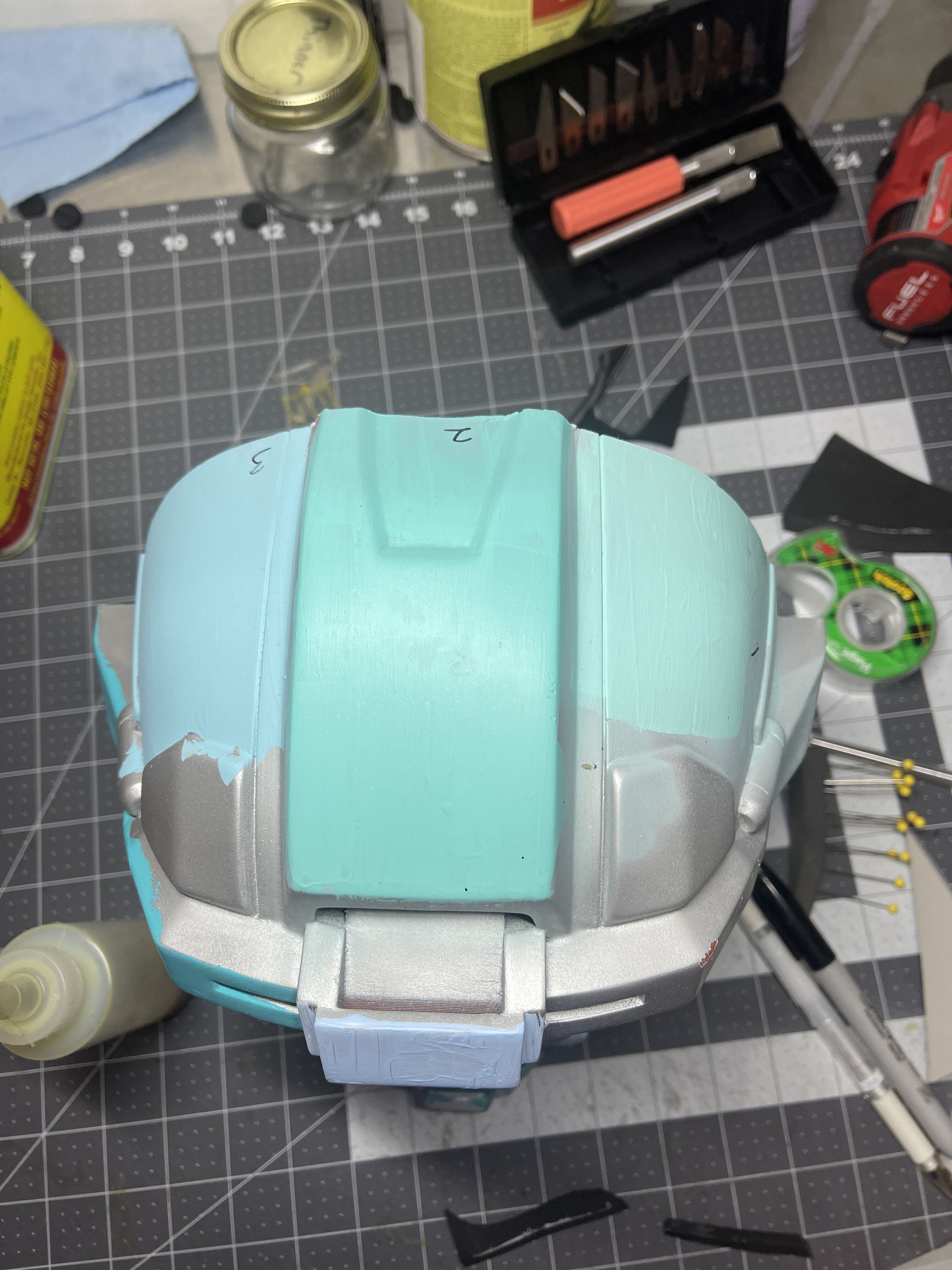 Did some testing at my friends body shop with painting, and it looks like I will be able to paint it with automotive paint. It laid down nicely and fast, we flexed it basically in half and didn’t seem to have any issues. Hopefully we will be able to do it next Saturday. At least lay down the base color, then the rest I can airbrush or hand paint. This color seems to have a nice shift between blue and teal depending on the lighting.