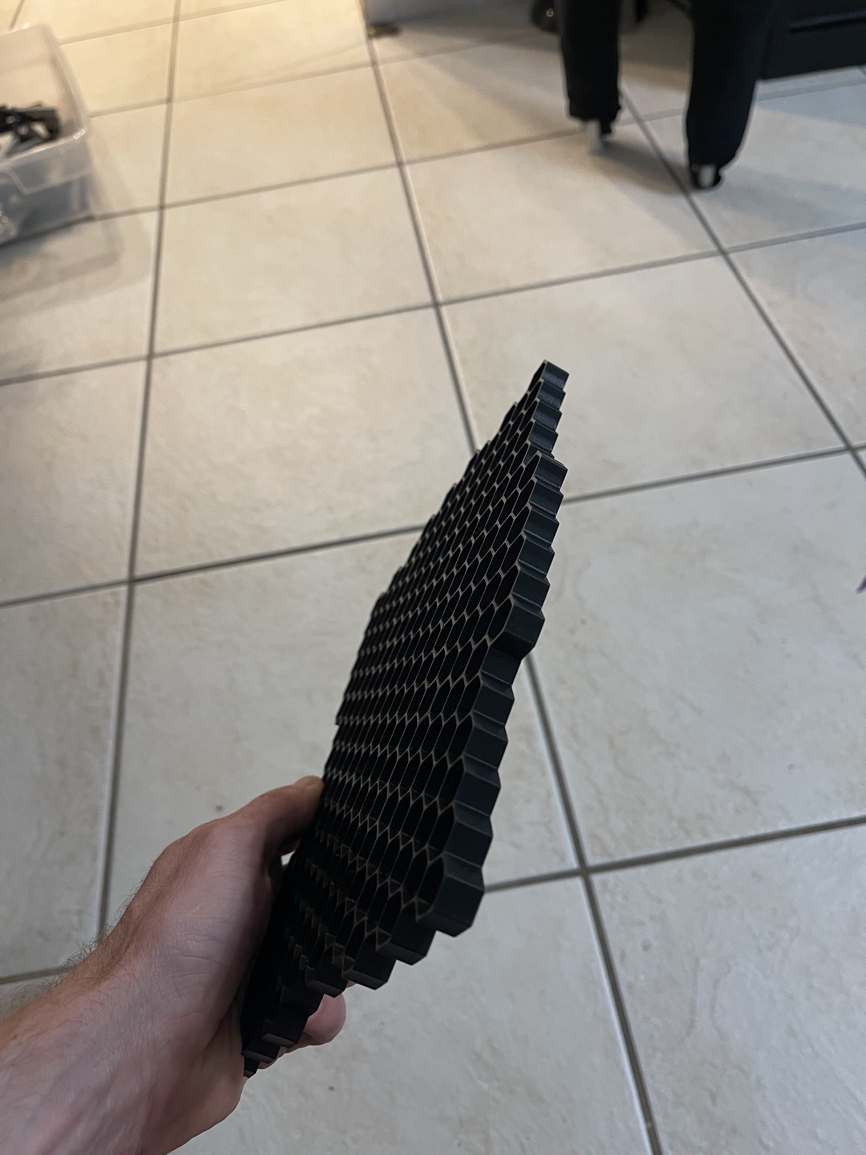 Wait im a bit confused how you got the texture. You heated the foam, then pressed the texture in manually with like a piece of metal or something? Or did you have a hex grid that you could press it all at the same time. That is quite interesting