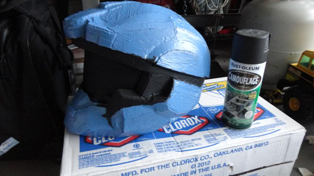 As of now, on the agenda is to finish detailing the shoulder plates, to have everything that isn't painted yet painted, and to find better mounting solutions for pieces like the ab plates (as they're held into place with tape in this picture) and for the thigh and shin guards.