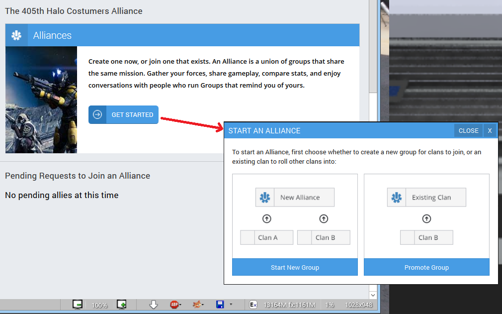 And the assessment of Alliances is about right. Basically it's a grouping of clans. The obvious benefit here is you have a larger pool of players (I think Clans only allow 100 members, having an alliance multiplies that number). It's entirely possible we may need to set up multiple clans for the 405th if we have more players than clan number limits allow.
