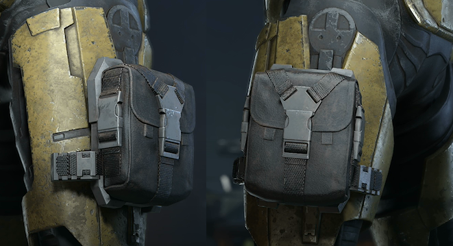 Now I want a pouch. And this one looks very cool - there is the another one that looks more like ammo pouch but I prefer this design more. That 3 part clip stands out so I'll take some inspiration from this pouch in Infinite.