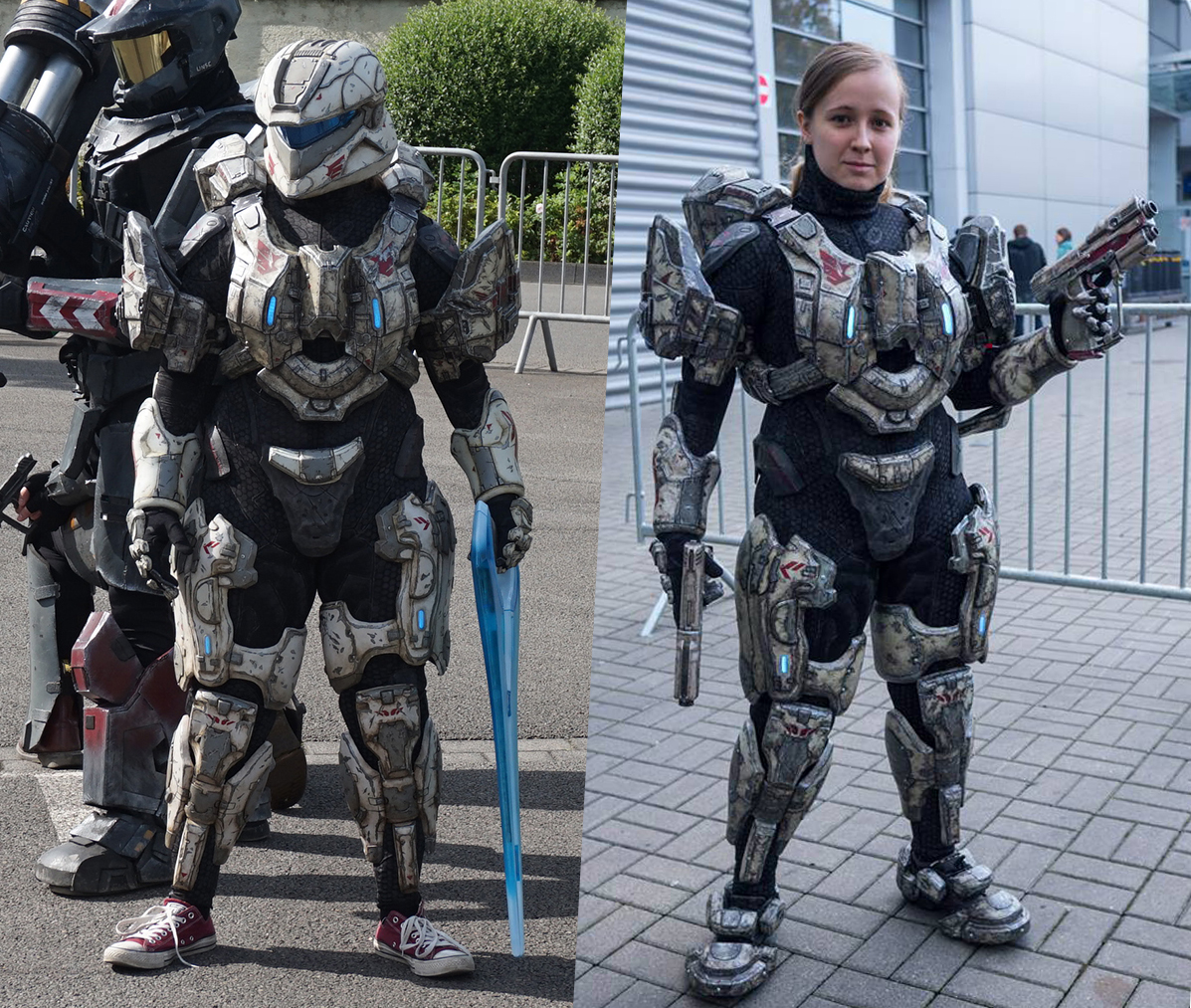 At first I tried making it out of 5mm foam (on the left on the photo) but it turned out very bulky due to thickness of the foam and I'd have to shave of a lot of foam to make them look nice (and to make them comfortable). So I'm making those fingertips out of 2mm foam and works great - they'll look more sleek when I glue them to the glove from the sides.