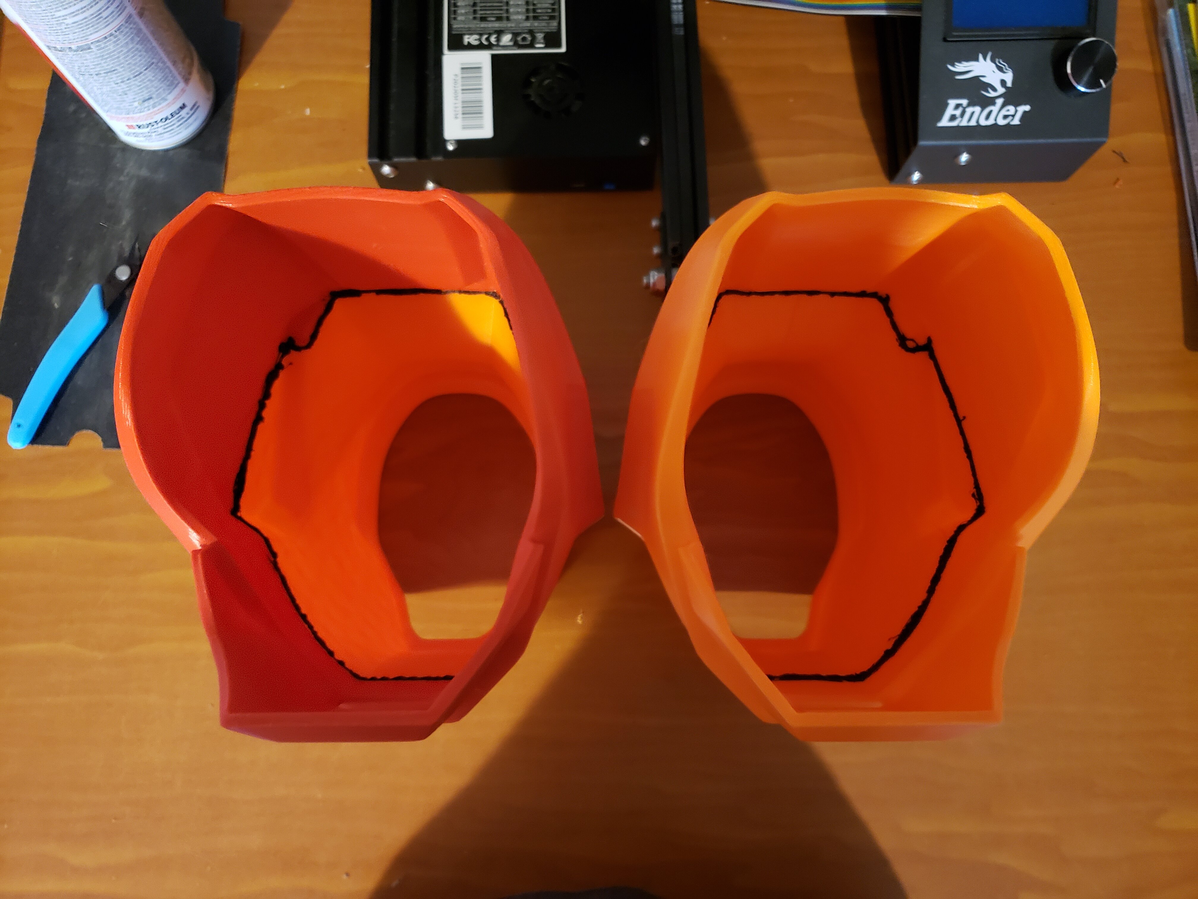 Ok so now I've got all of the parts for the left thigh printed out and I've got the first grenadier knee printed! I've already started printing the 2nd knee and I've been getting some sanding in on the other parts while things are printing