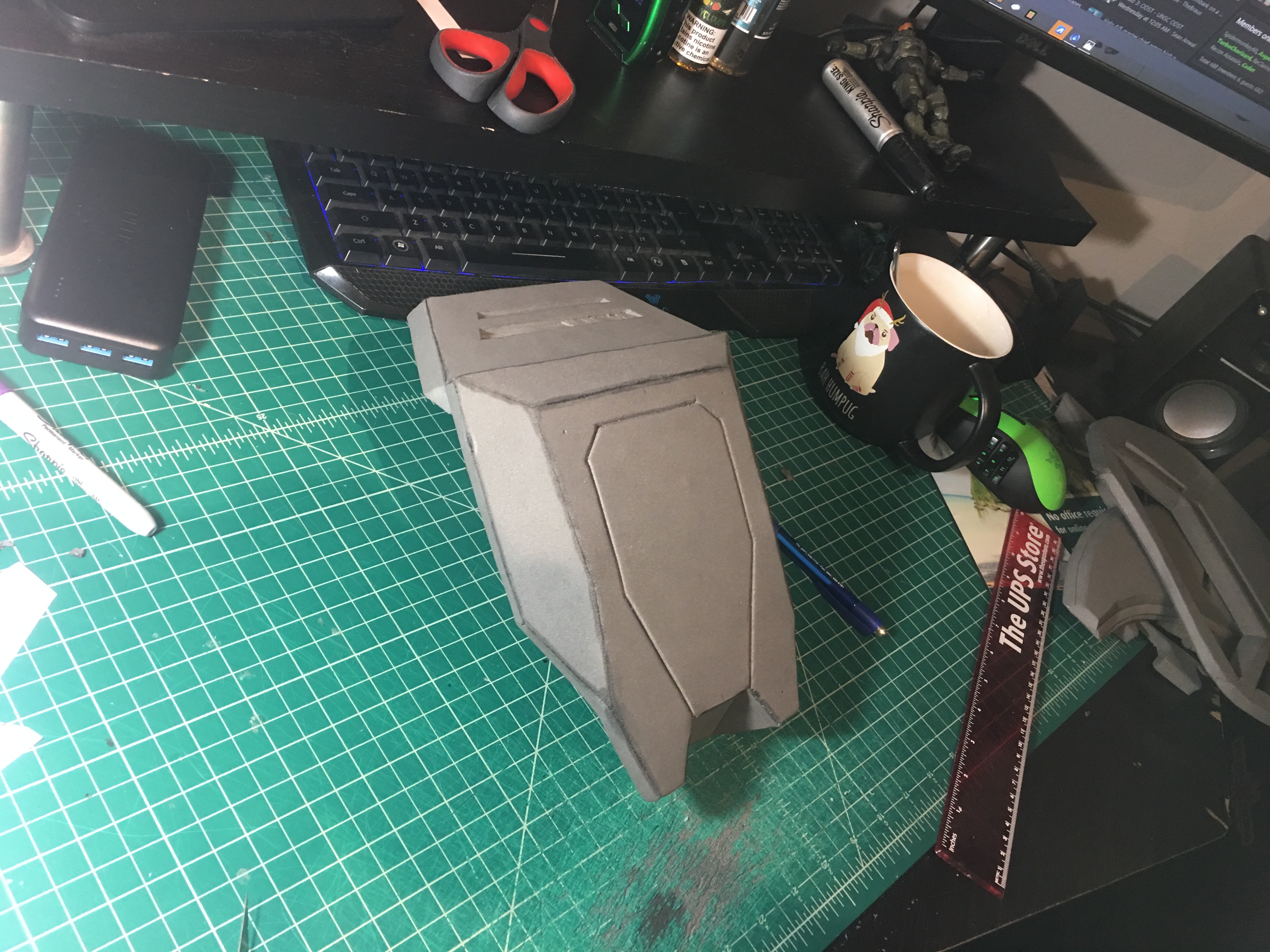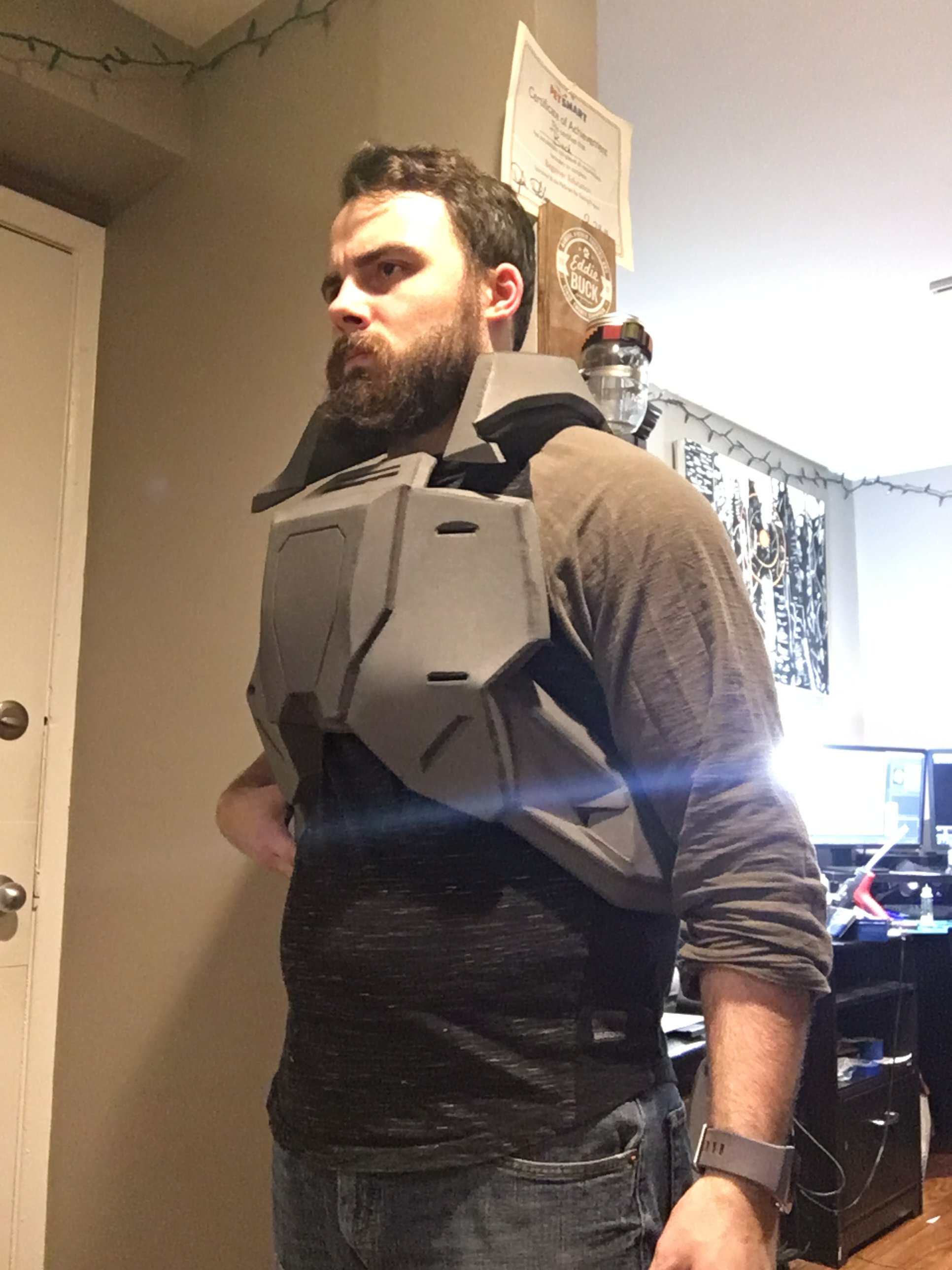 Hoping to have at least the chest and shoulders done by the end of the week. I have to wait on my combat boots to come in so I can do the shin guards/ knee piece due to sizing around the boots.