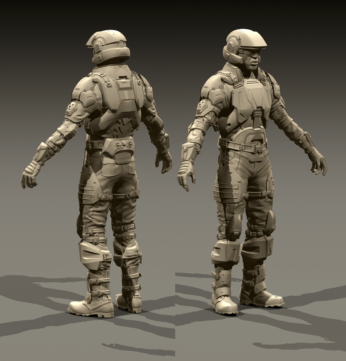 It might also be worth looking at how WETA did the Marines for "Landfall." This thread from 2009 actually has a bunch of intact picture links to the Marine armor used in the short and other promotional displays.