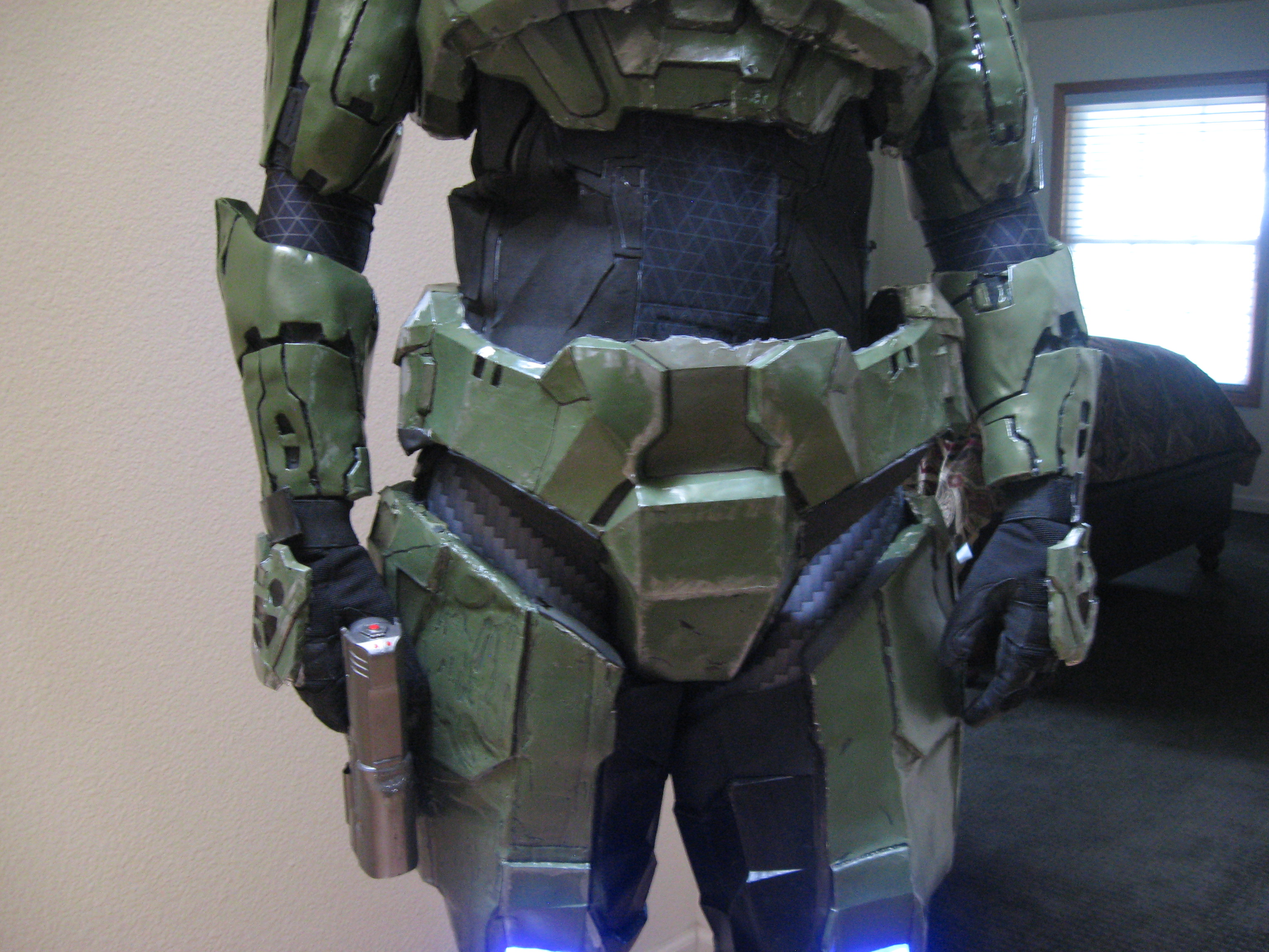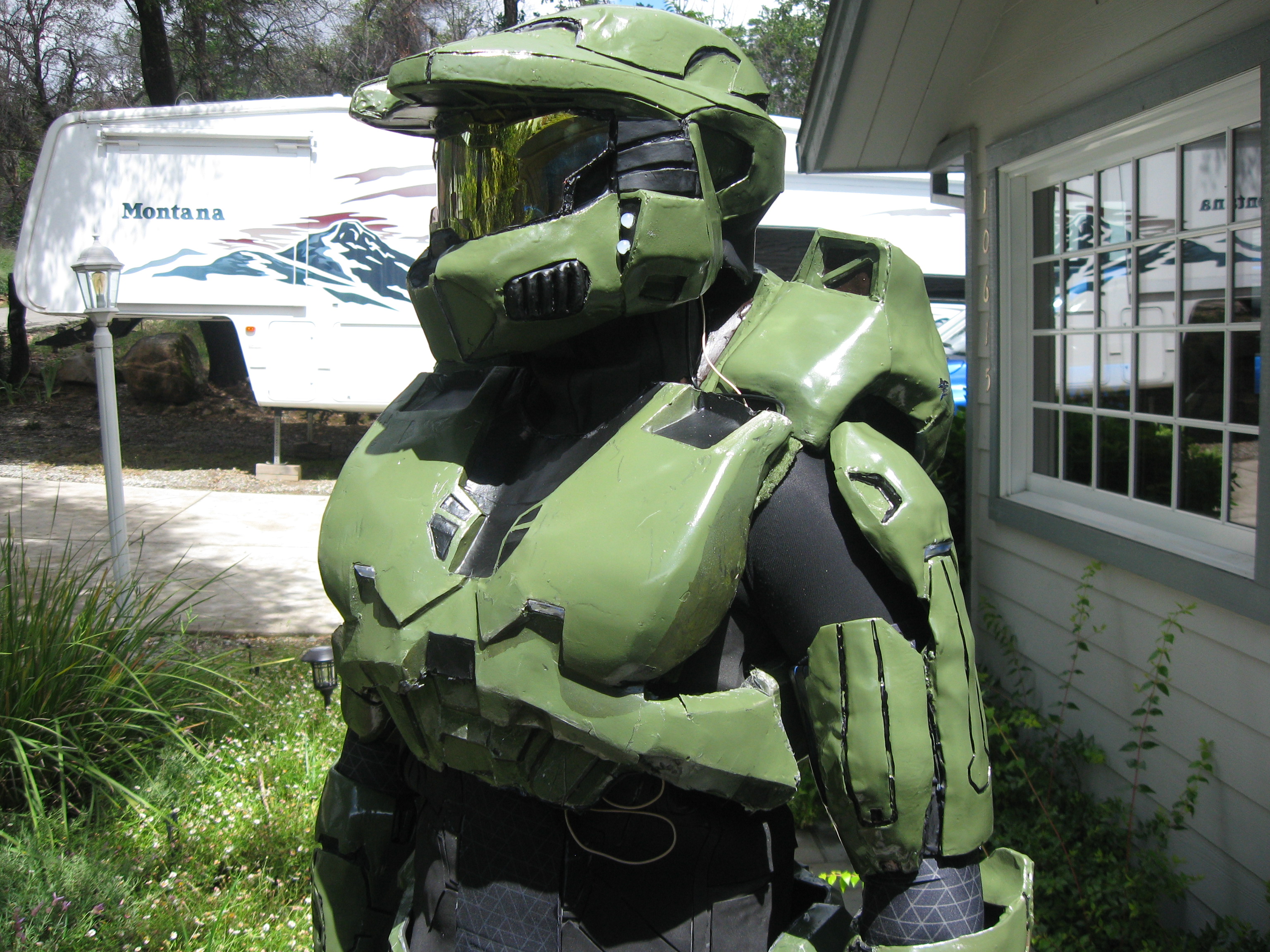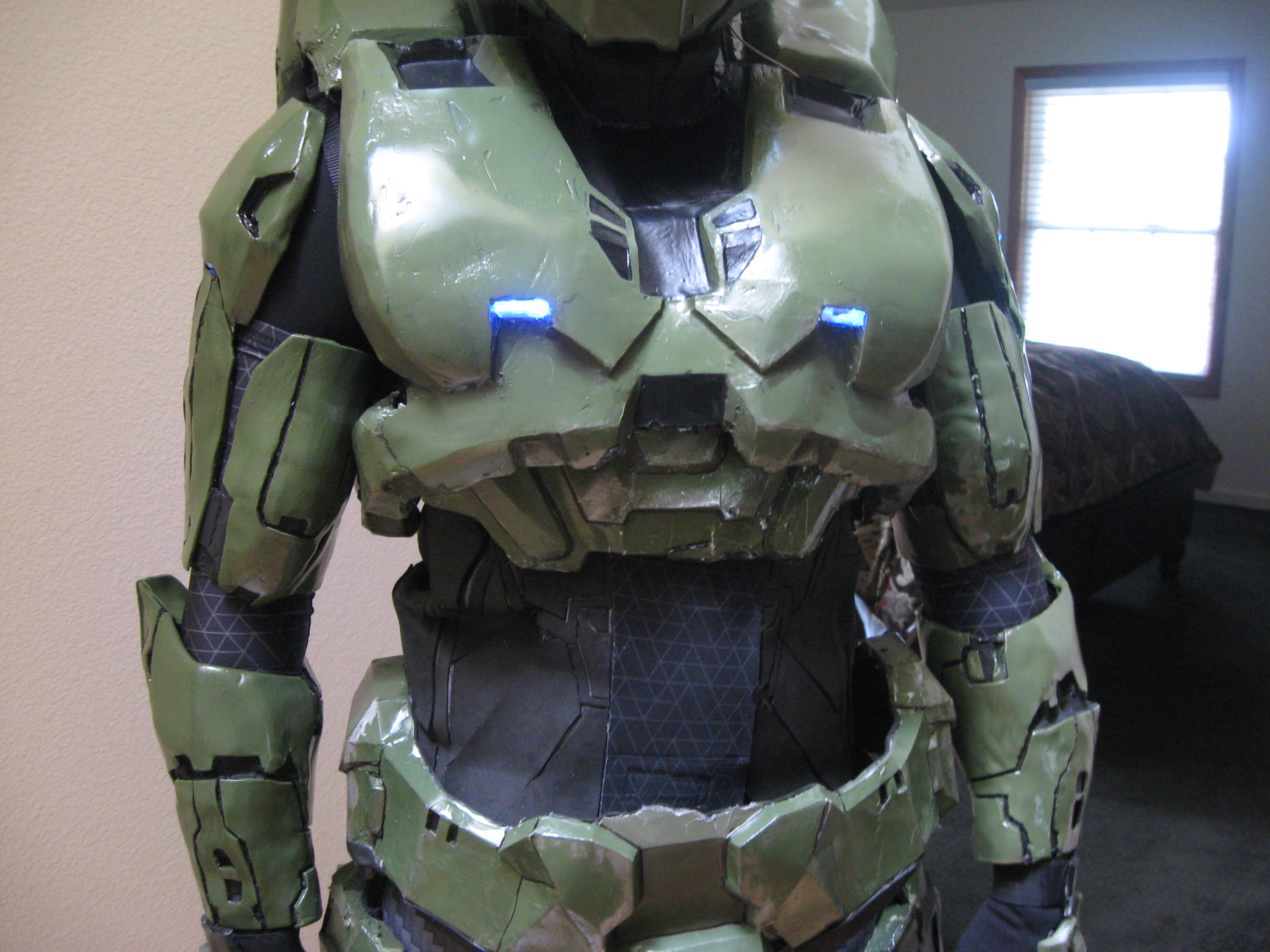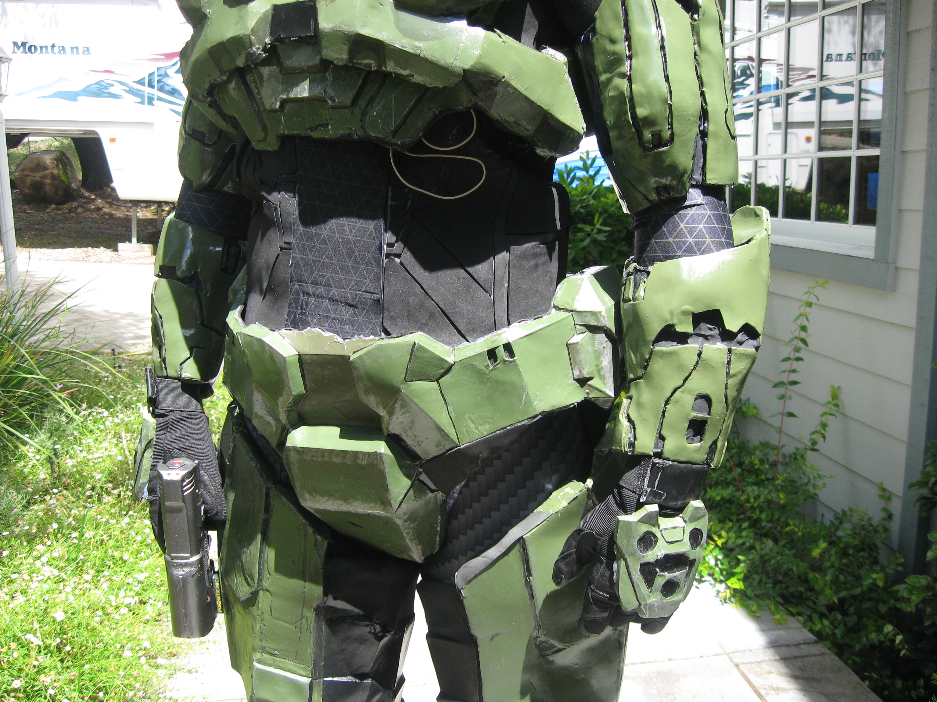 I have many places on the armor where it has been fractured, overflexed and piece of it are broken out due to overwear, or old repairs that I never got around to fixing properly. I will put in pics very soon but here is the first pic. The bicep piece had major damage to it but with the use of 1/2" thick foam over the areas that were gone and cracked through it will look like new before long.