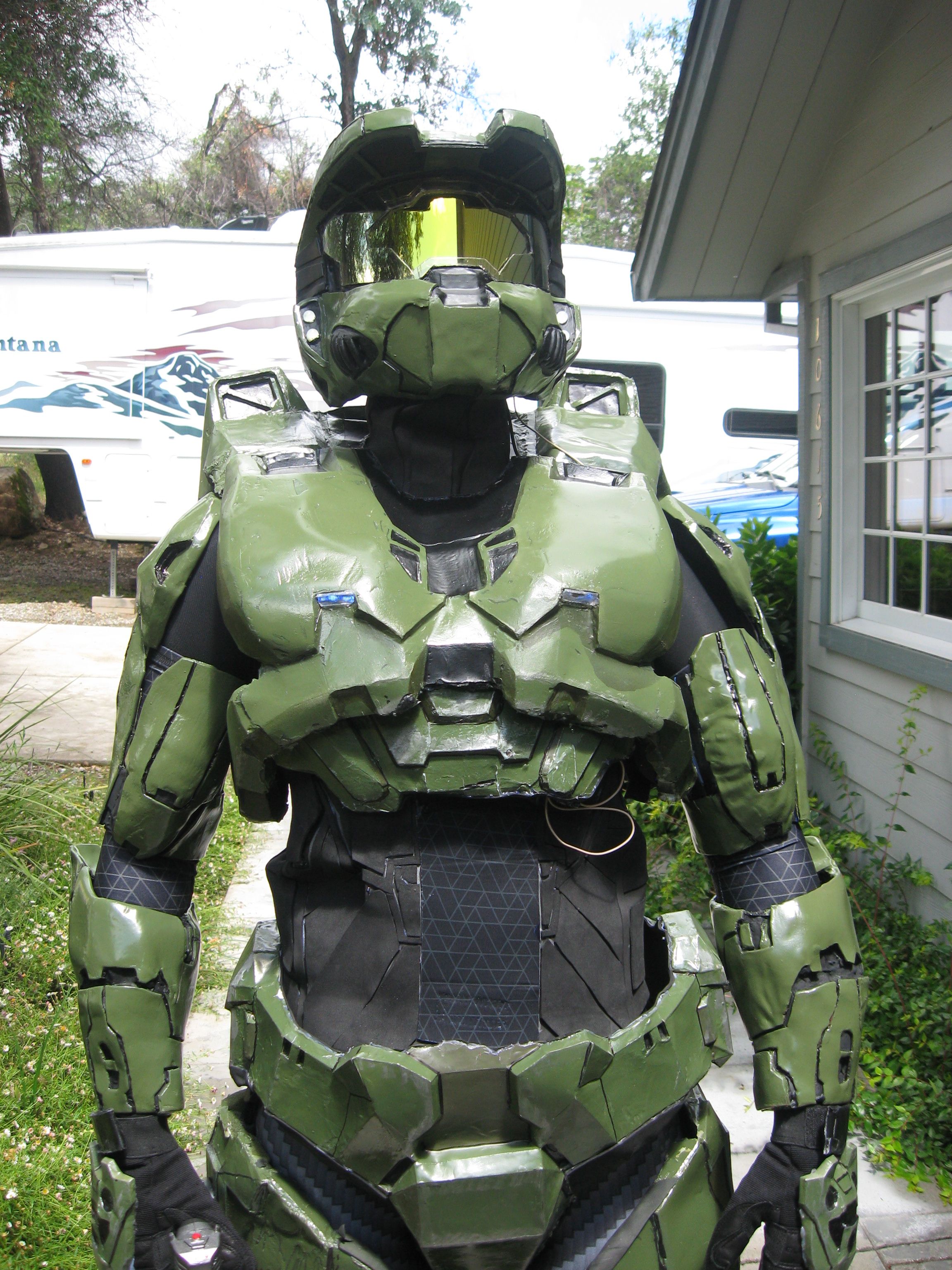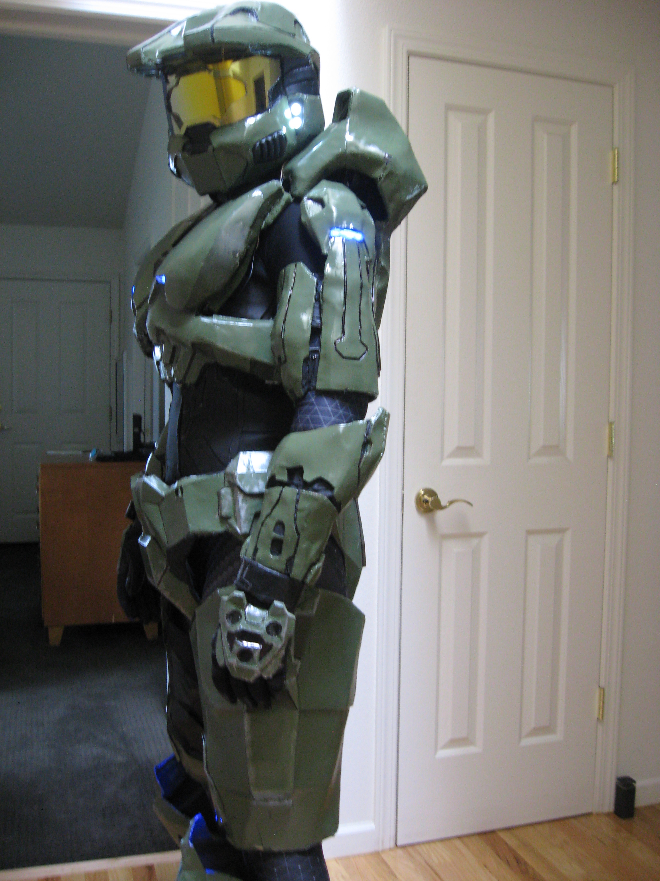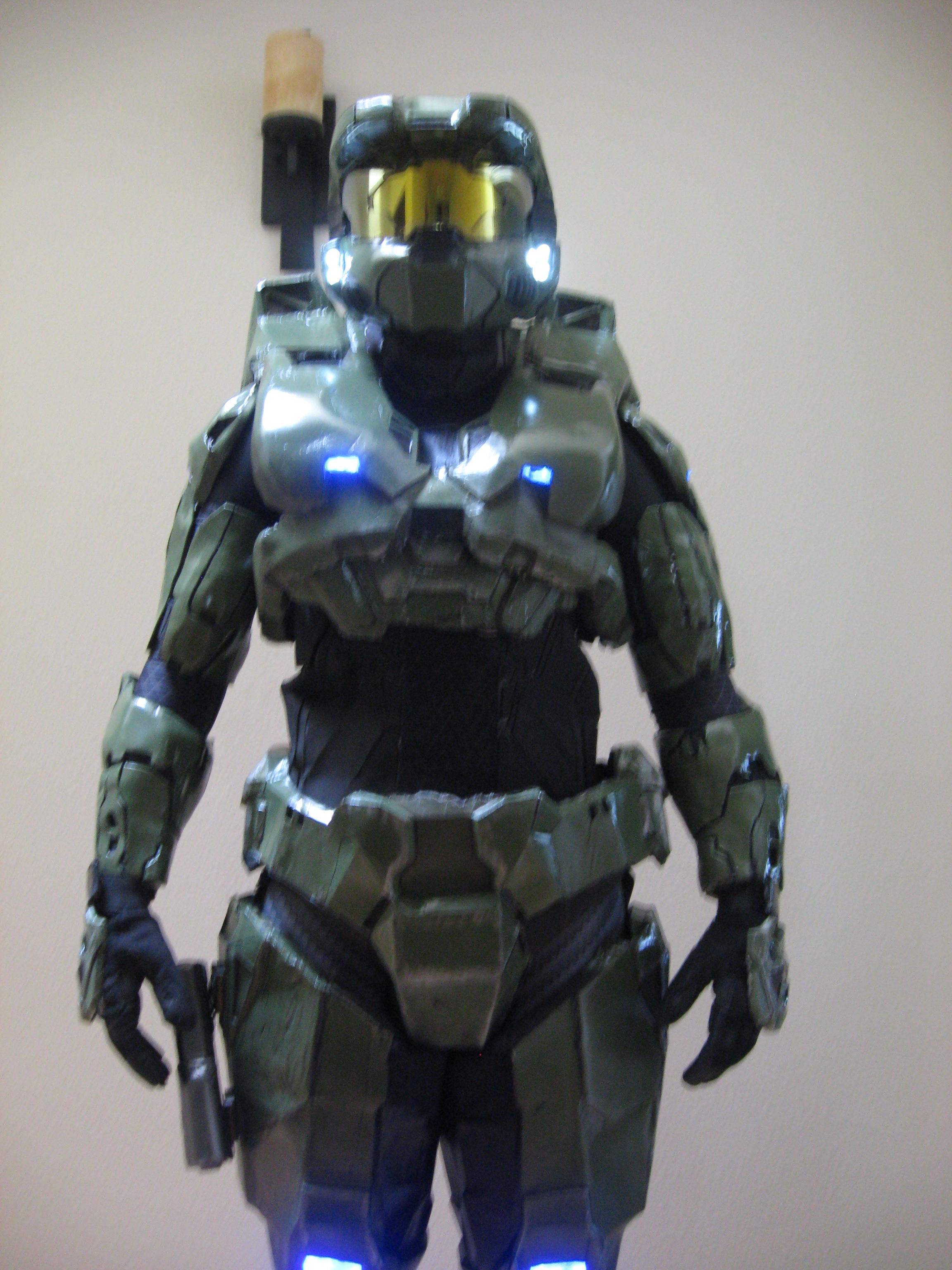 I have many places on the armor where it has been fractured, overflexed and piece of it are broken out due to overwear, or old repairs that I never got around to fixing properly. I will put in pics very soon but here is the first pic. The bicep piece had major damage to it but with the use of 1/2" thick foam over the areas that were gone and cracked through it will look like new before long.