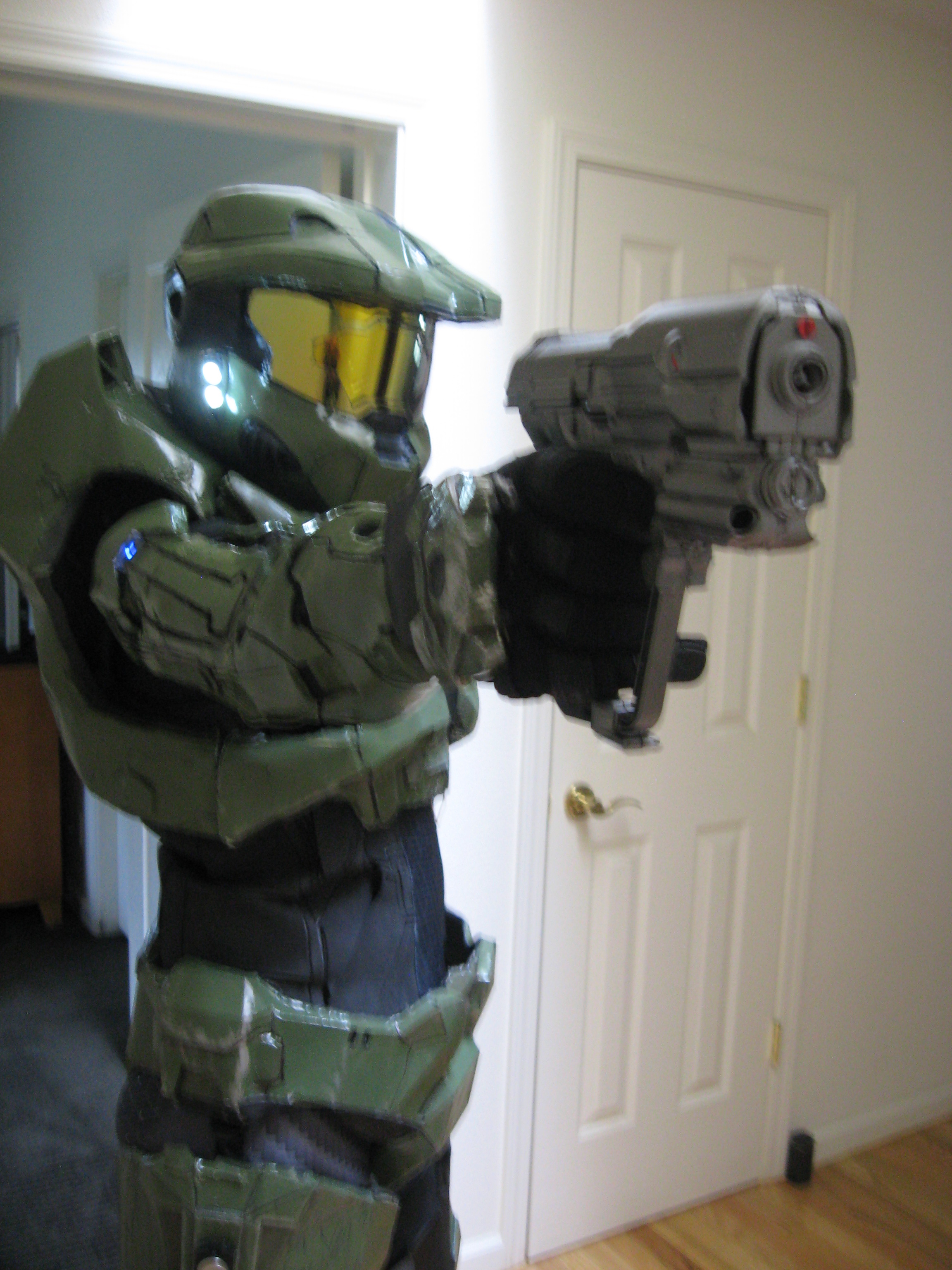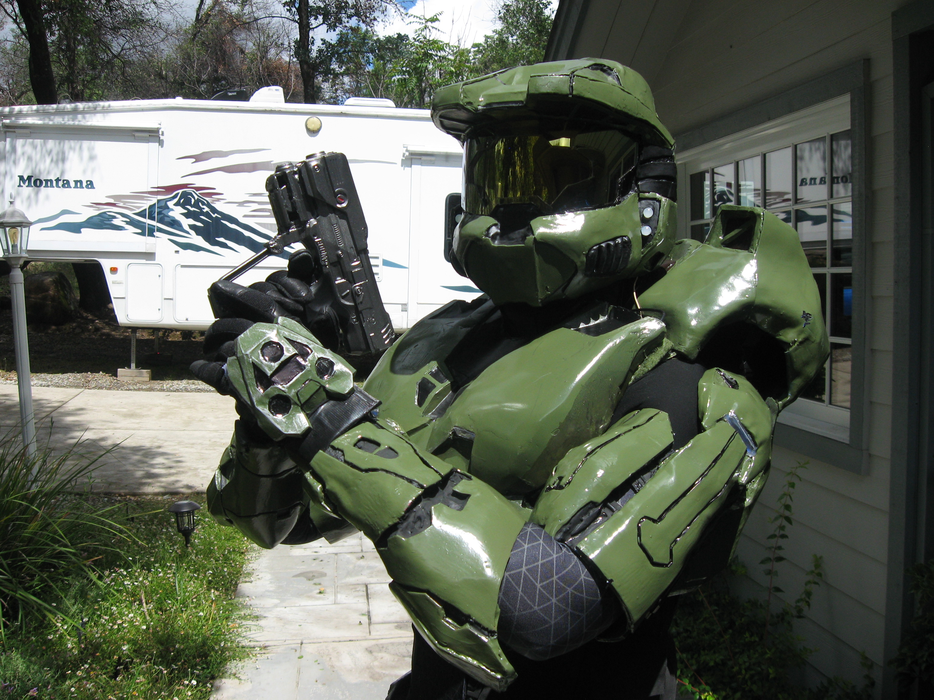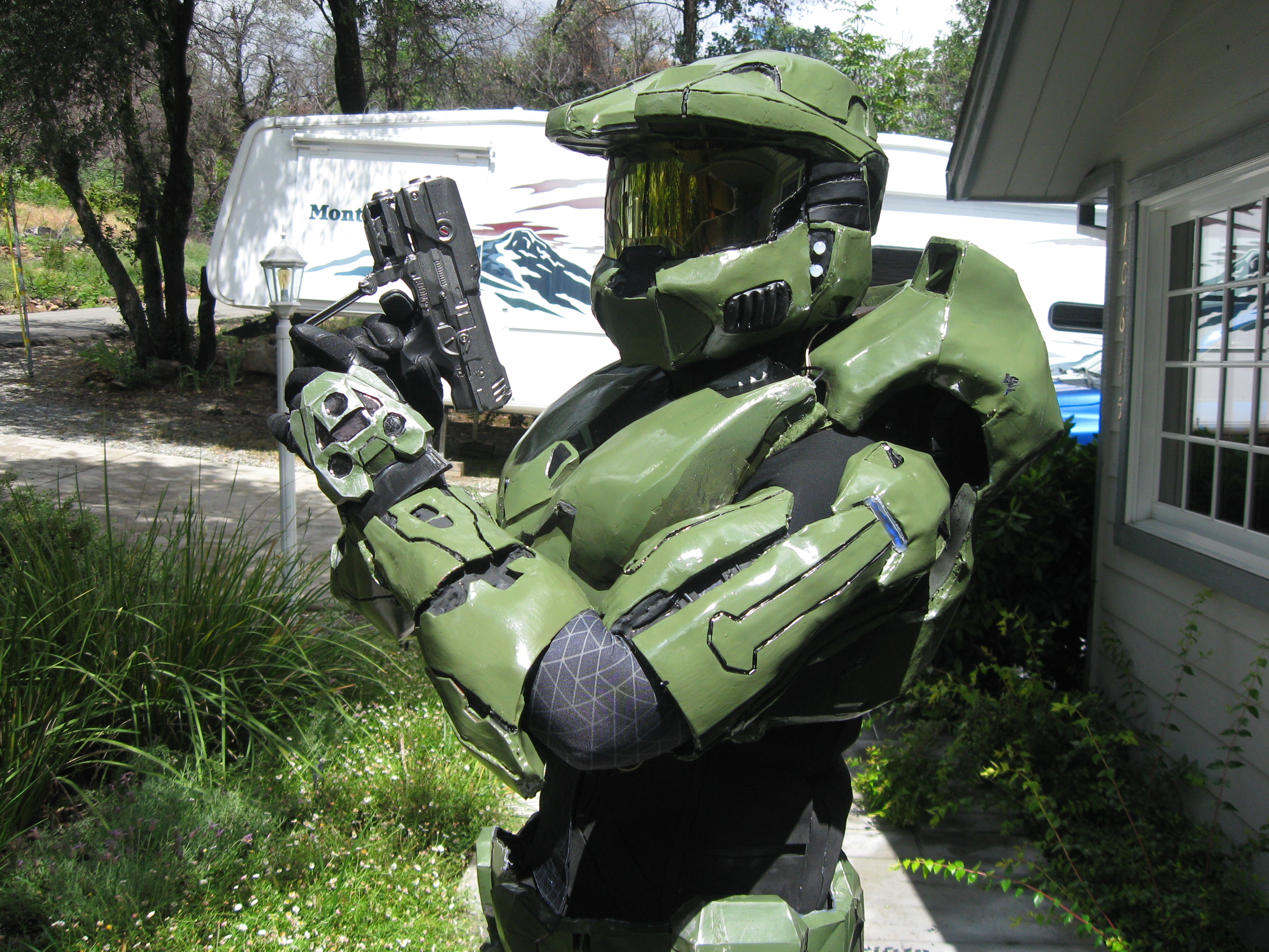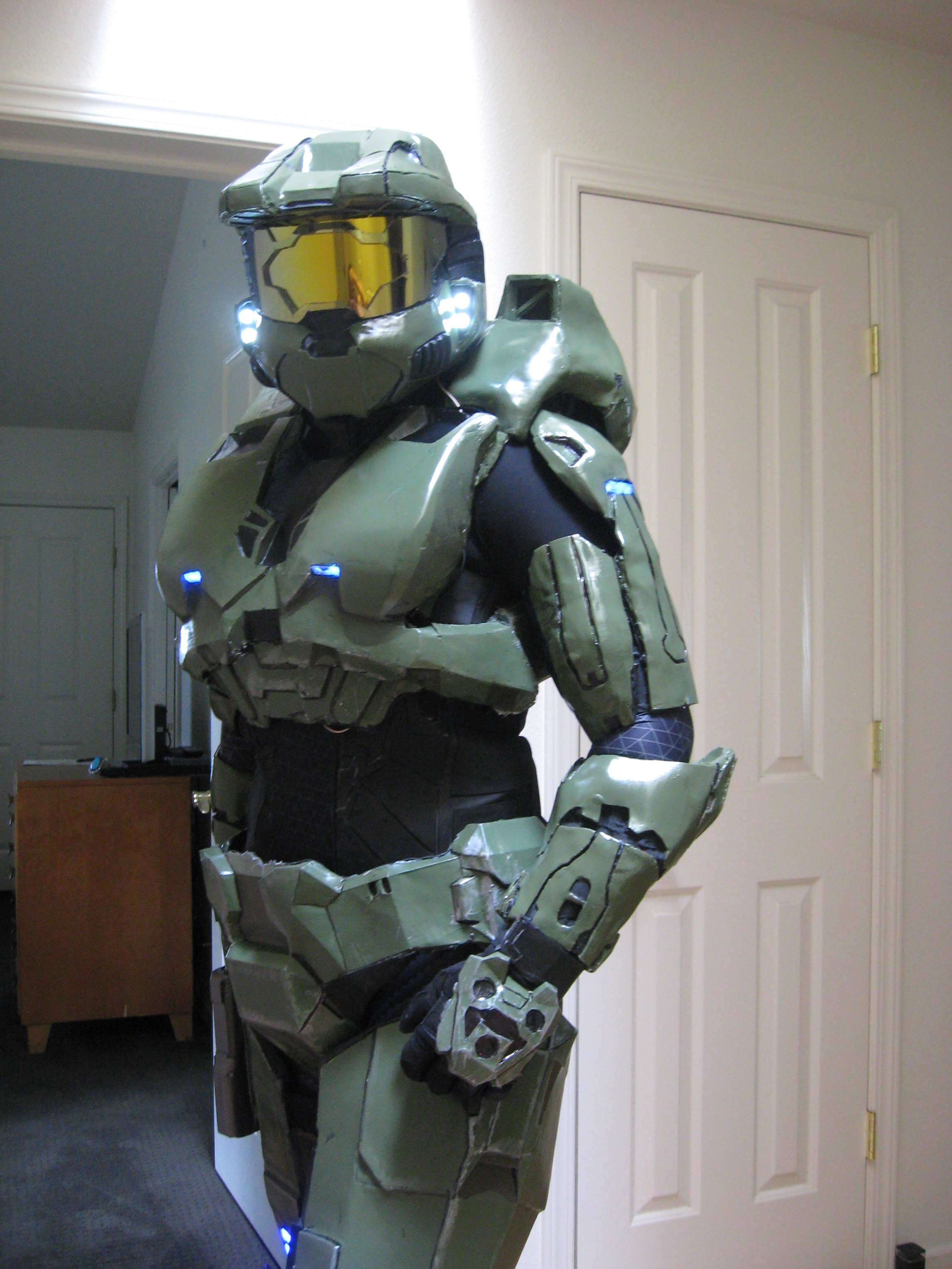 I have many places on the armor where it has been fractured, overflexed and piece of it are broken out due to overwear, or old repairs that I never got around to fixing properly. I will put in pics very soon but here is the first pic. The bicep piece had major damage to it but with the use of 1/2" thick foam over the areas that were gone and cracked through it will look like new before long.