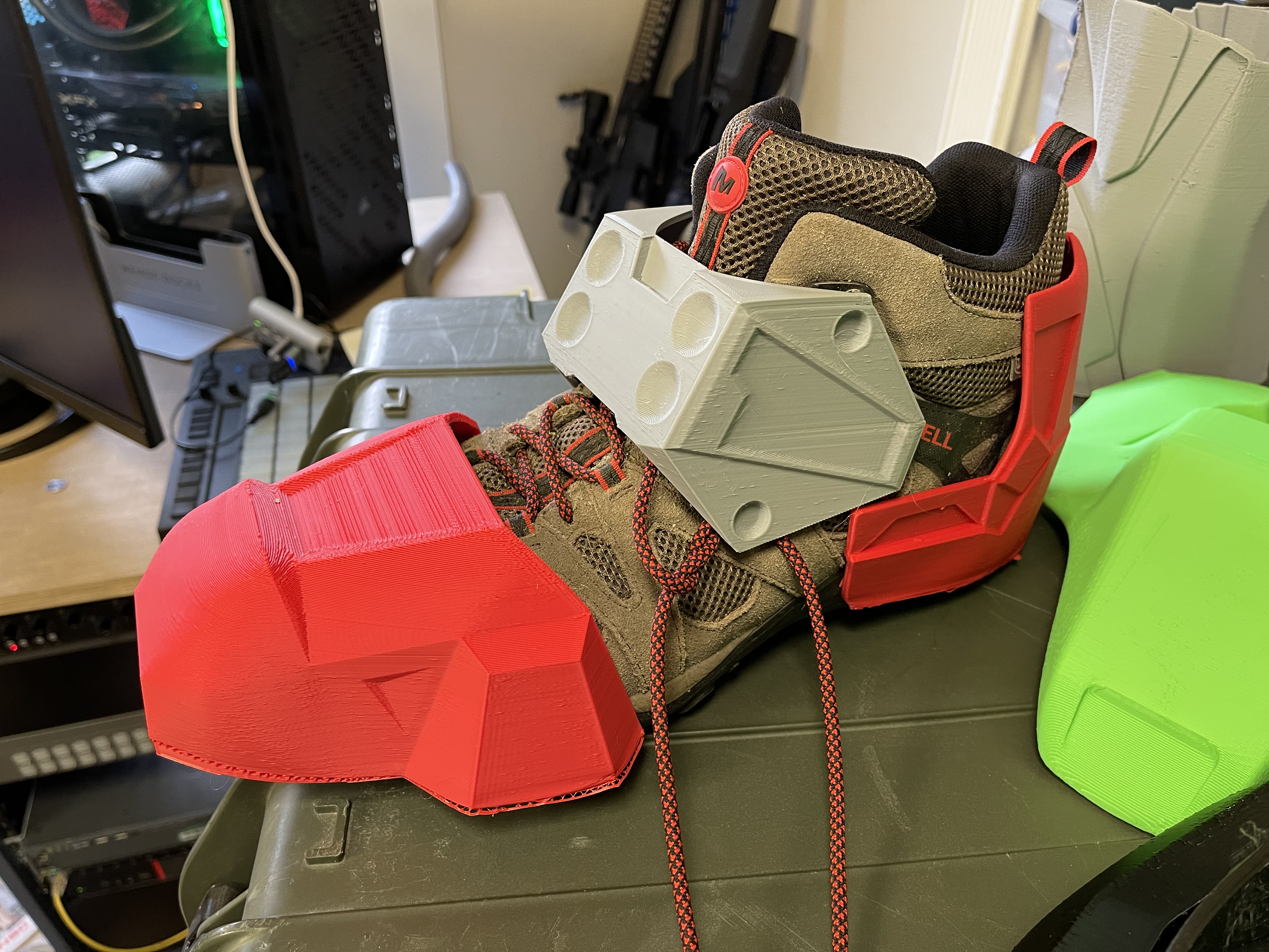 I started working on the boots yesterday. However, I have run into a small problem. The problem is that I have skis for feet. Here's what the files look like when I put them over my boot: