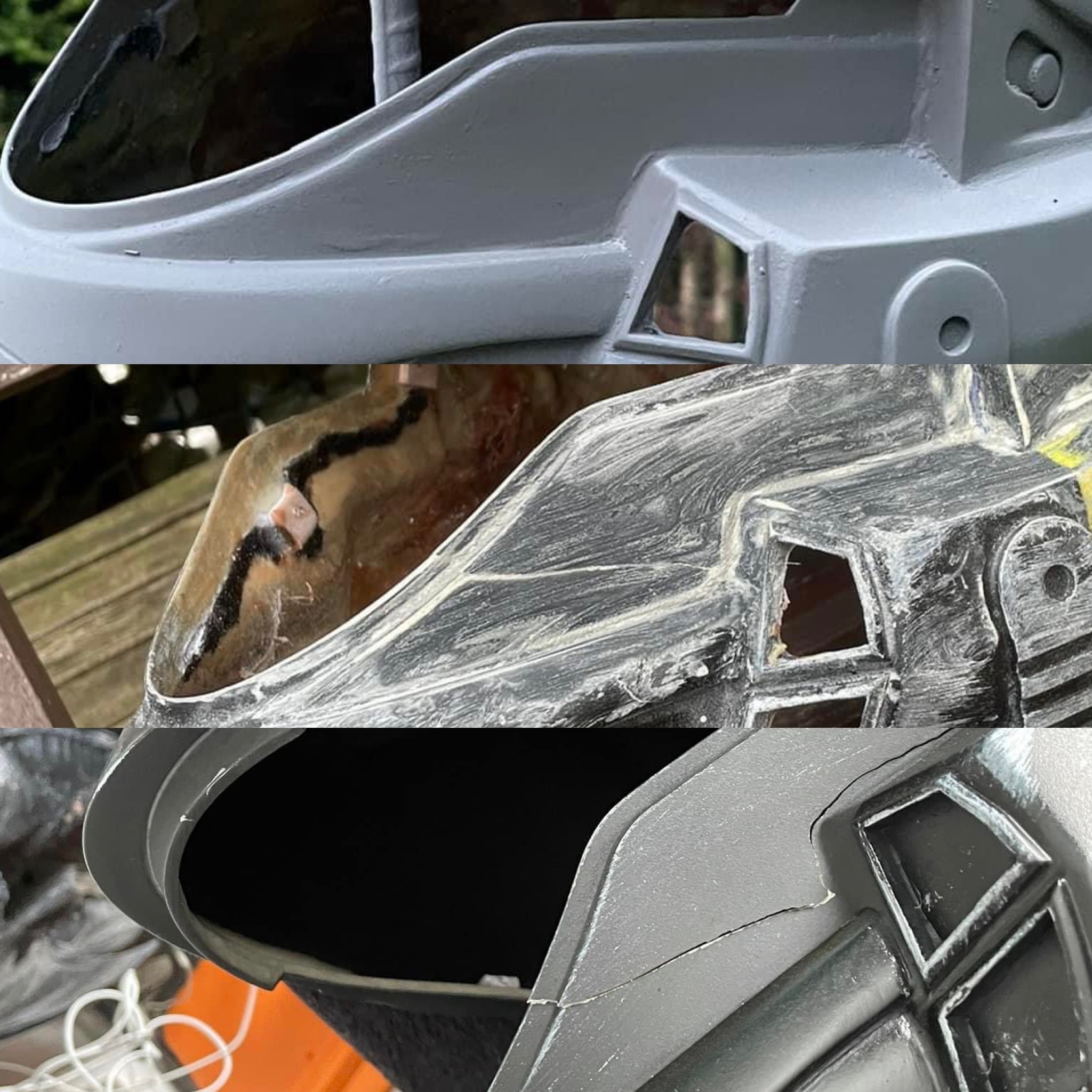 Everyone learns somewhere with prints. A great one to know is wet and dry sanding. You soak a piece of sandpaper, and go over a filler spot, then going over it with a dry piece. It’s a great way to get some really smooth bodywork. I’ve attached photos of a crack I had on my helmet, that I had to reinforce inside, then repeatedly fill and sand, using the technique to completely hide the crack. It goes bottom first, top last.