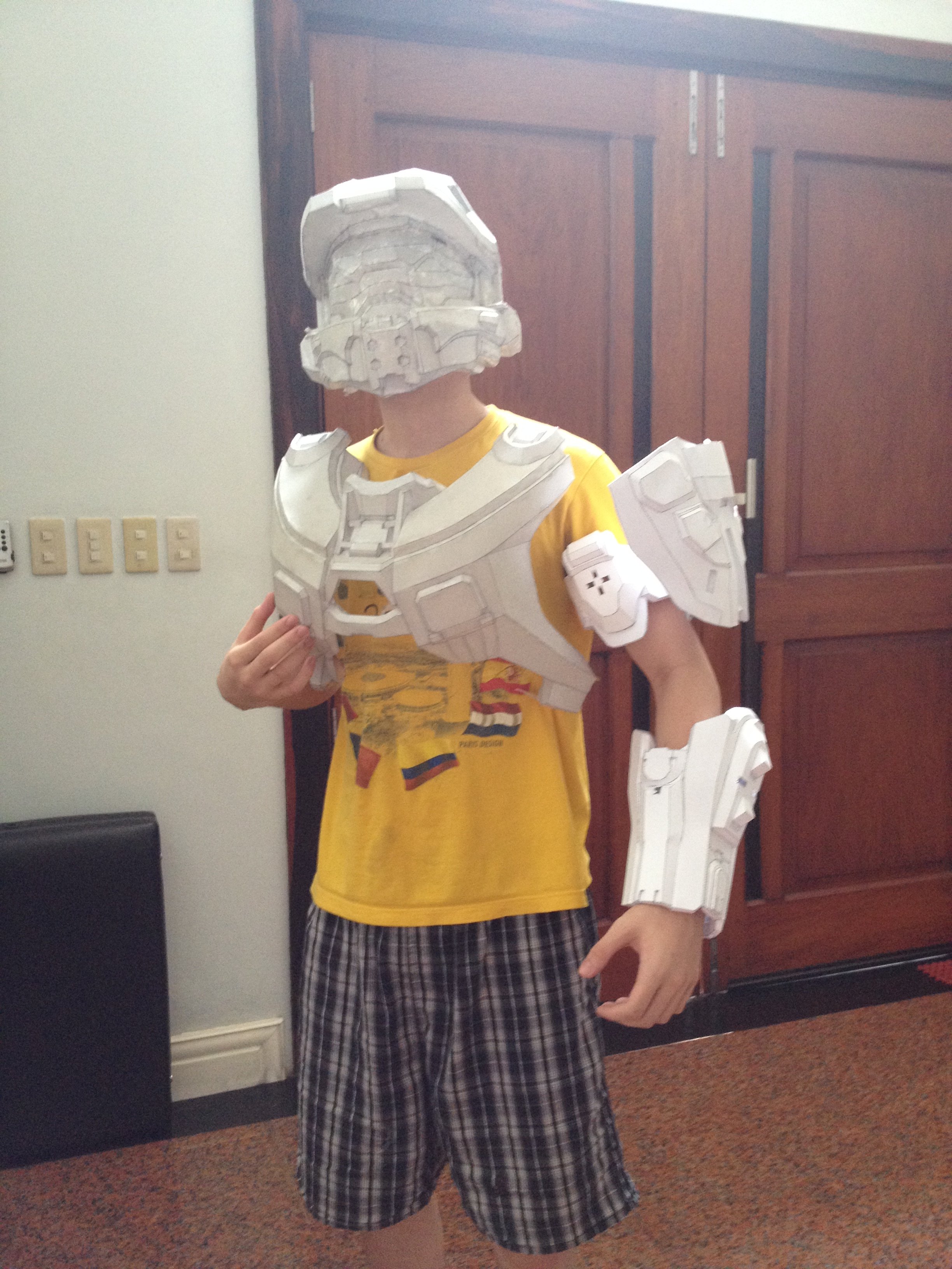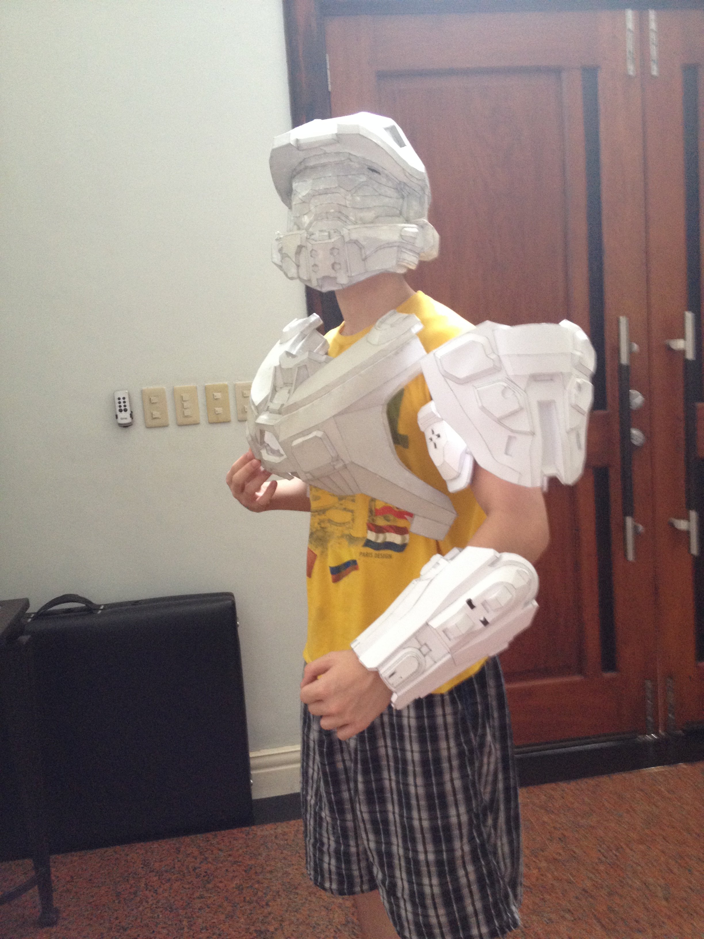 Right now I am starting with the helmet and using pepakura to build it. This is the file I have for the helmet. The link is here: Halo 4 - MJOLNIR GEN2 - Mark VI Master Chief Is this the one you used since on the back of the helmet chief has a circle with a line in it, but in the file it doesn't have the line only the circle, is that something you have to add on your own. PS what material did you use for the chest? Thanks, Haloshark