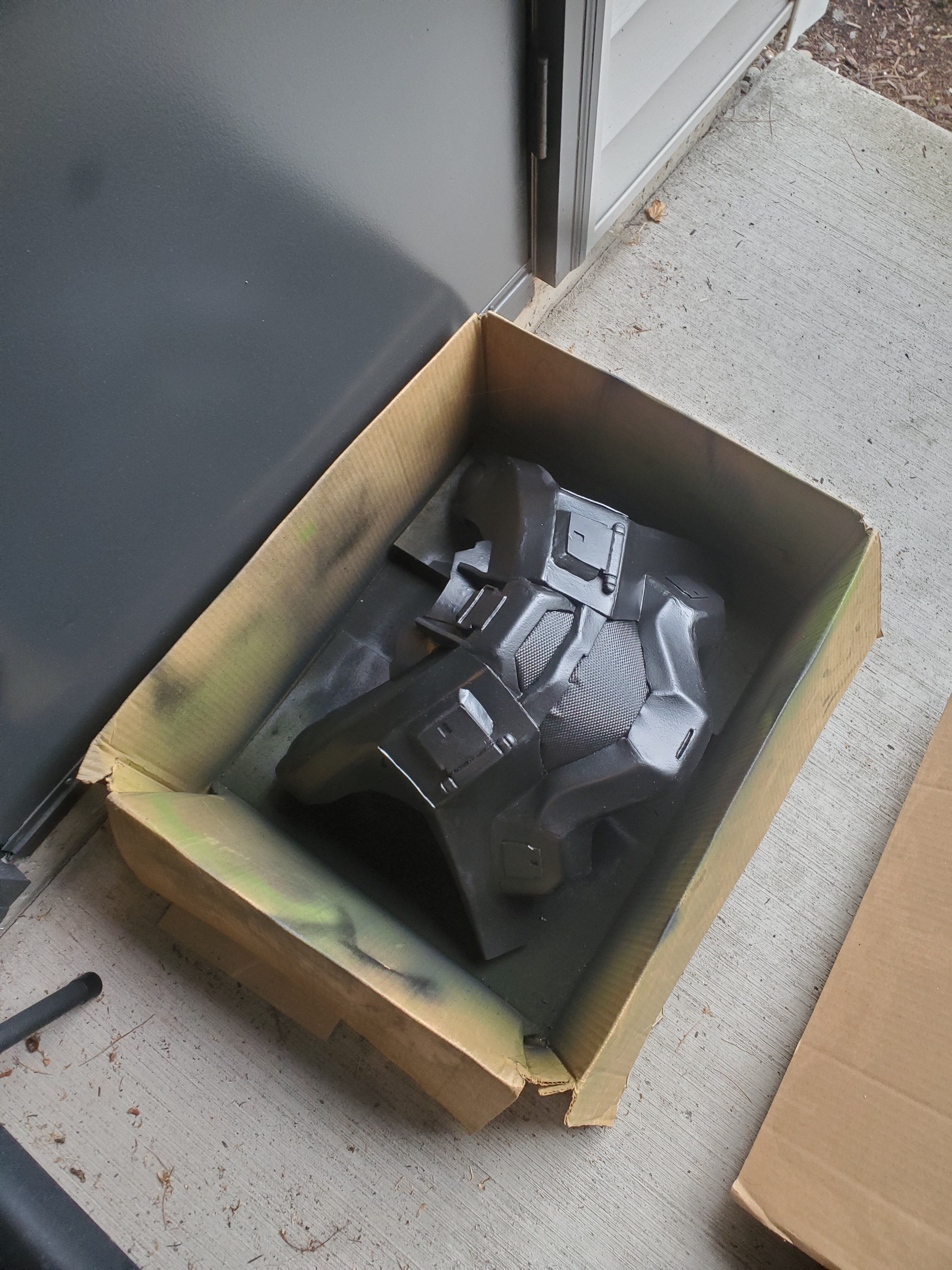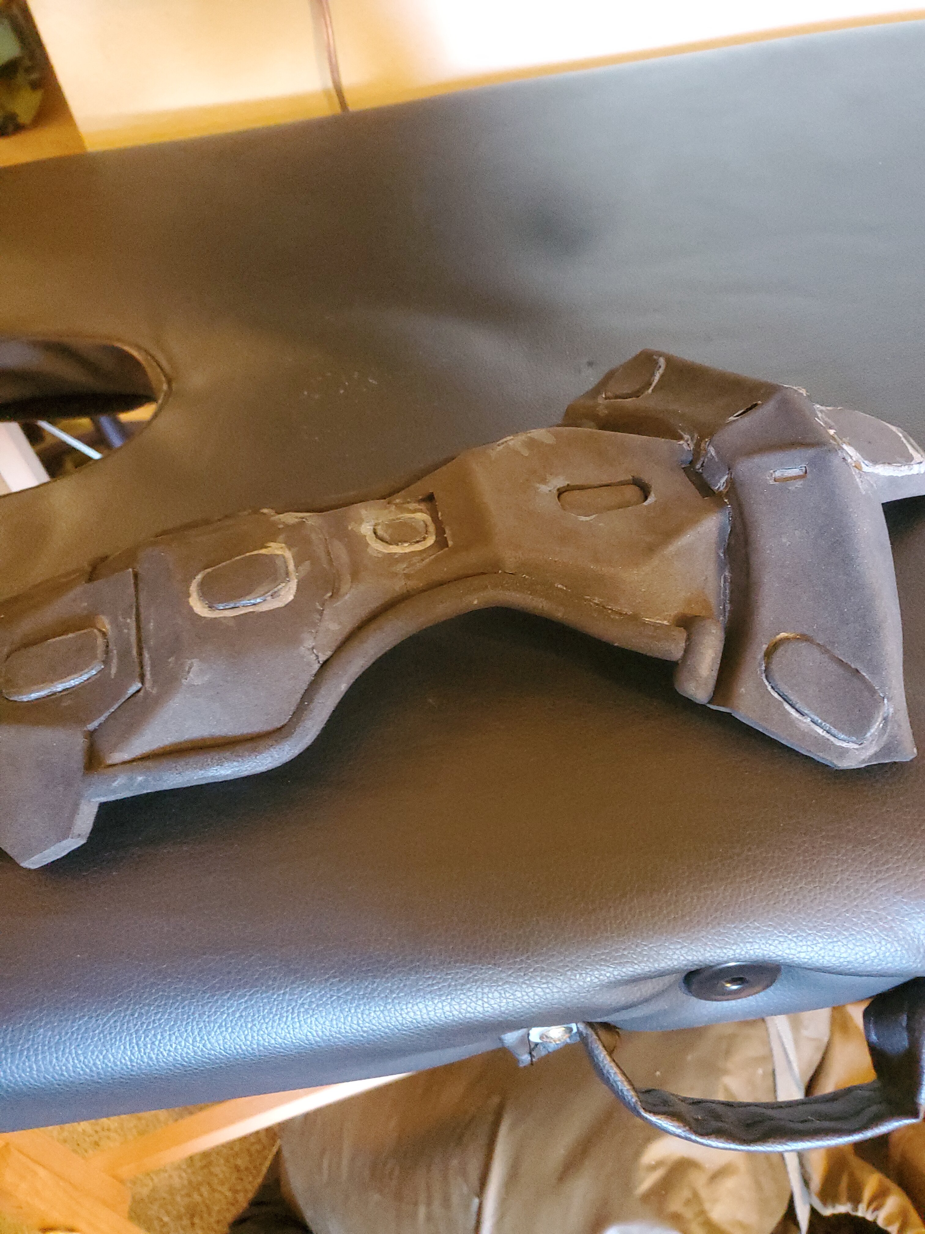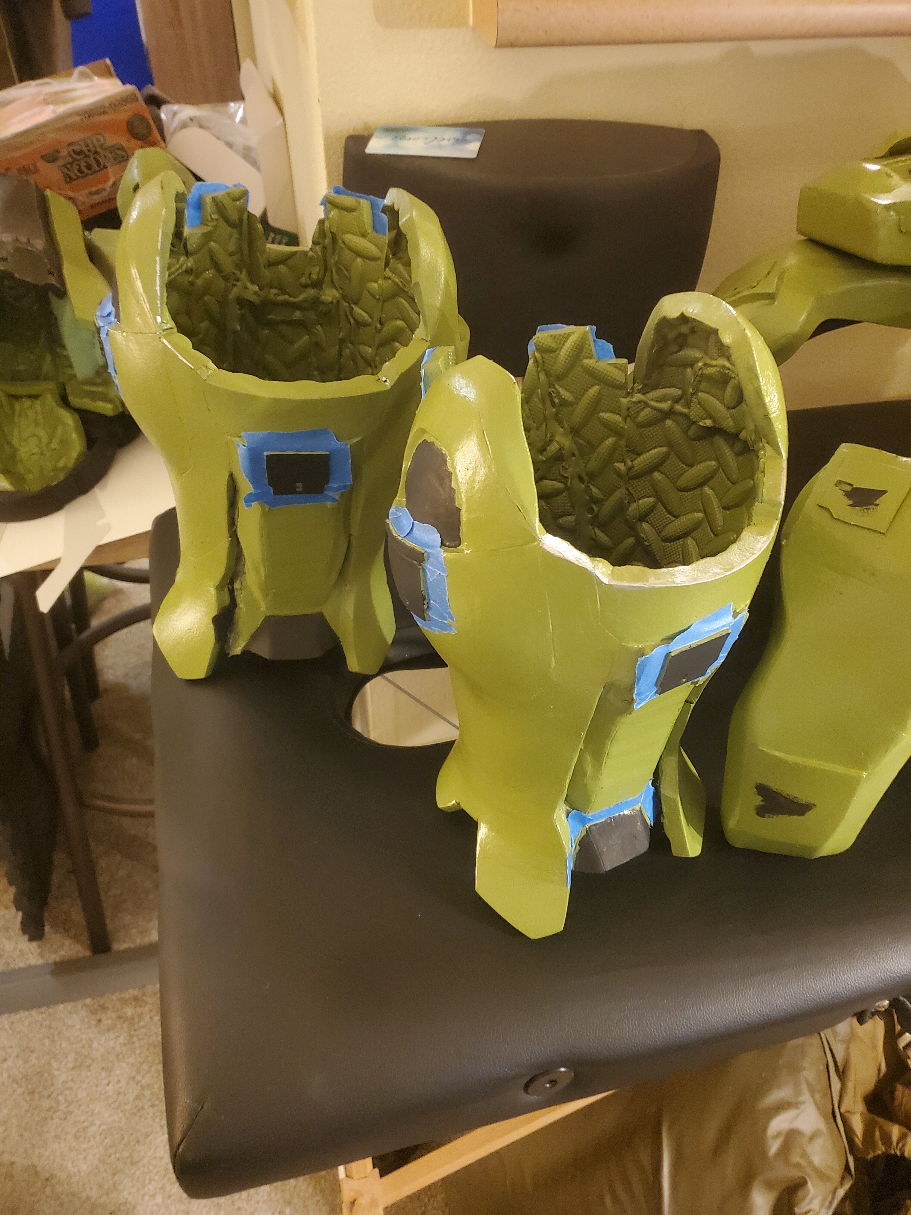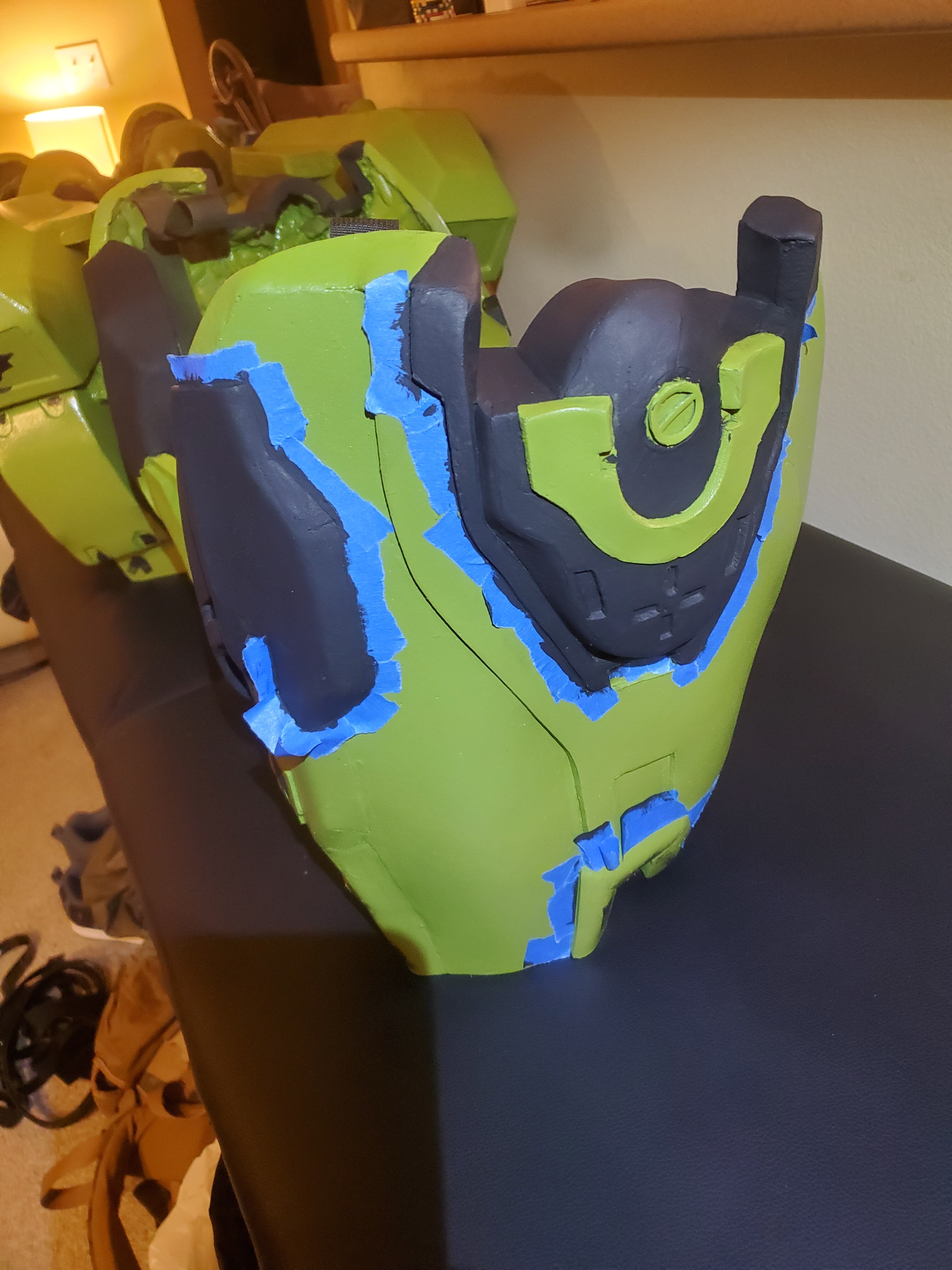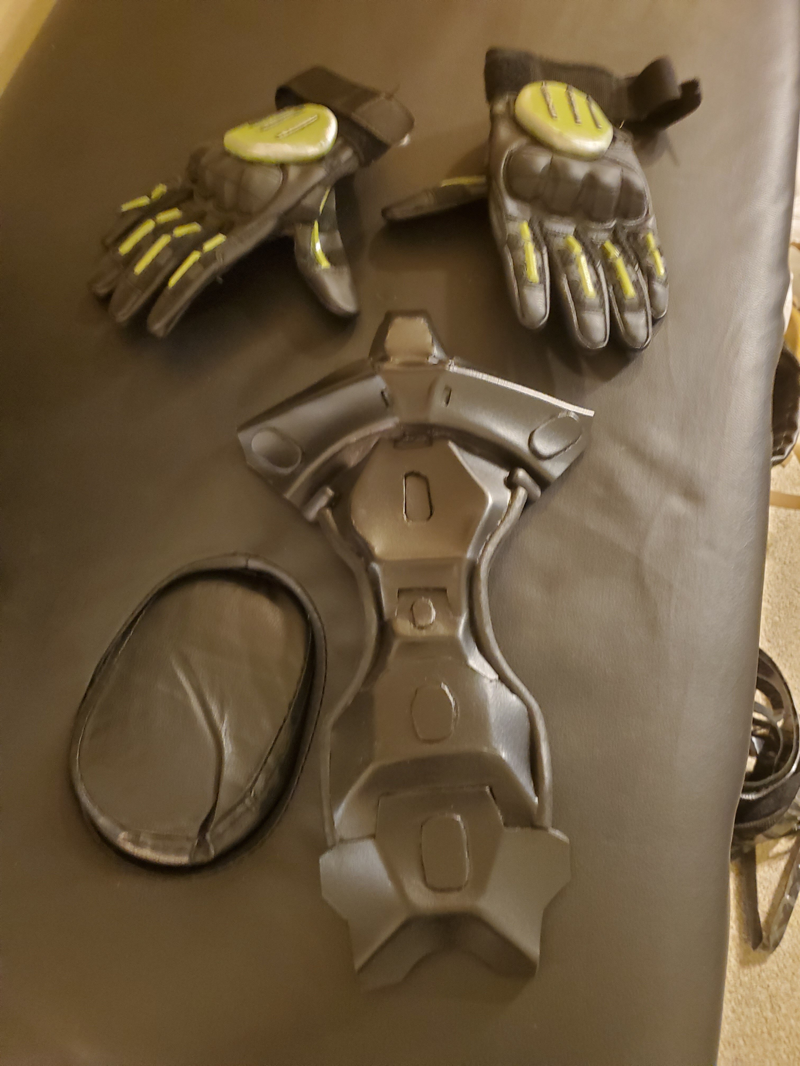Progress update: the build is coming along and I think I'll finish in time for Halloween with time to spare to try to get some electronics installed: helmet fans, voice amplifier, hearing amplifier, and maybe even some lighting. I was thinking of trying to add a setup with some lights on the armor that glowed a steady blue but when I press a button a speaker plays the shield break sound effect and then the shield recharge effect, with the blue light changing to a flashing red light and back to blue when the sheilds recharge. I found some kits for the sound effects but am unsure how to get the led lights to sync with the sound effect, so we will see.