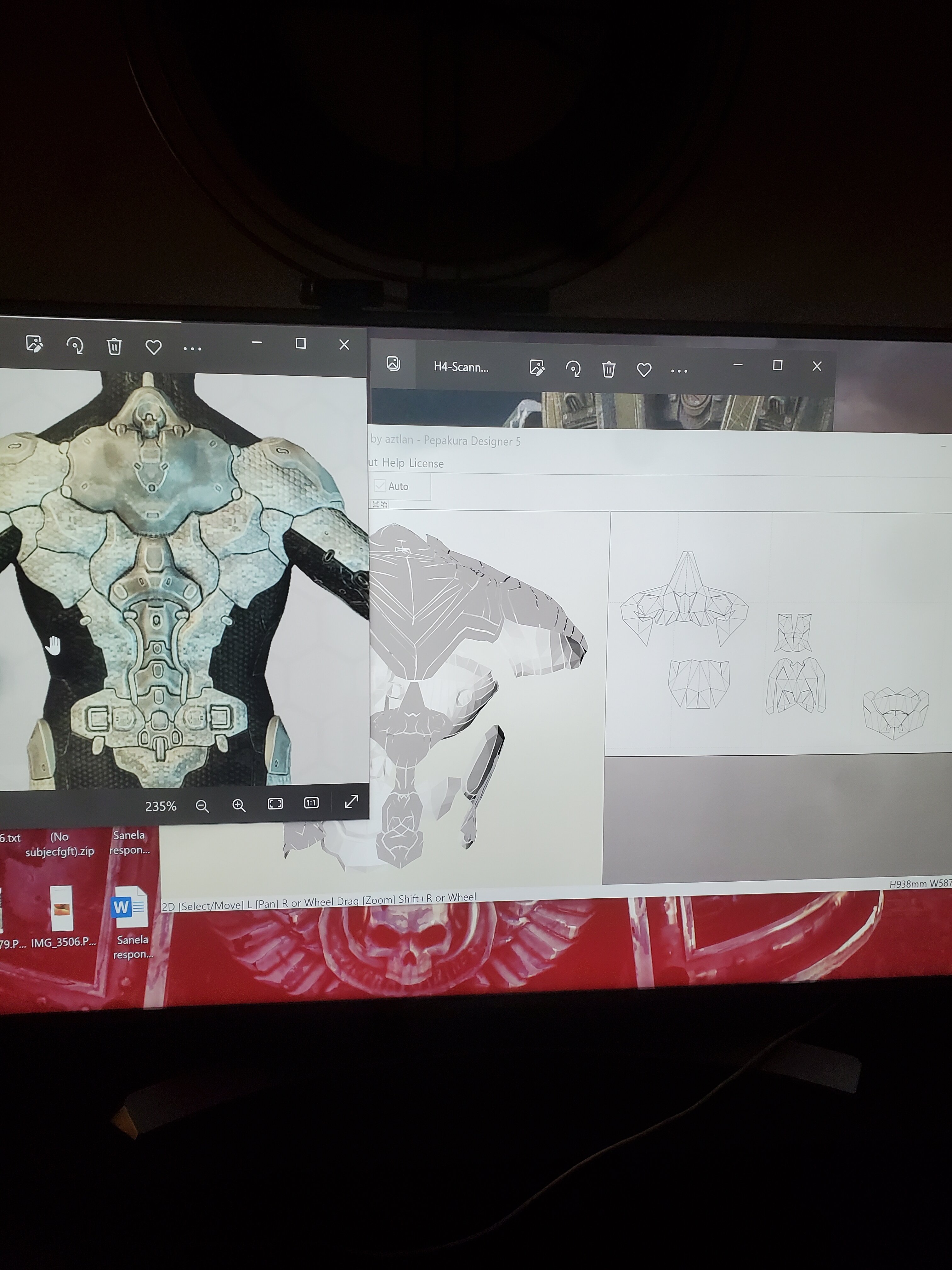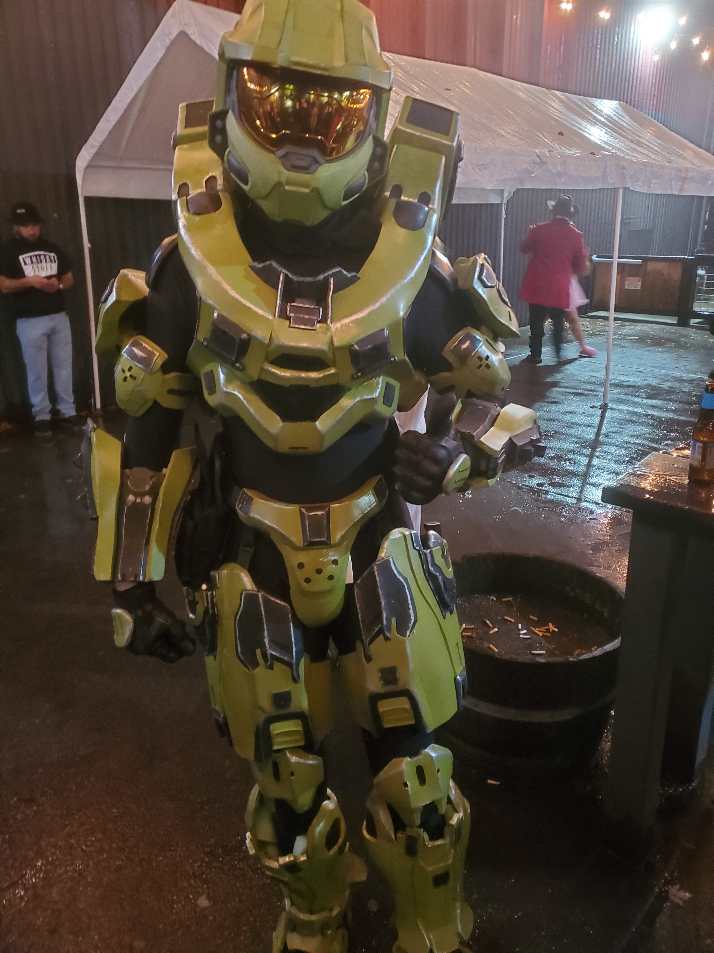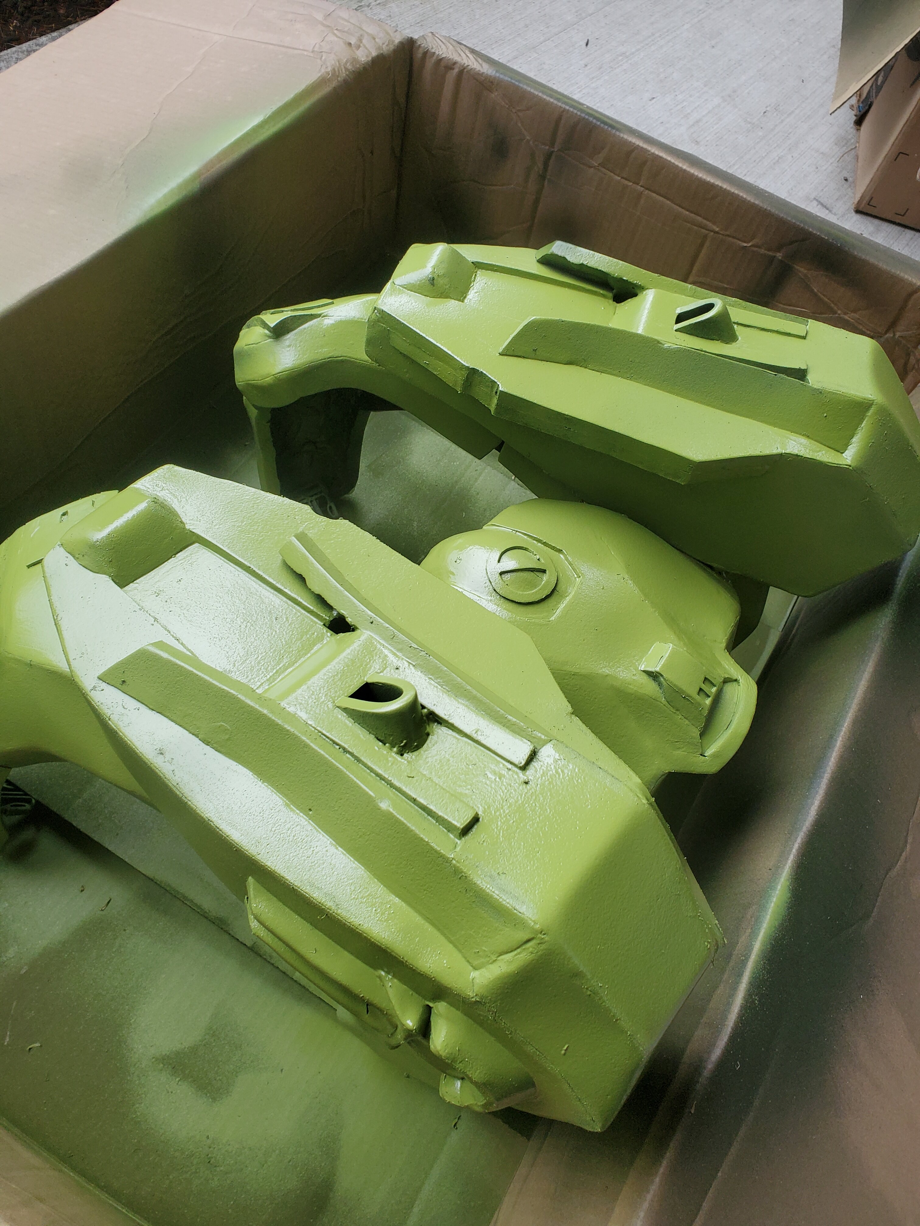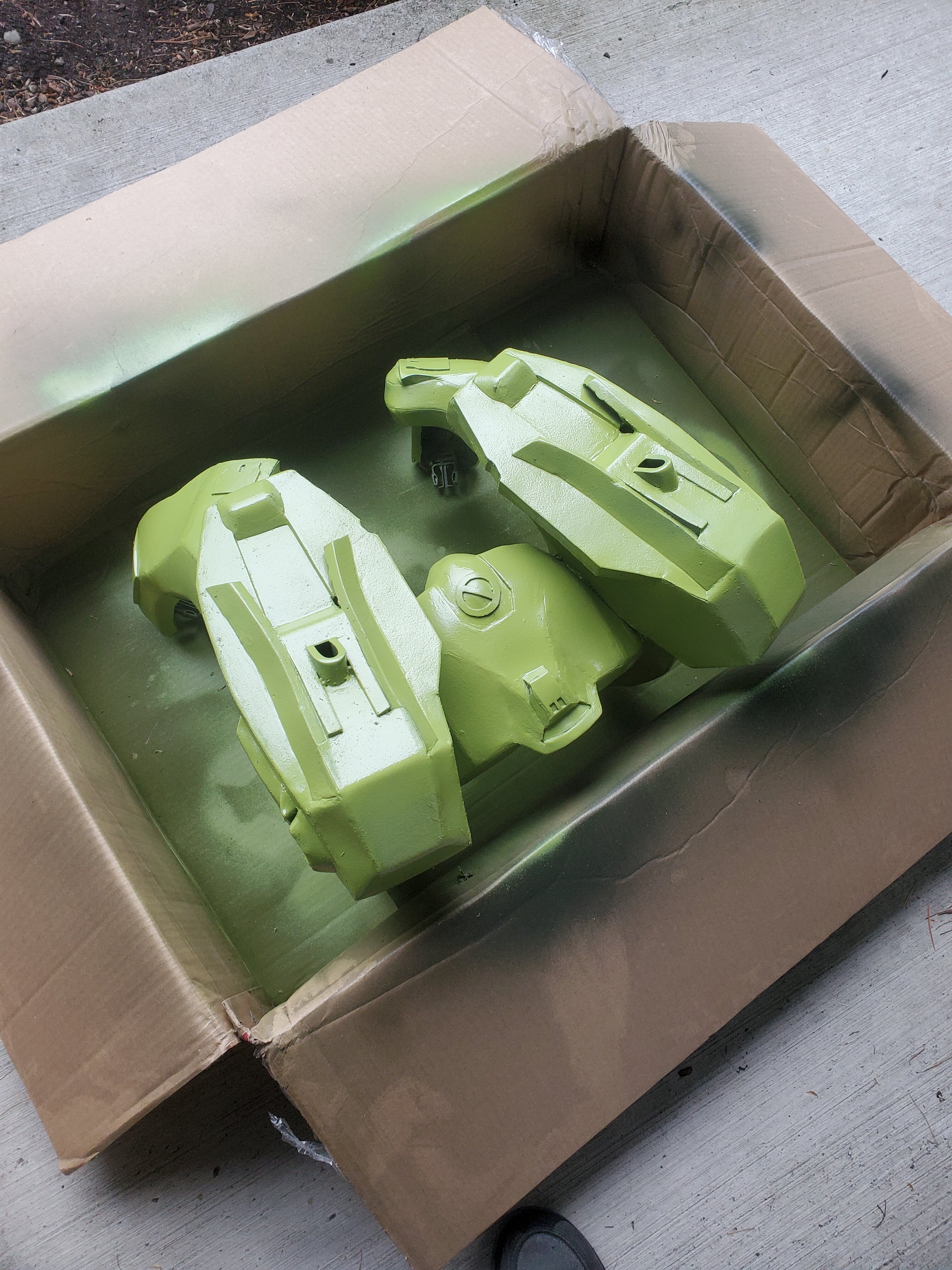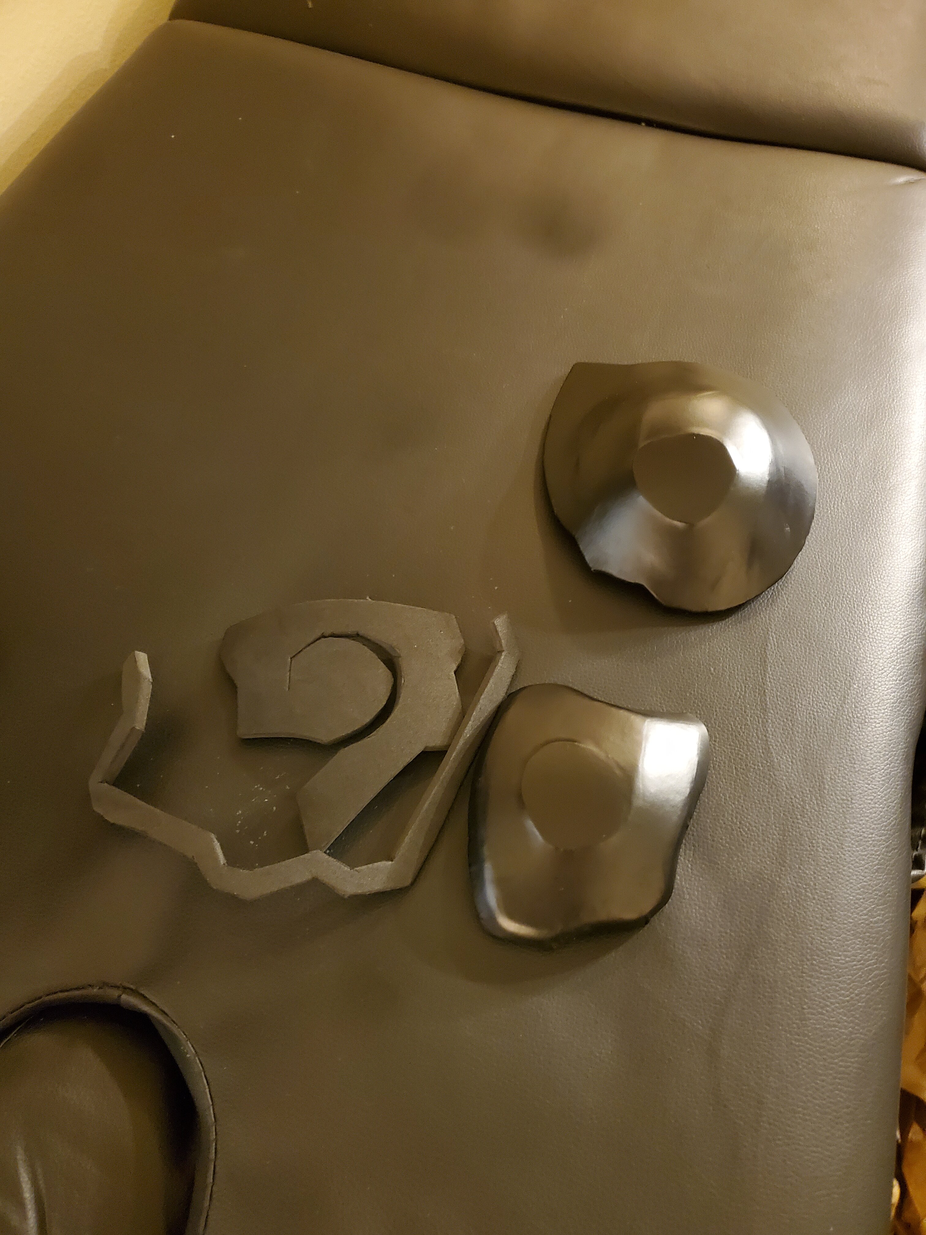 Progress update: the build is coming along and I think I'll finish in time for Halloween with time to spare to try to get some electronics installed: helmet fans, voice amplifier, hearing amplifier, and maybe even some lighting. I was thinking of trying to add a setup with some lights on the armor that glowed a steady blue but when I press a button a speaker plays the shield break sound effect and then the shield recharge effect, with the blue light changing to a flashing red light and back to blue when the sheilds recharge. I found some kits for the sound effects but am unsure how to get the led lights to sync with the sound effect, so we will see.