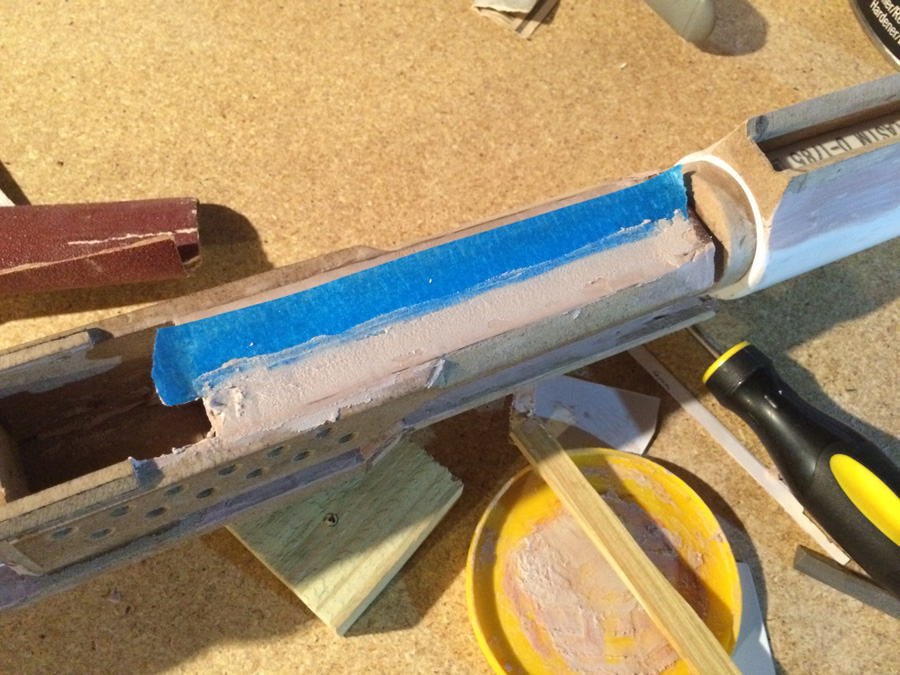 Near the beginning of the final round of filling and sanding.