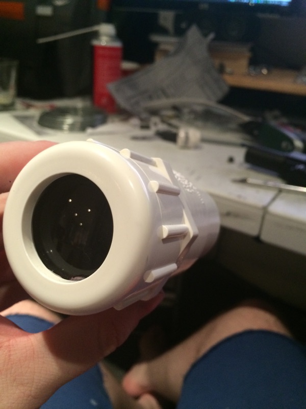 To emulate the actual scope barrel, I used some plumbing parts, with a sanded-down sunglasses lens from The Reject Shop: