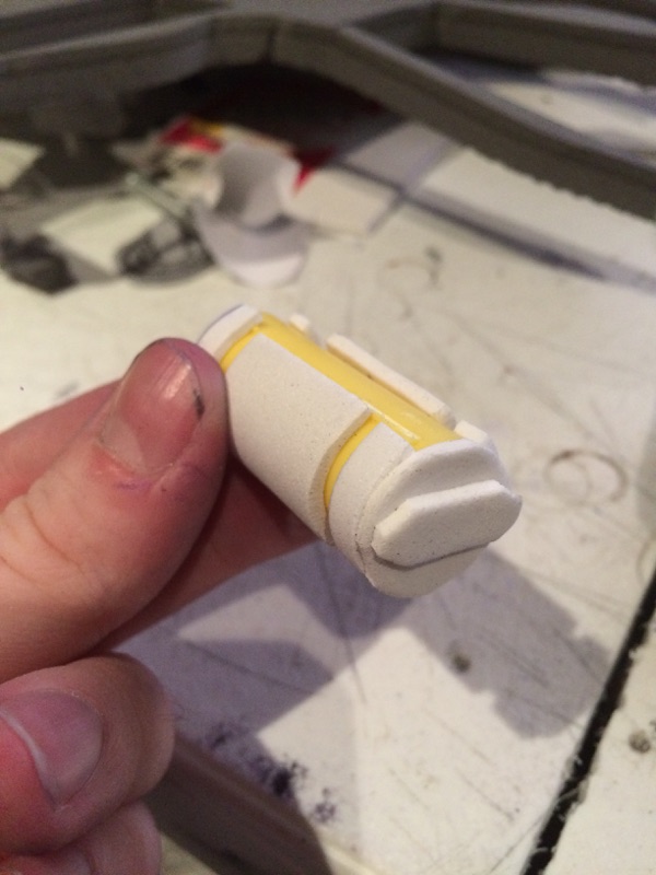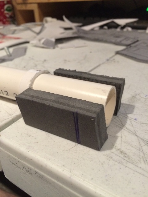 I also used some foam offcuts to make a surround for the connecting sleeve, and sculpted that to fit.