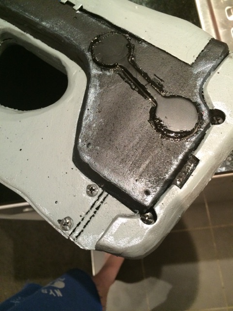I cut a recess to match the latch in the body, and covered the back of the recess with aluminium foil tape, so the action could slide smoothly and easily.