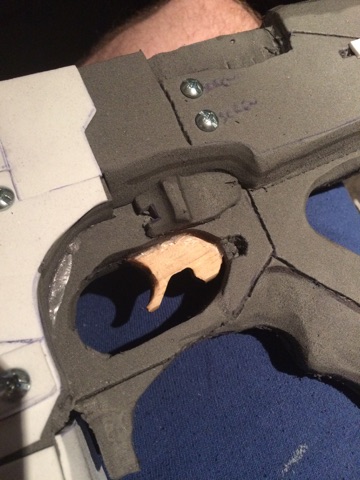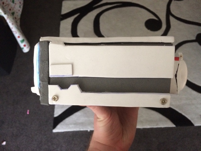 I also decided not to put an ejection port in until I got a prop round to put in the gap - give some up-close realism to the rifle. I later decided this wasn't a good idea, as this may have made the prop more difficult to take into cons. It's still an idea, but one I probably won't go into.