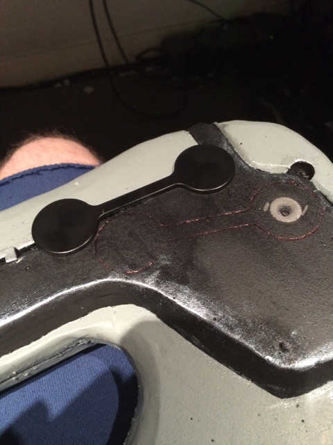 As per my previous build log, I mount my DMR to my back using a Jacket Bracket, a magnet mount used for attaching equipment to clothing. I have two high-strength magnets in my shoulder, and a metal plate on the DMR, which I use to attach it with one arm.