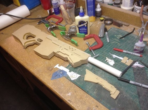 If I could be even half as good as this guy, I would be able to make an AWESOME prop. This guide became my reference for two things: what layers to do (as MDF layers similar to foam), and how the in-game look could translate to real life.