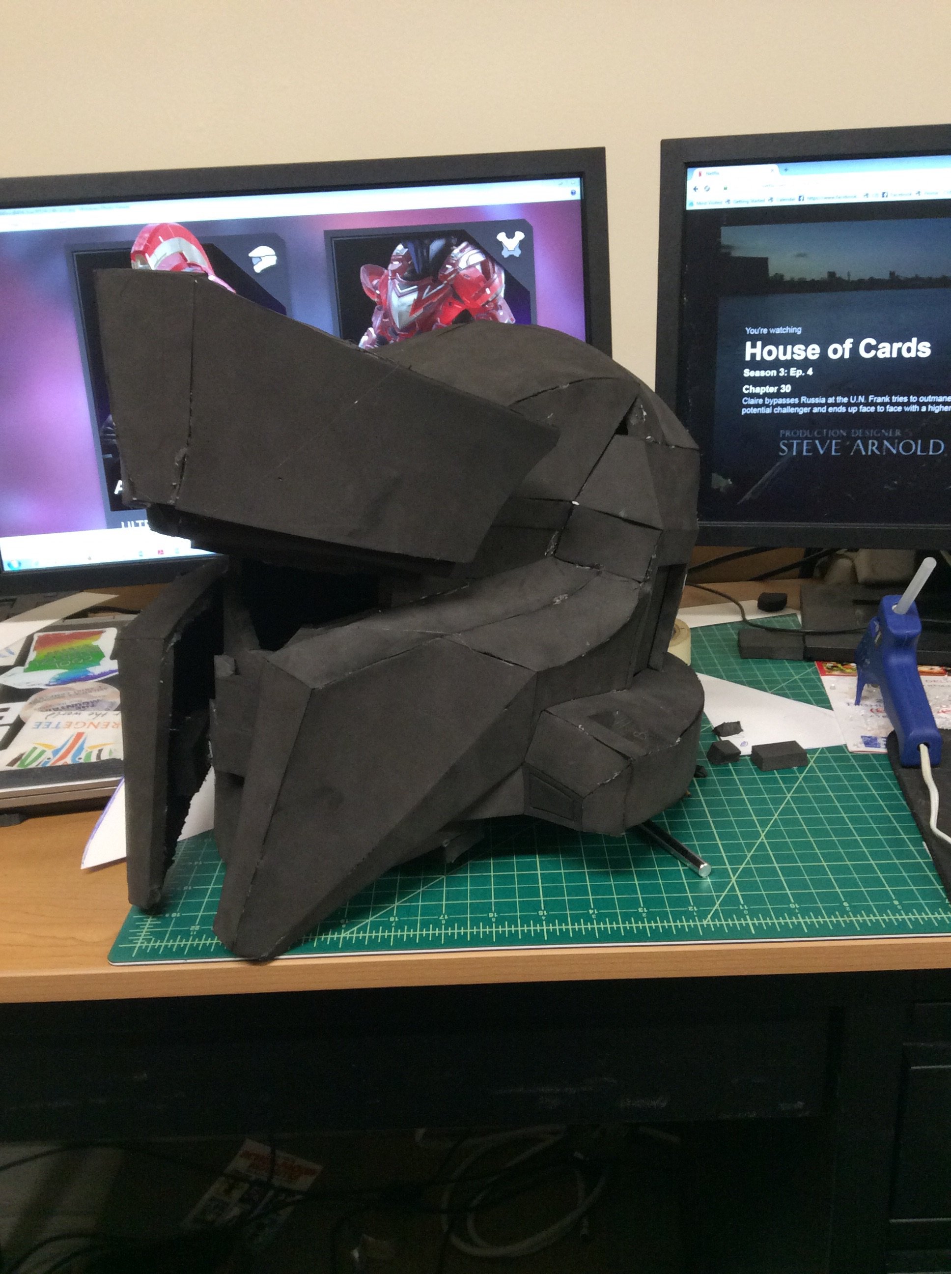 So after seeing the Achilles helmet in Halo 5 I decided I really wanted to make it. I've worked with foam a little bit (trying to make a warhammer suit) but this is my first build from scratch. It was particularly intimidating because there are so few reference images. It's note done yet but I'm very happy with it so far.