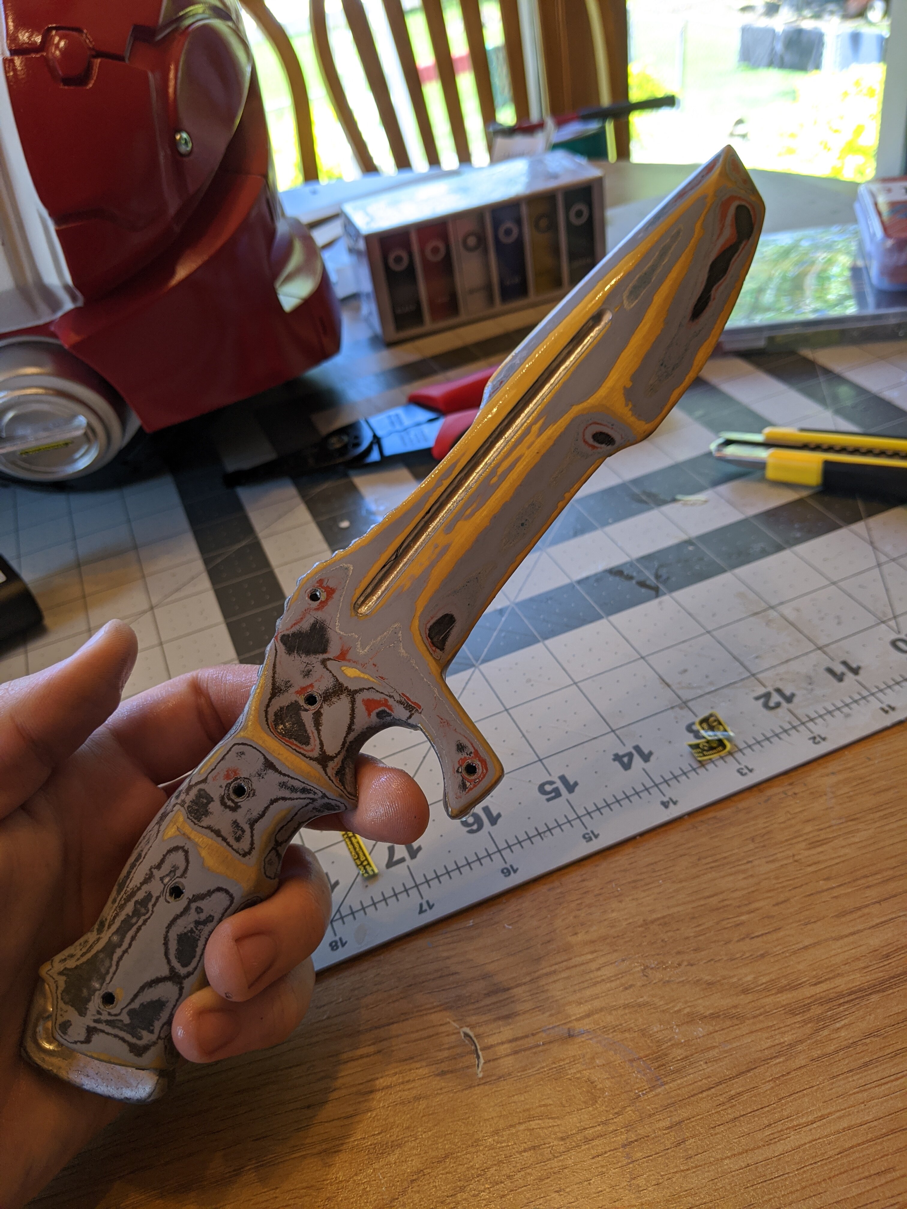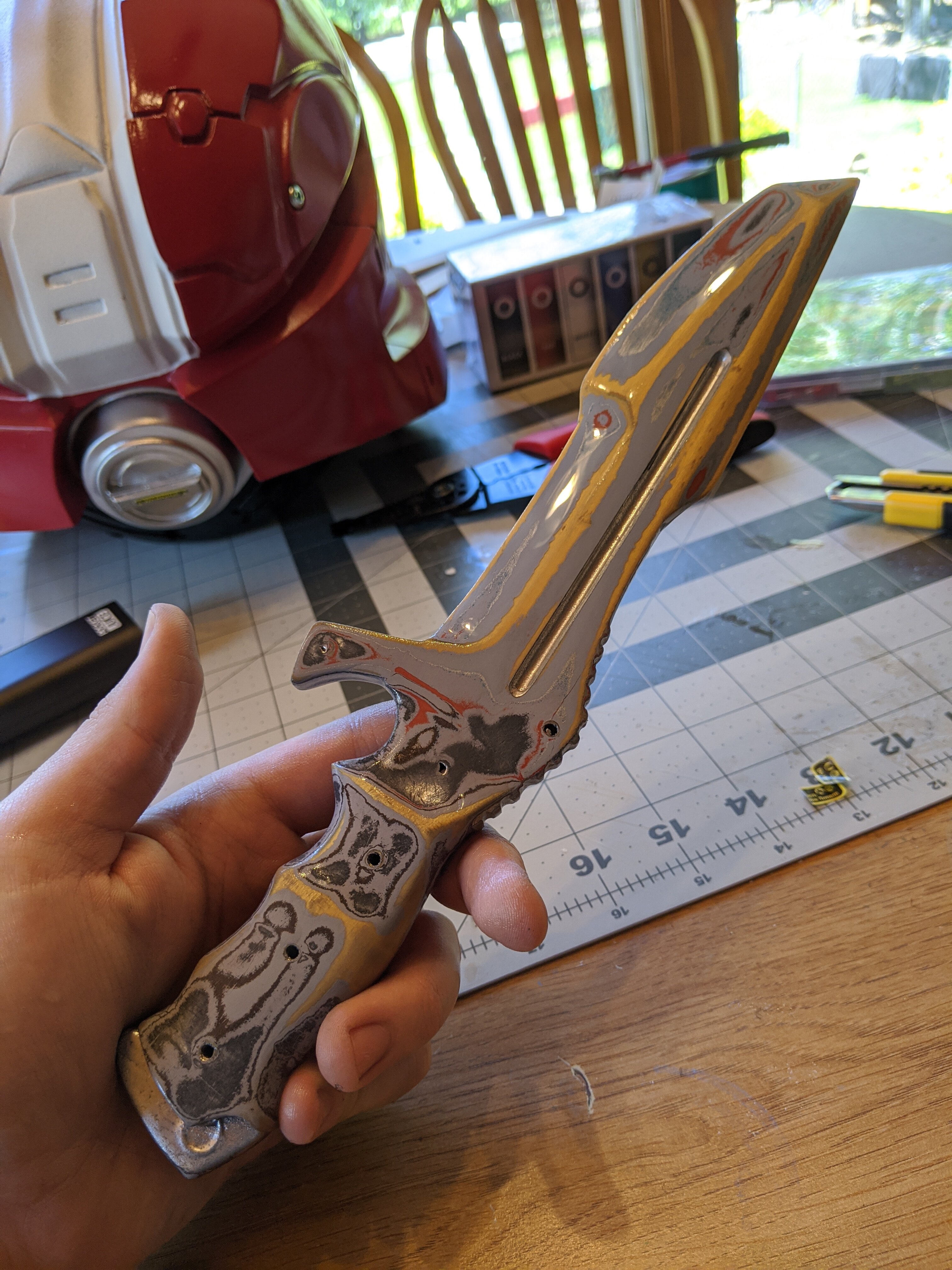 This is just a quick little project that I was working on before. This is a 3d printed knife from Halo 4/5, but I wasn't satisfied with the result, so I decided to touch it up and repaint it. I thought it looked cool like this so I figured I'd post about it. I'll post the final product here once it's finished again.