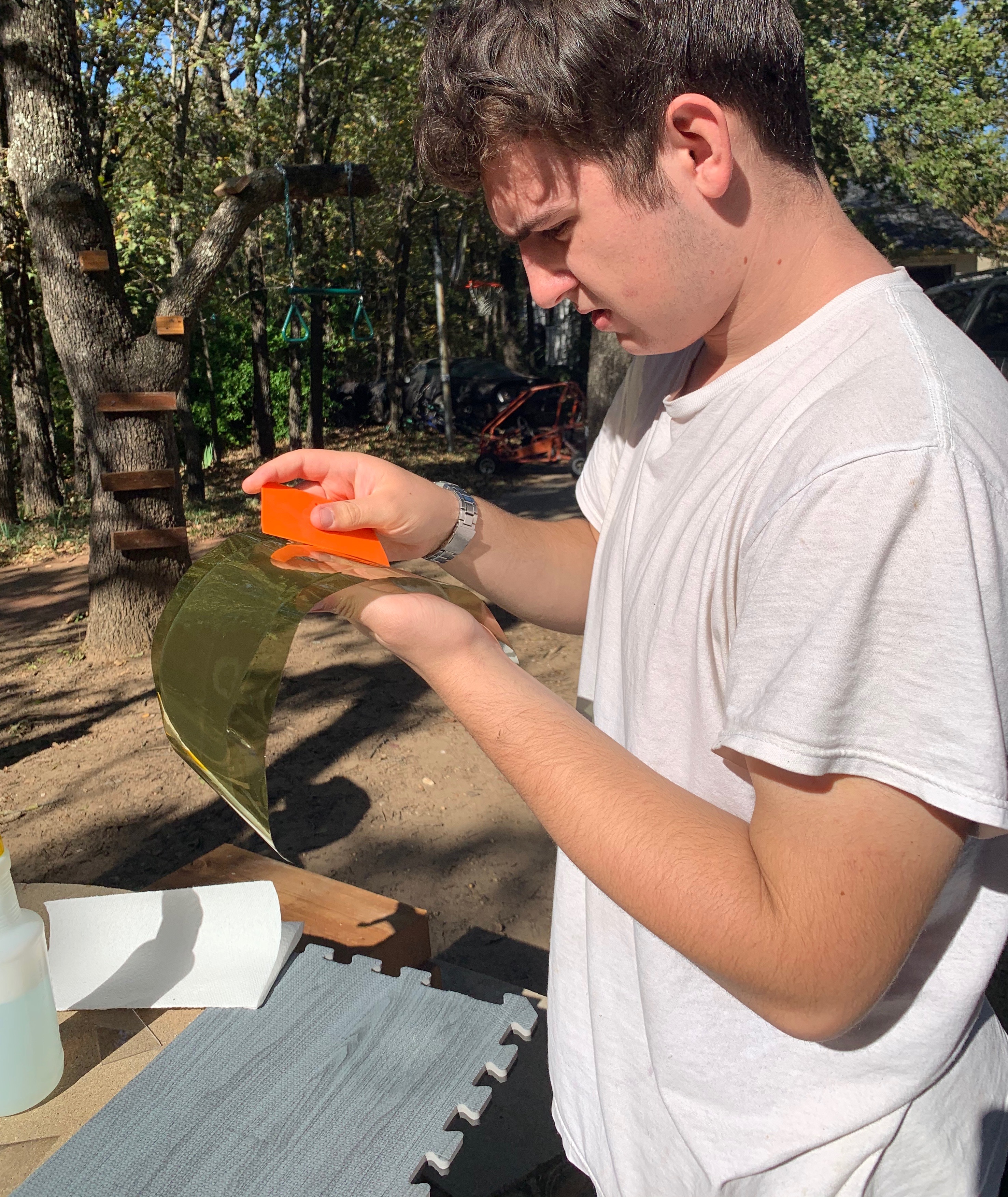 After that part was done, it was on to window tinting. I was able to make a good base layer for the visor with the plexiglass glass. It took a couple tries, but I got the hang of it.