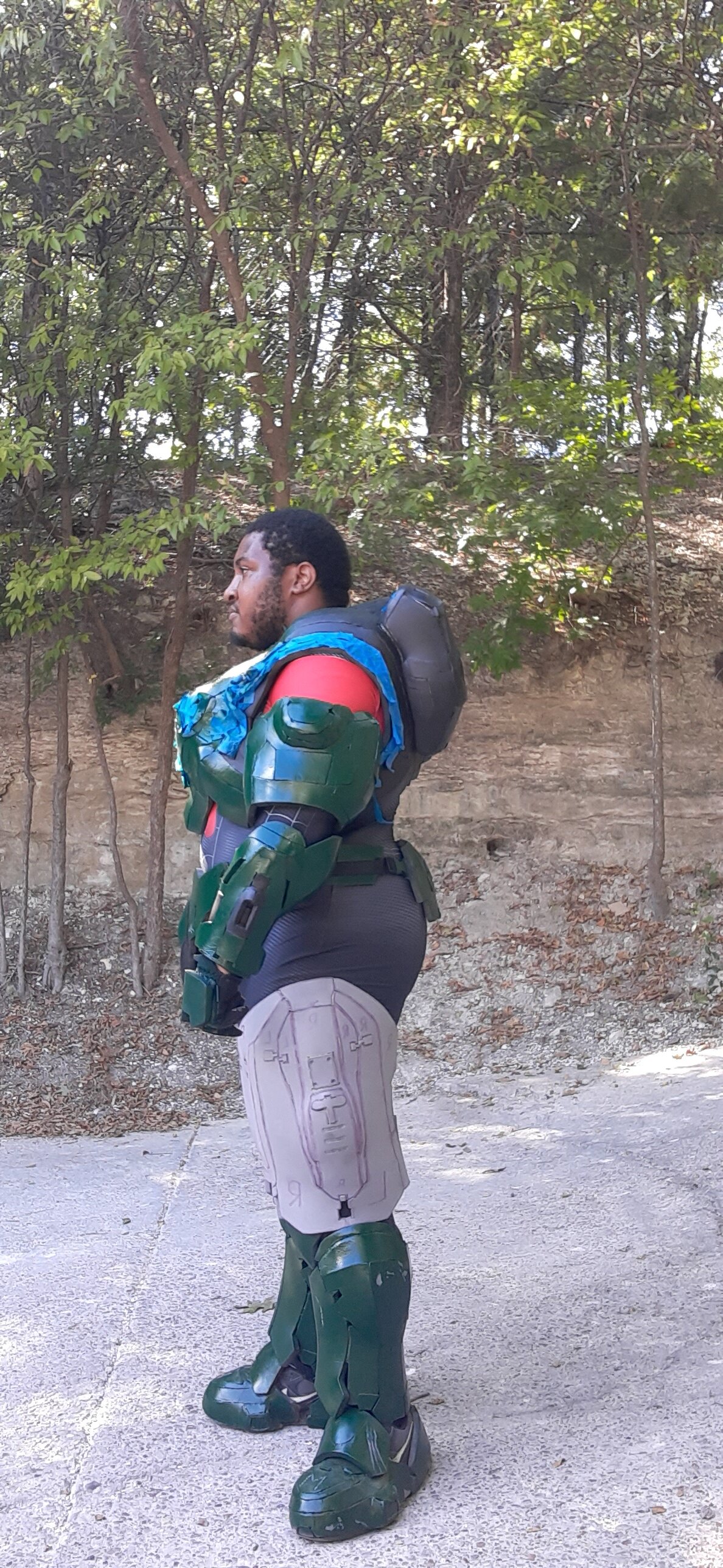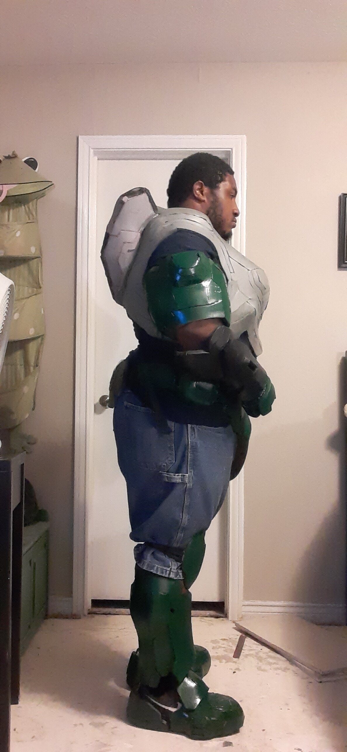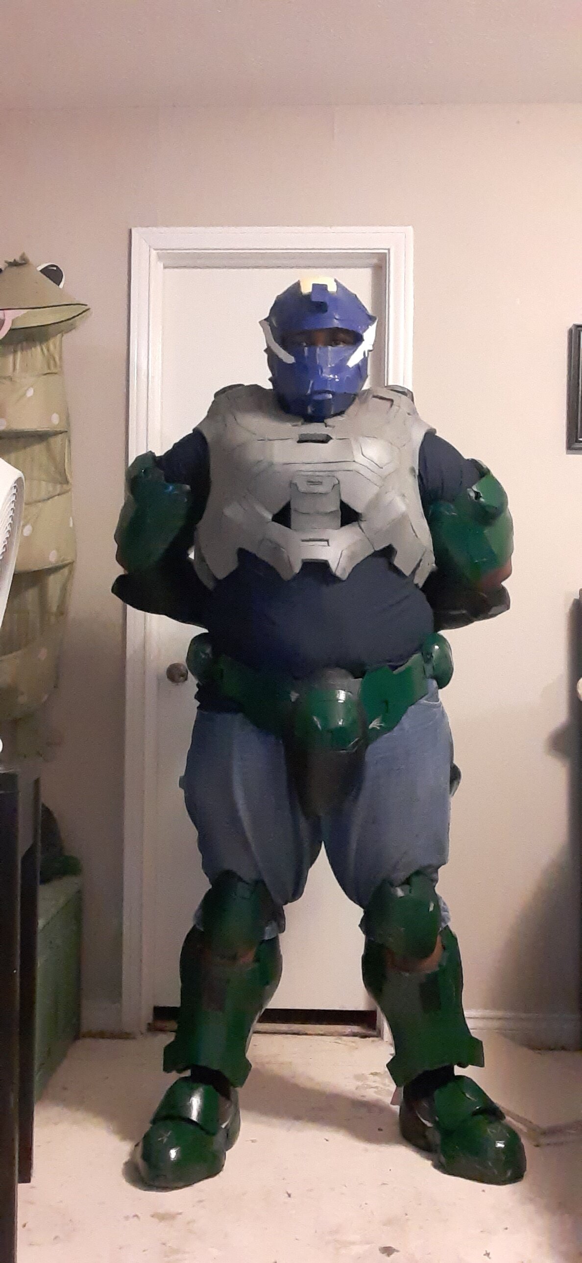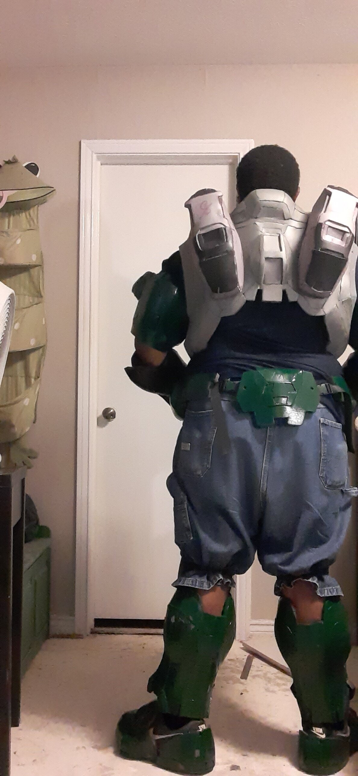 Your work is looking really good broBoy was it hot. I had to take quick pics of this suit with once again my mile Morales spiderman undersuit then the different views of said suit before I paint it. P.s. ignore the last one, I couldn't zip it up due to being short lol #testfit #suitup #haloinfinite #mk7 #spiderman #undersuit #evafoam #bigbuild