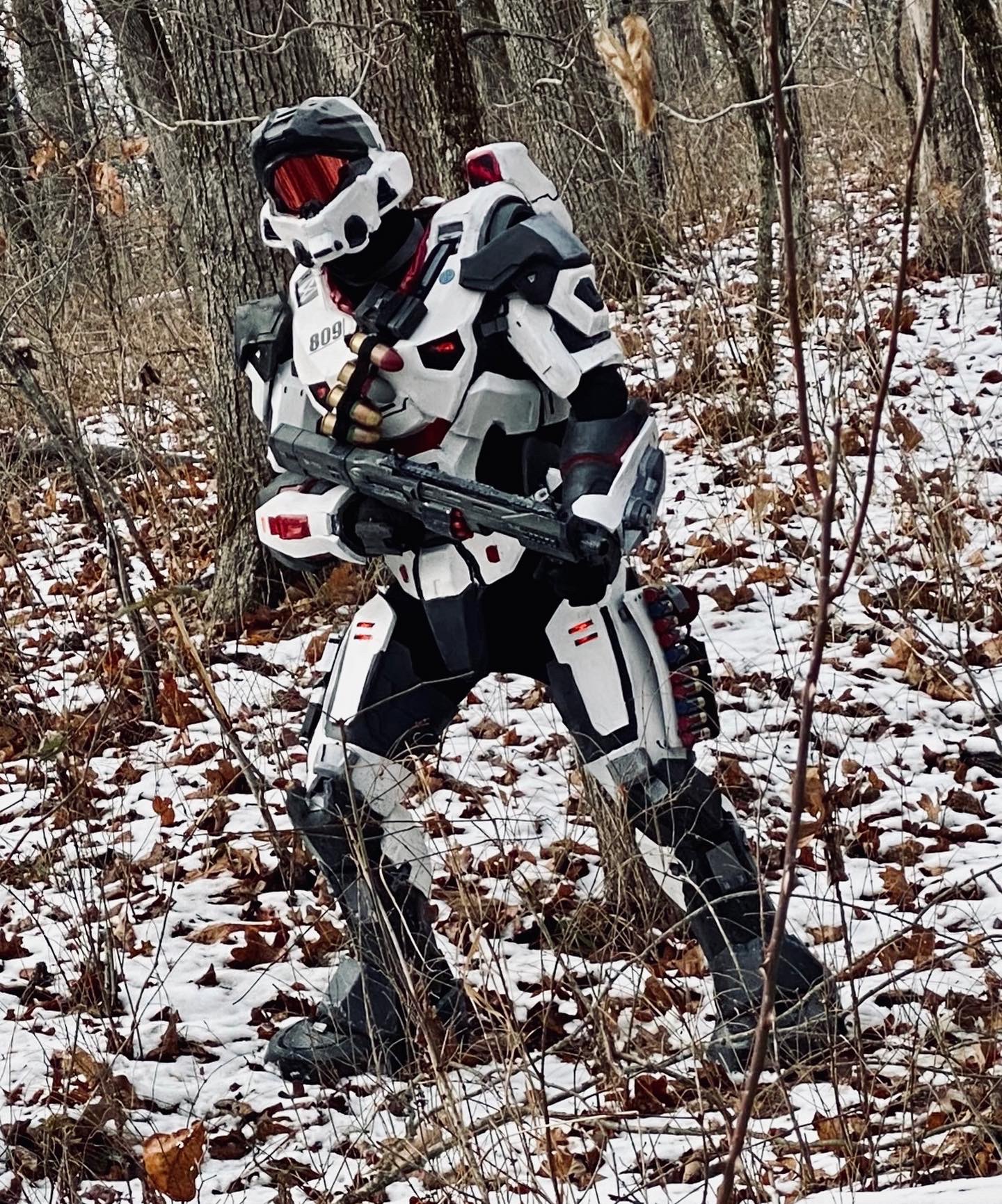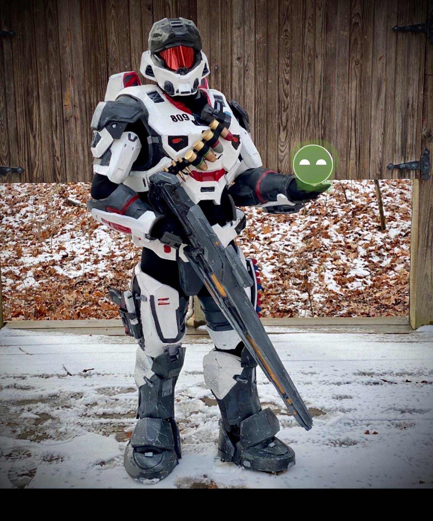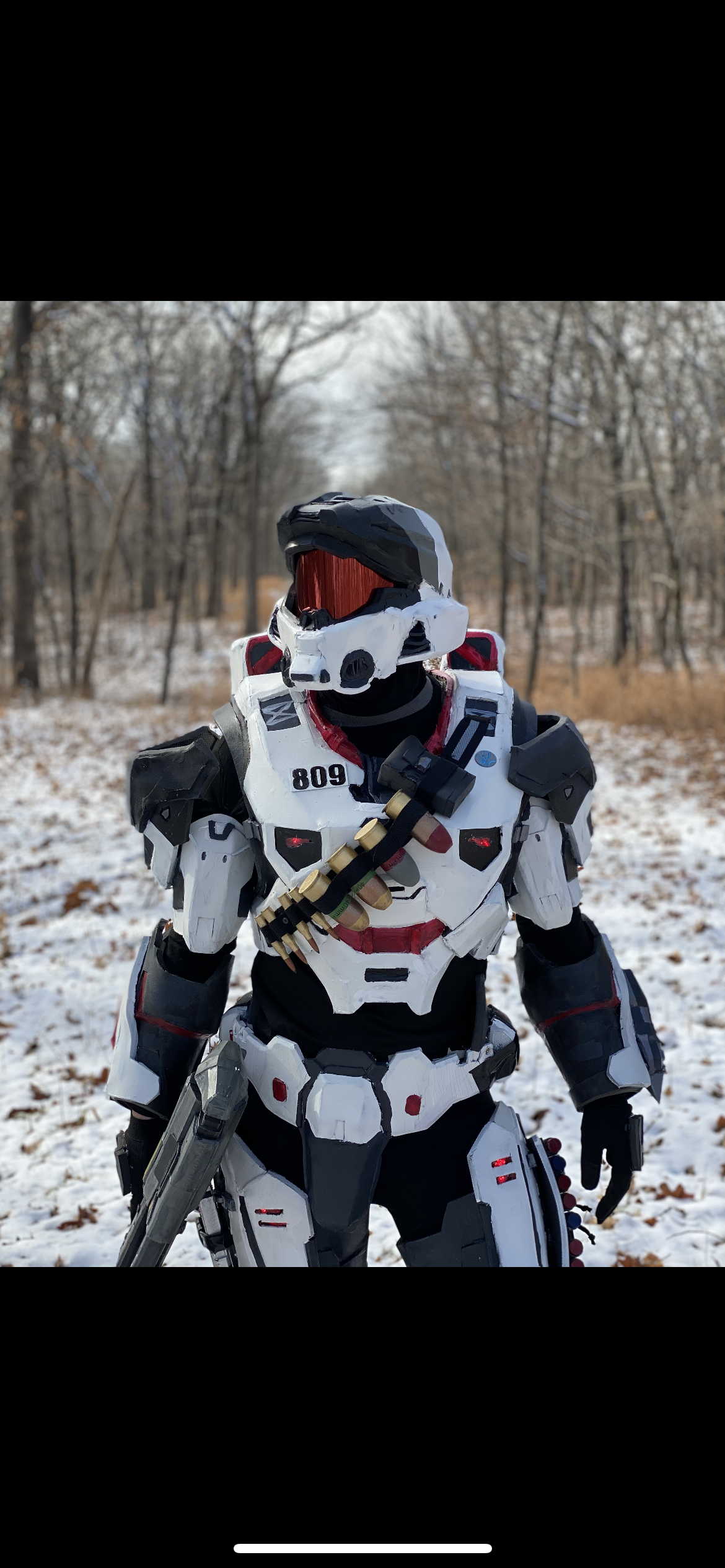 Hello everyone! Since I've joined the Airforce I have not been so active on here. However, I have been building and have a lot to show you. I have only seen one other person finish this suit so far, so I hope your excided to see him version. It has the 152 camo from Halo 5. This suit is all MkVii parts, with a solder bangaler and the solder thigh attachment. I added the grapple shot because how could you not? Let me know your thoughts and if you see something I can fix, please let me know. Thank you! Check out my insta for more! skyranger72