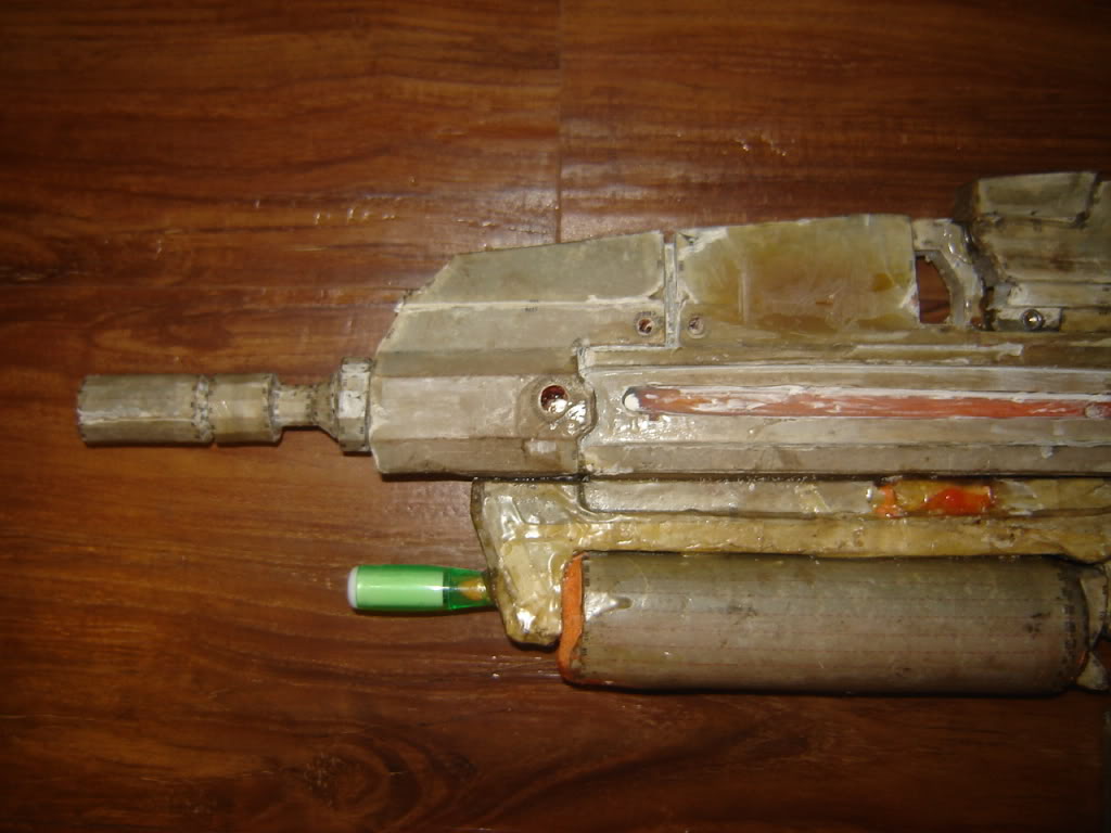 ok one more small update i hav finaly (more or less) finshed fiber glassing my assult rifle i have some bondo and painting yet but other than that finshed
