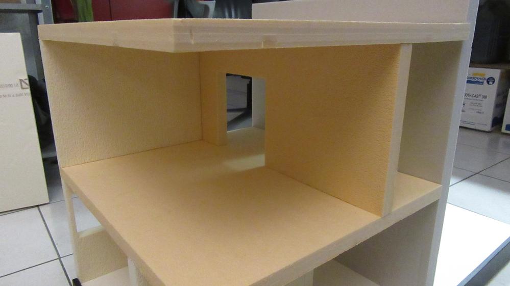 The structure of the building is finished, tomorrow I will cut (by hand this time) the expanded PCV which will cover the polystyrene: it will take me a little more time.