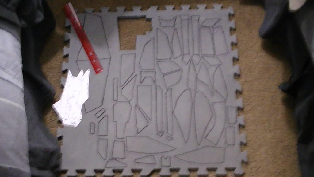 I'm doing the shins first. I managed to trace my templates on the foam.