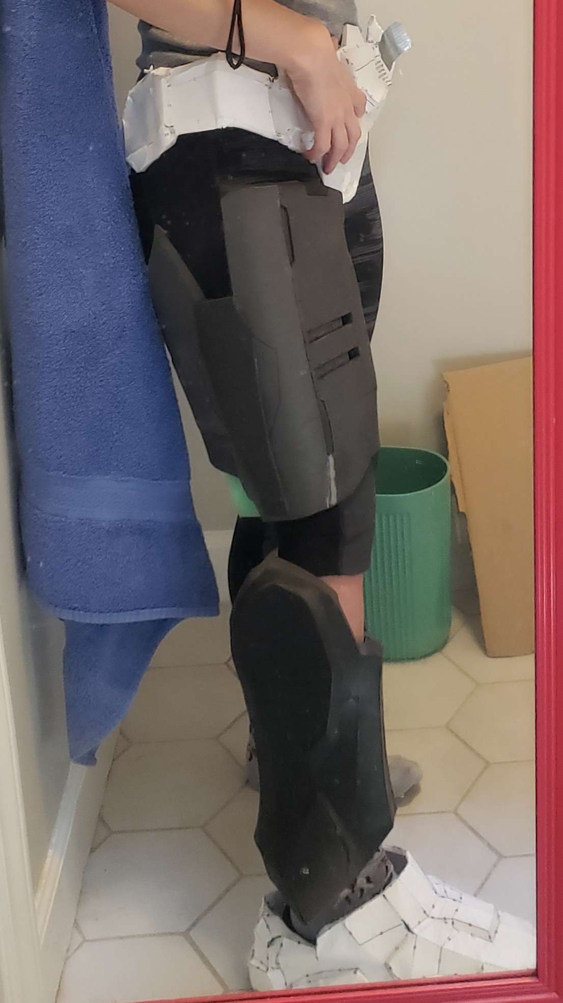 I wish I utilized this extremely important tip from Danielle from the start, I've been trying so hard to fit something on me that was never meant to fit an actual human. Tomorrow I will be making another test out of foam this time to see how I can make things work and if I can tolerate the size and shape of the thigh itself.