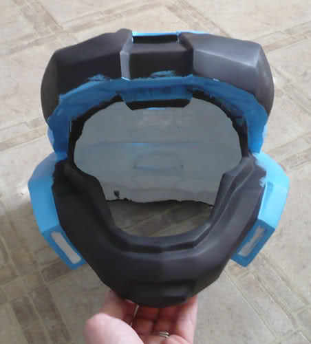 I figured it would since it's plastic and once you heat that up, it will become soft. I was able to easily reshape it and you can really see a difference. Although due to the heat, the added piece right under the chin came off. No worries though since I will be using foam to create the lower half of the helmet so that it looks like it does in game, or close enough AND so that it's soft and I get slip my head in without getting hurt. XD