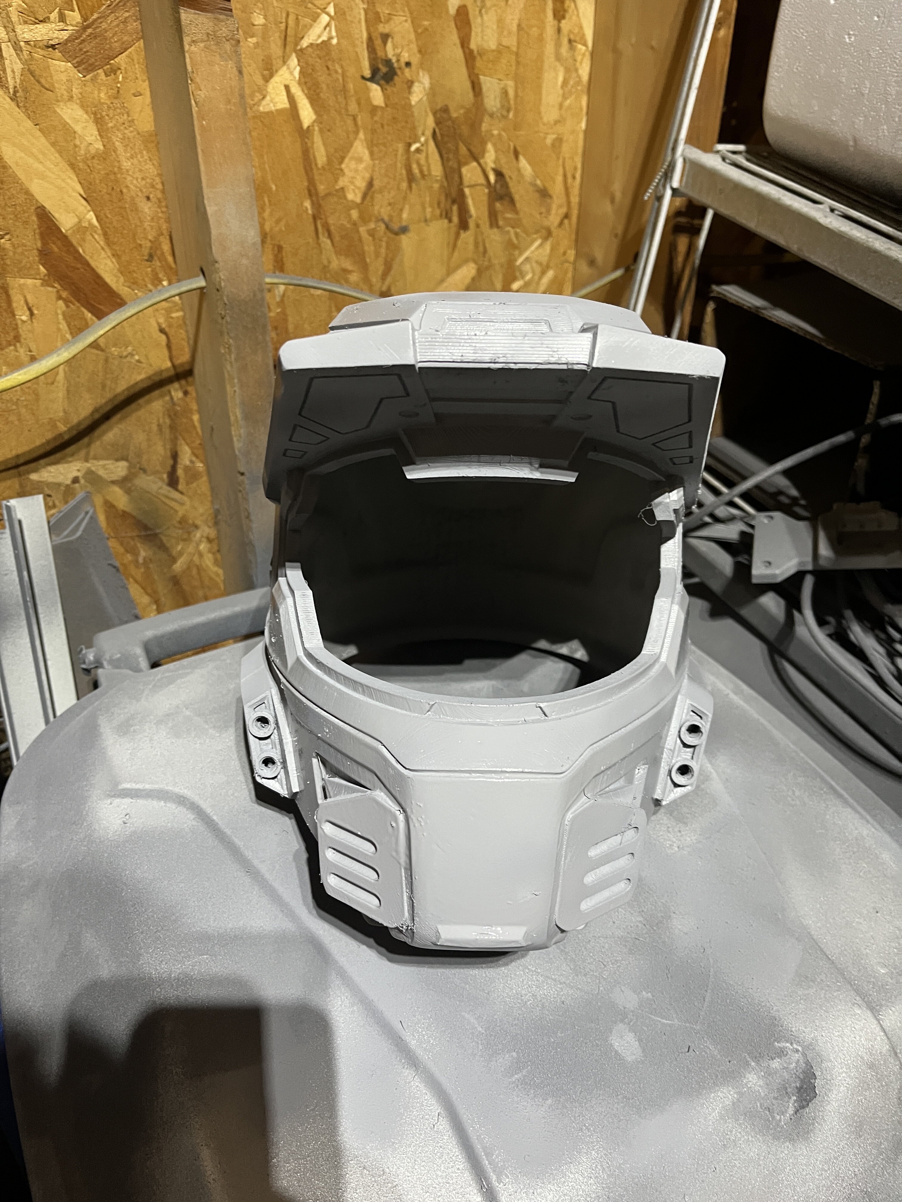 This build started on Etsy on NerdForge's etsy, I snagged myself the files for the helmet, and a physical visor. After I downloaded the files I went ahead and popped em' into Cura and started slicing. Naturally I started printing as soon as possible, and a week later I had my raw print!