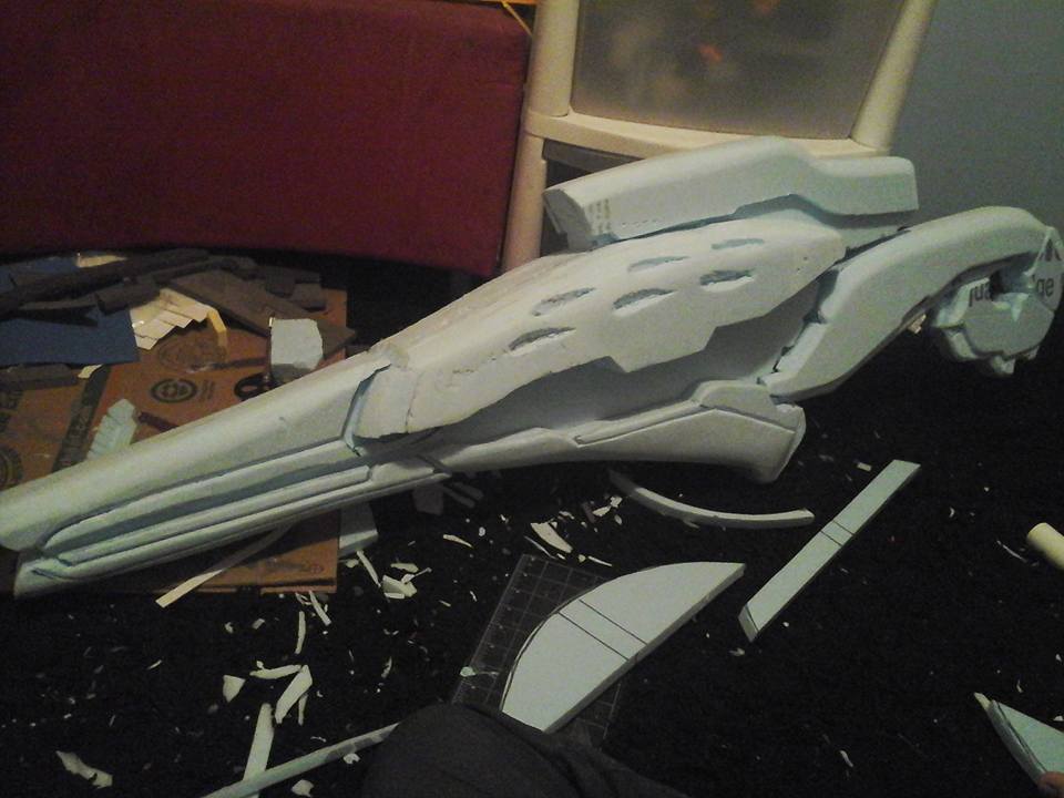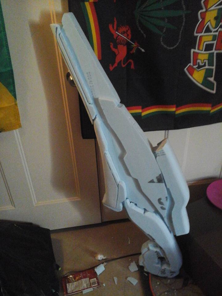 Here is my progress so far on the needle rifle. This has been an on and off project for the past few months. just like the rest of my prop weapons, it is made out of styrofoam and all the pieces are held together with hot glue. Its almost finish and I can't wait to see the final product. I will post more WIP photos when I can.