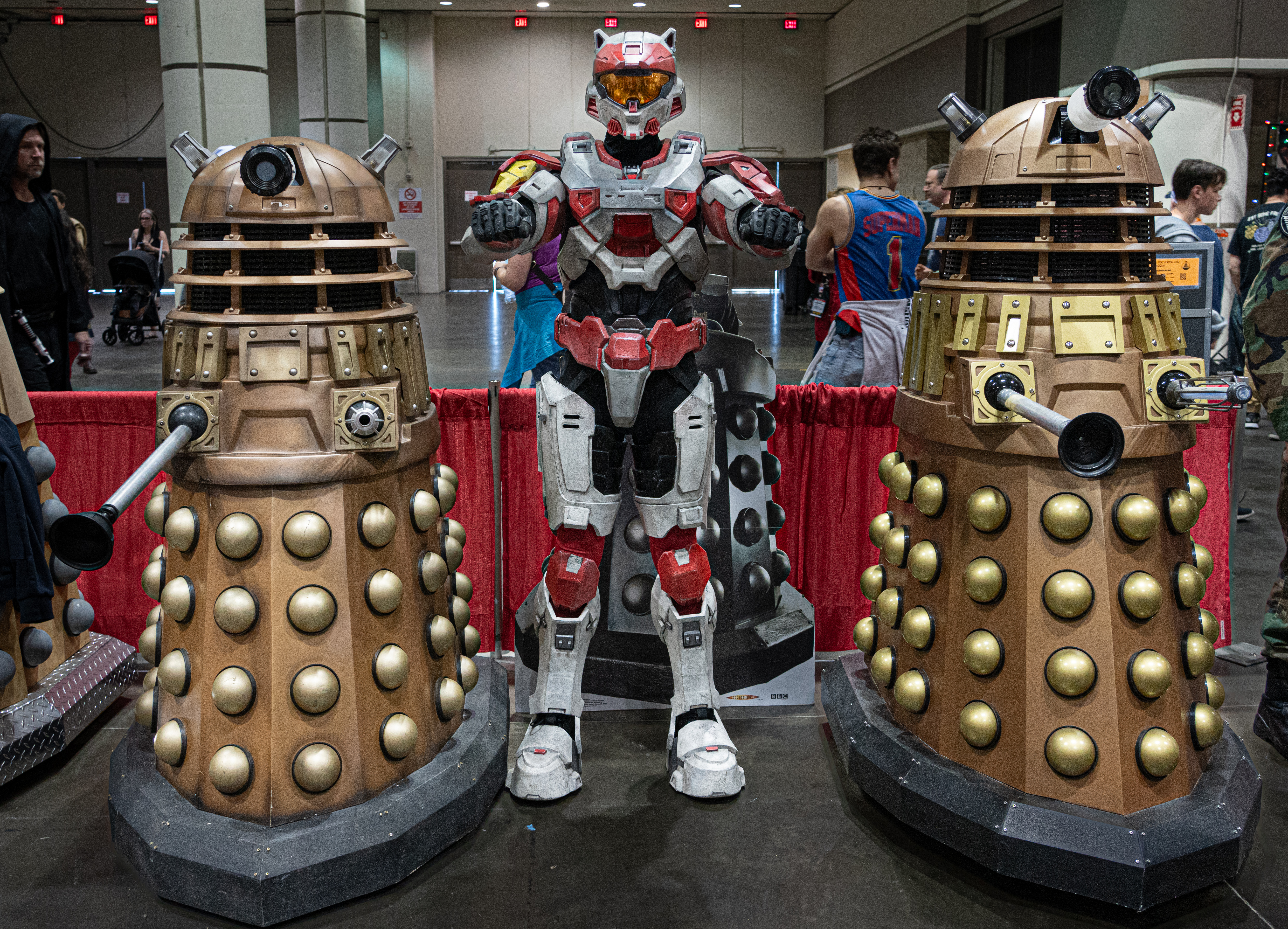 Absolutely! Mine (Dalek Nim) is the one on the right, the one on the left is currently just a static display but we are helping the builder to motorize it which will take a little engineering to beef up the bae to be able to handle a wheelchair motor assembly plus an operator. Here's a pic I took. I assume that's you? Were you in the Halo booth next to us or just an individual wandering around?
