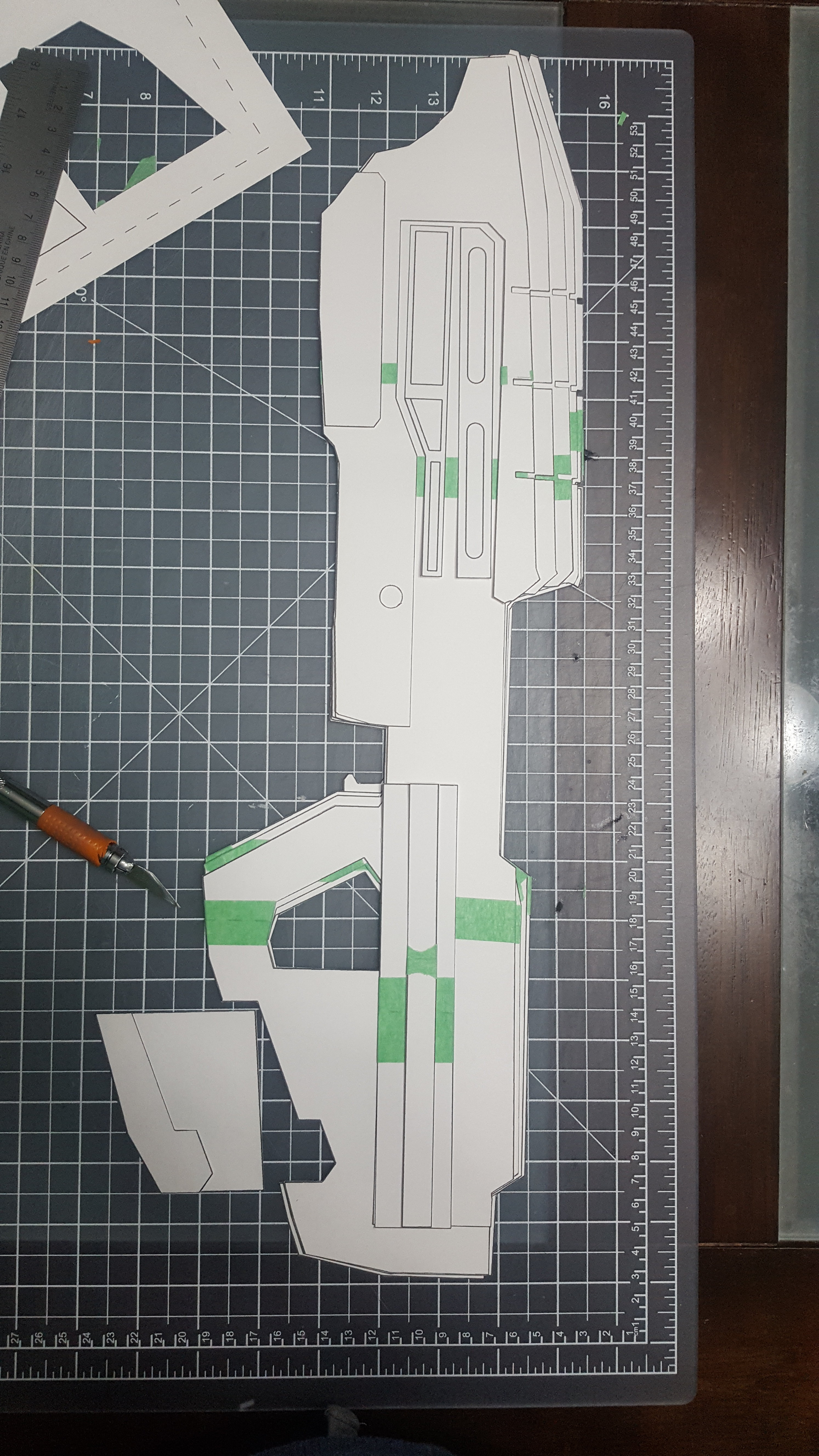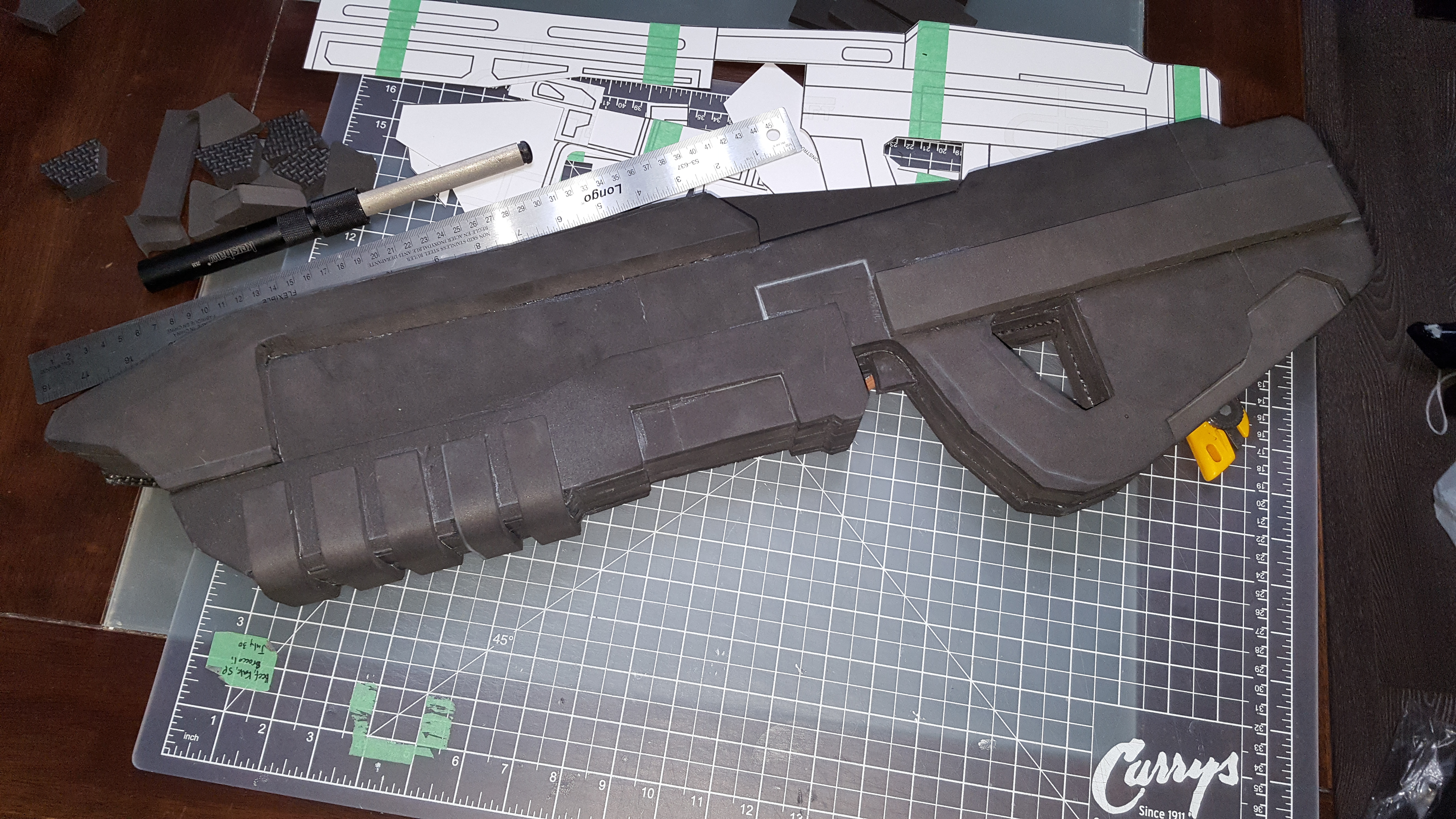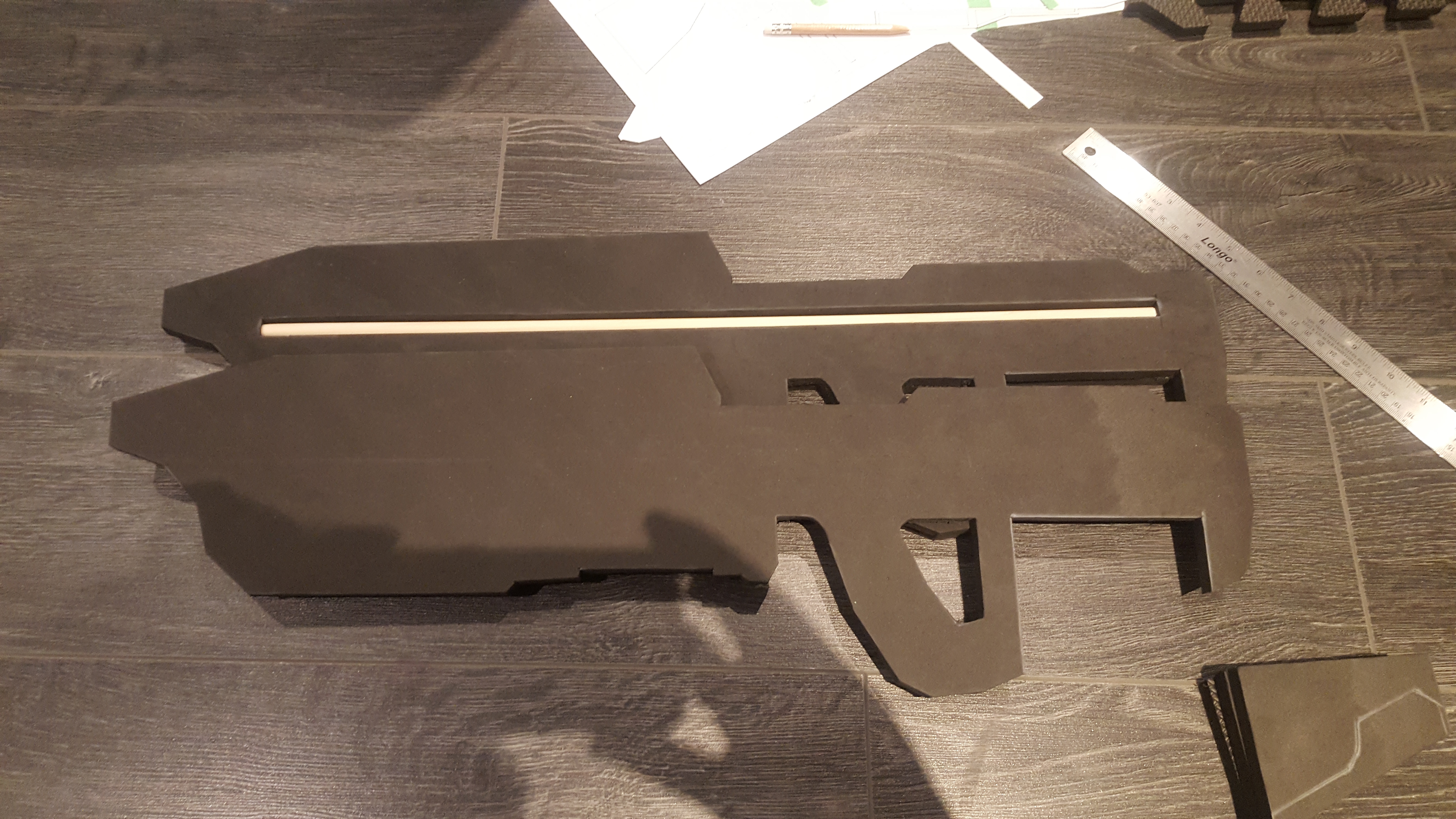 Decisions decisions... Should I follow the templates and have 12 layers of 6mm foam and have to deal with filling in all the areas that should be smooth instead of having that weired staircase look. Or should I use roughly 6 layers of 1/2 and have to carve off the excess foam to get the right shape and slope at the front of the rifle and around the grip.