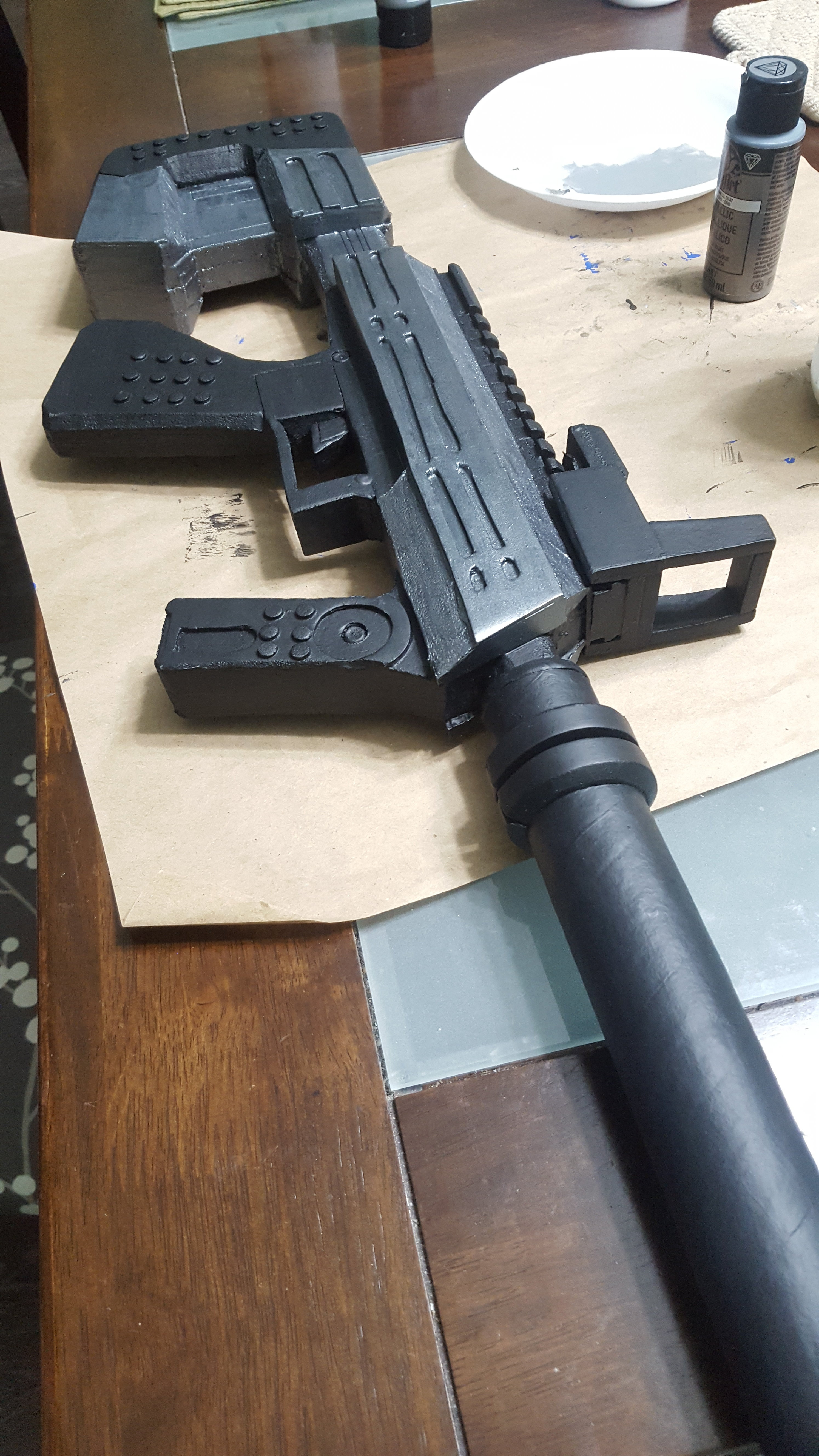 Looks nice! So shiny!Wow... Hmmmm... I haven't touched my SMG in a very long time. The last time I worked on it I just baited I a simple black. I picked it up again and decided to give it two tone look and match the Assault rifle that I recently finished.